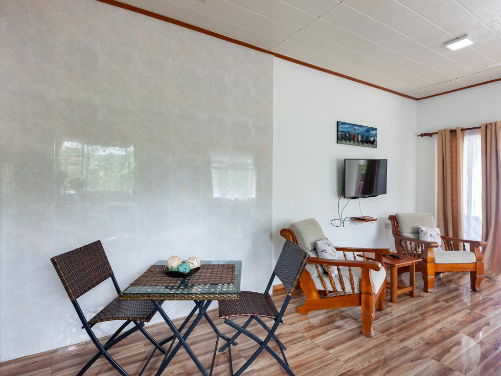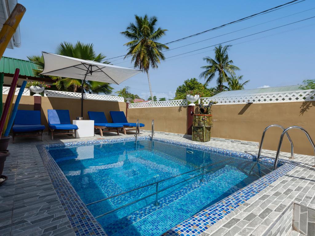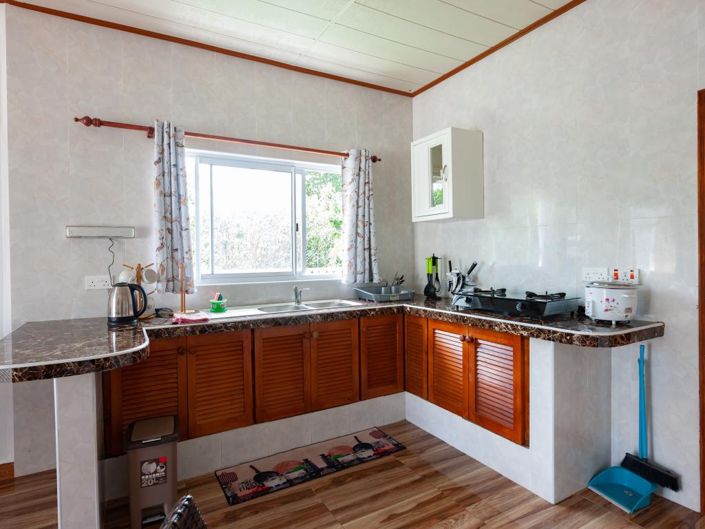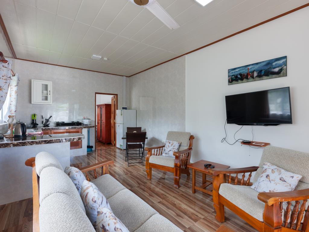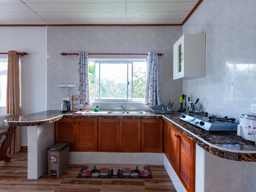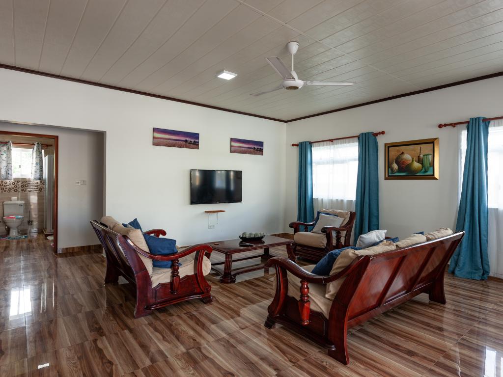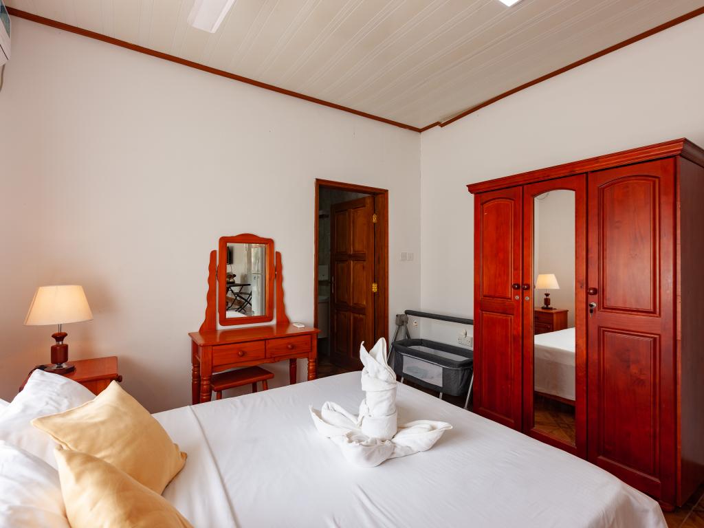 Die komfortabel ausgestattete "Happy Stay Villa" empfängt Sie in St. Joseph in der Küstenregion Praslins und in praktischer Nähe zum kleinen Insel-Flughafen. Direkt an dem gepflegten Haus wartet nicht nur eine überdachte Terrasse mit Liegestühlen, sondern auch ein gemeinschaftlich genutzter Pool auf die Gäste. Bis zum nächsten Strand Grand Anse Beach sind es nur knapp 400 m, auch Restaurants, Shops und Einkaufsmöglichkeiten befinden sich in fußläufiger Entfernung.