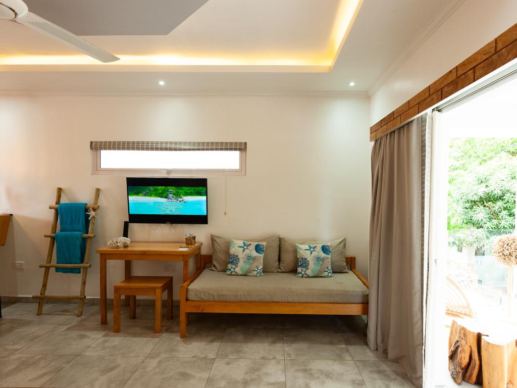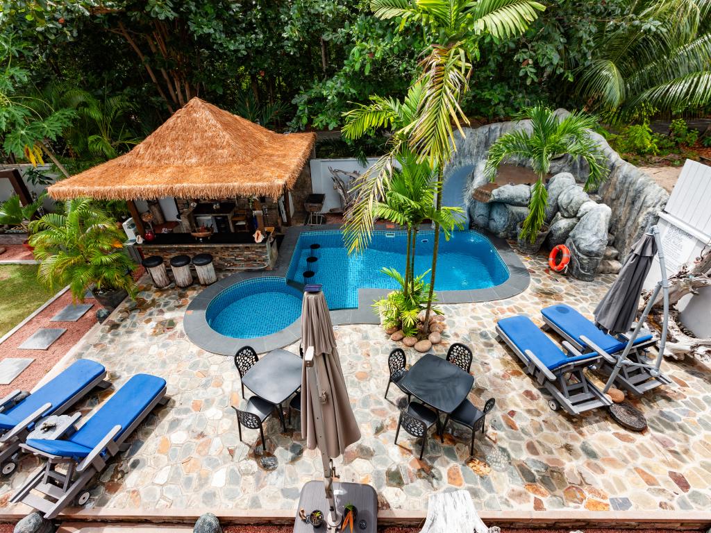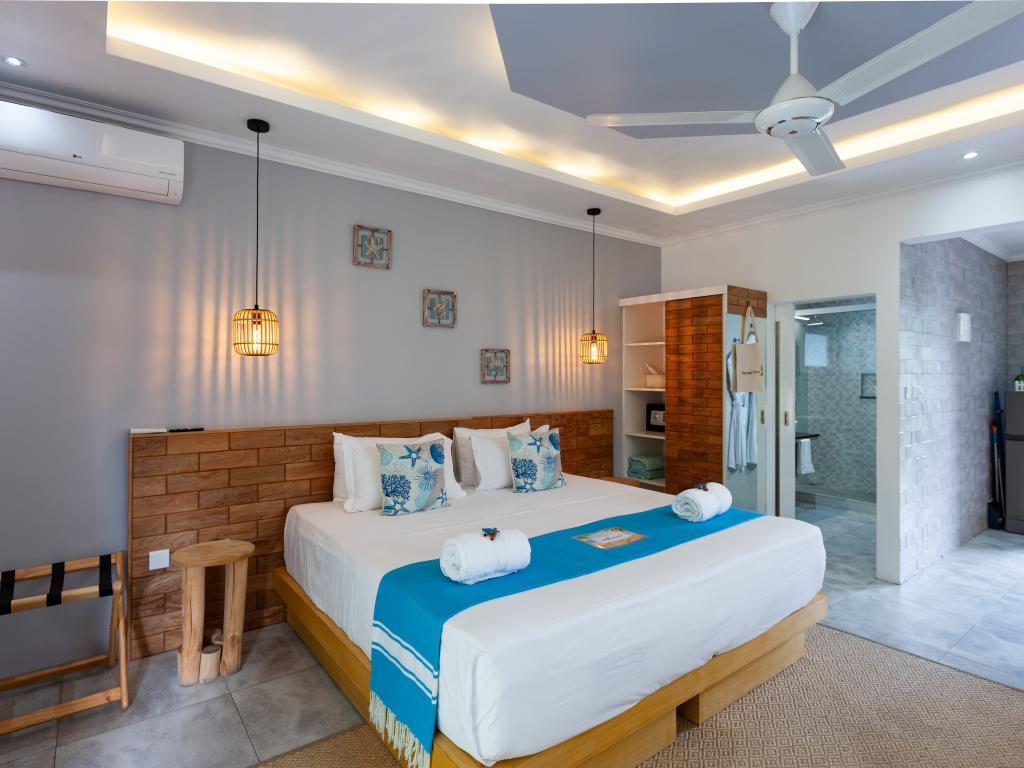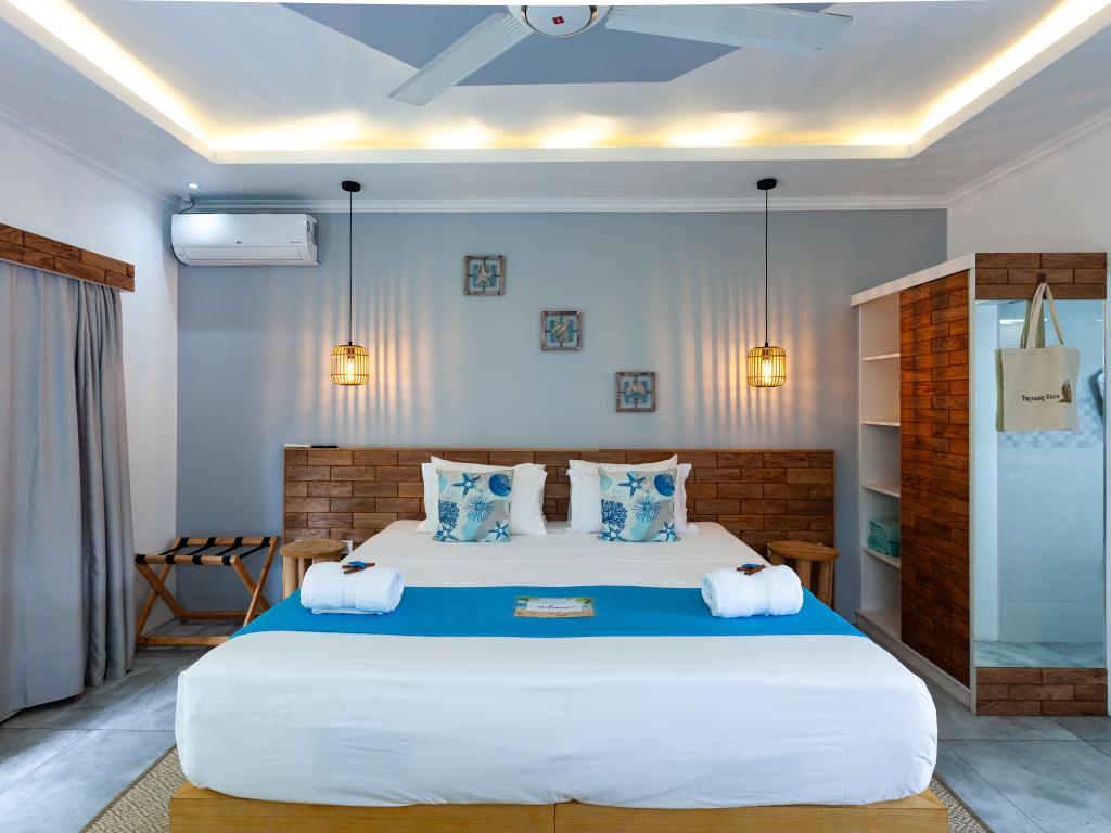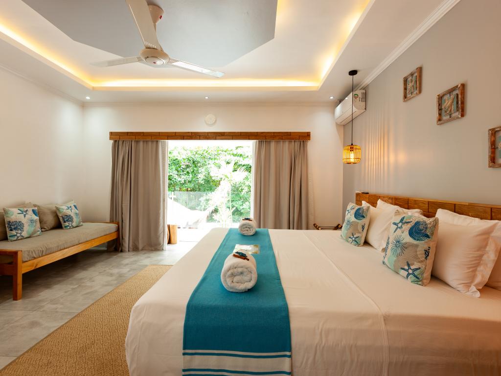 Ein überaus reizvoller Ort für Ruhe und Erholung ist die stilvolle "Treasure Villa", die sich in Praslins Nordosten nur 5 Autominuten von der Anlegestelle und knapp 11 km vom Flughafen entfernt inmitten wunderschöner tropischer Natur befindet. Hier am Cap Samy genießen Sie die Nähe zu mehreren Stränden: Den berühmten Cote d'Or haben Sie nach nur 1 km erreicht, Anse Magde und Anse Takamaka in südlicher Richtung sind jeweils nur einige hundert Meter entfernt. Supermärkte, Restaurants sowie Sportmöglichkeiten befinden sich außerdem in der Umgebung.