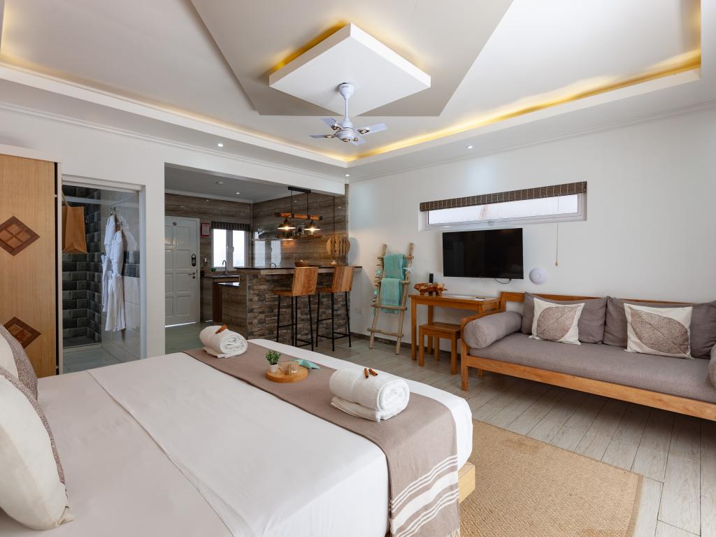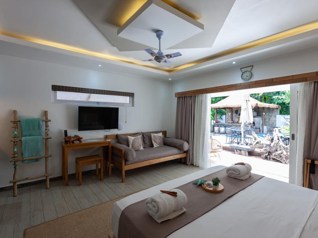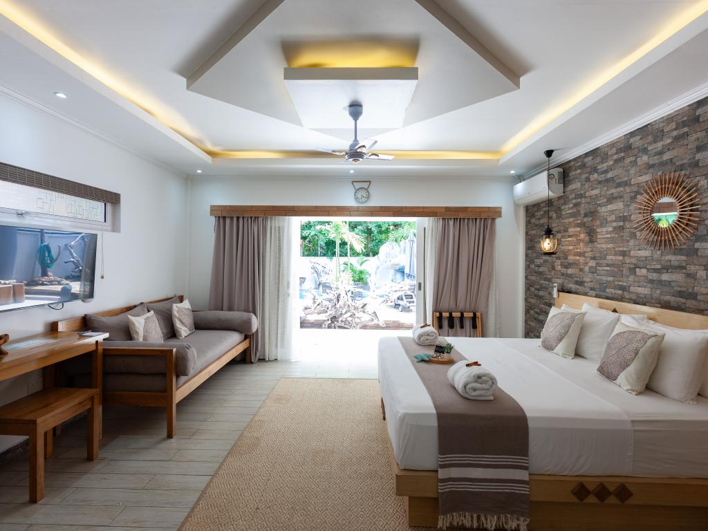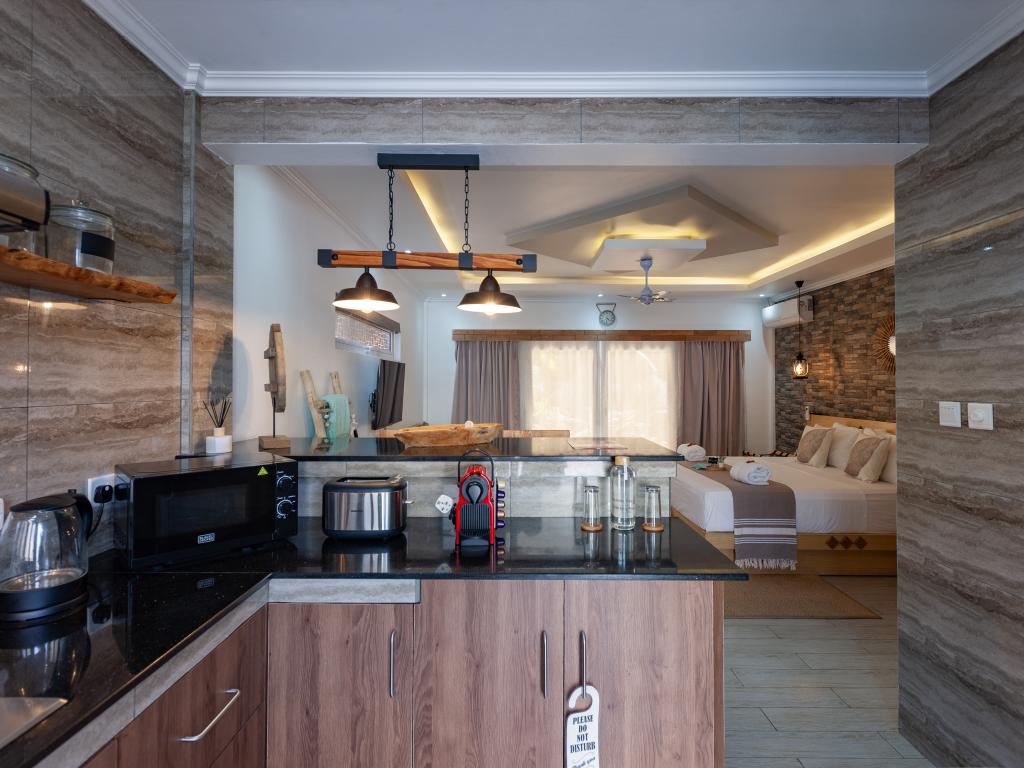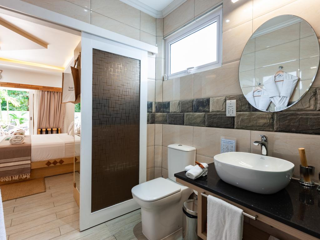 Ein überaus reizvoller Ort für Ruhe und Erholung ist die stilvolle "Treasure Villa", die sich in Praslins Nordosten nur 5 Autominuten von der Anlegestelle und knapp 11 km vom Flughafen entfernt inmitten wunderschöner tropischer Natur befindet. Hier am Cap Samy genießen Sie die Nähe zu mehreren Stränden: Den berühmten Cote d'Or haben Sie nach nur 1 km erreicht, Anse Magde und Anse Takamaka in südlicher Richtung sind jeweils nur einige hundert Meter entfernt. Supermärkte, Restaurants sowie Sportmöglichkeiten befinden sich außerdem in der Umgebung.