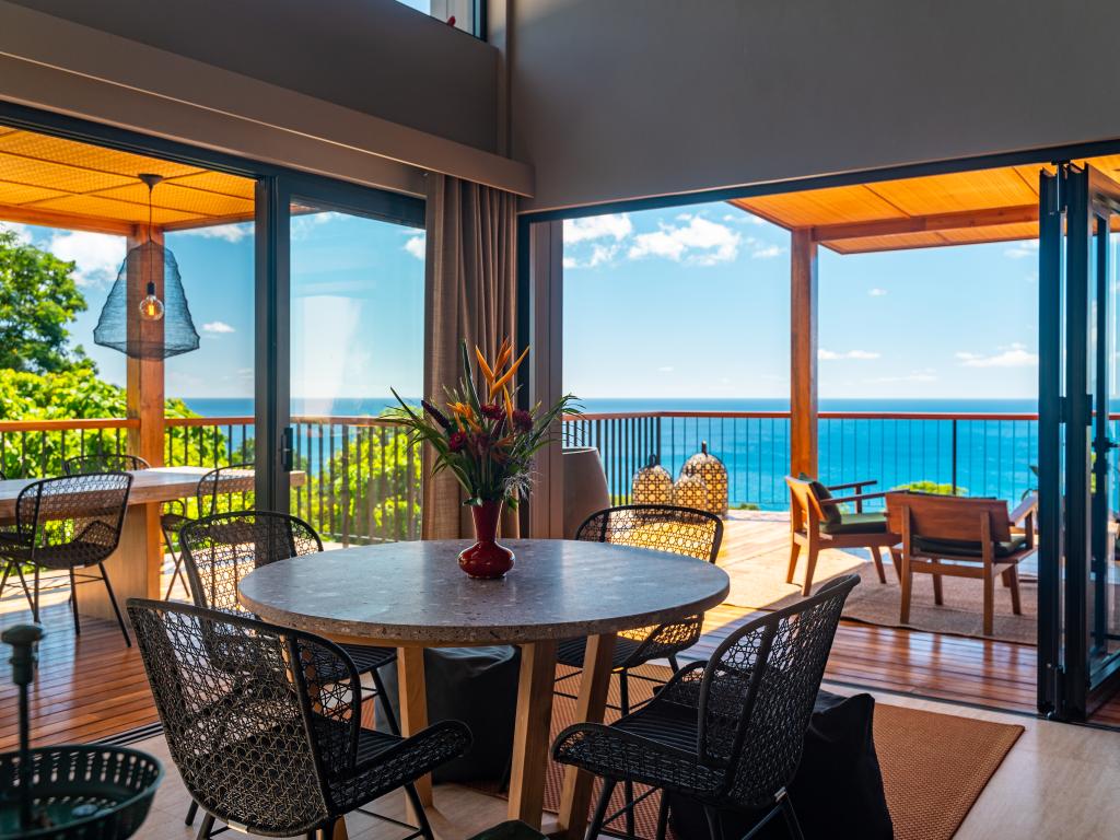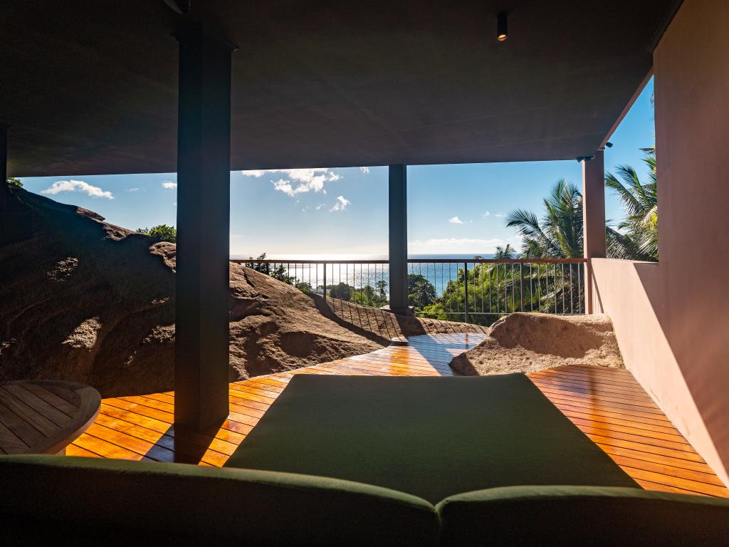 Diese sensationell schöne Villa mit Infinity-Pool und unverbautem 180°-Blick auf das Meer thront in exklusiver, erhabener Lage in Glacis im Norden von Mahé. Vom Glacis-Strand trennt Sie von hier aus nur ein etwa 7-minütiger Spaziergang den Hügel hinunter. Doch nicht nur Bade- und Wassersportmöglichkeiten liegen in unmittelbarer Nähe, sondern auch Wanderwege, sowie Restaurants und Spa.