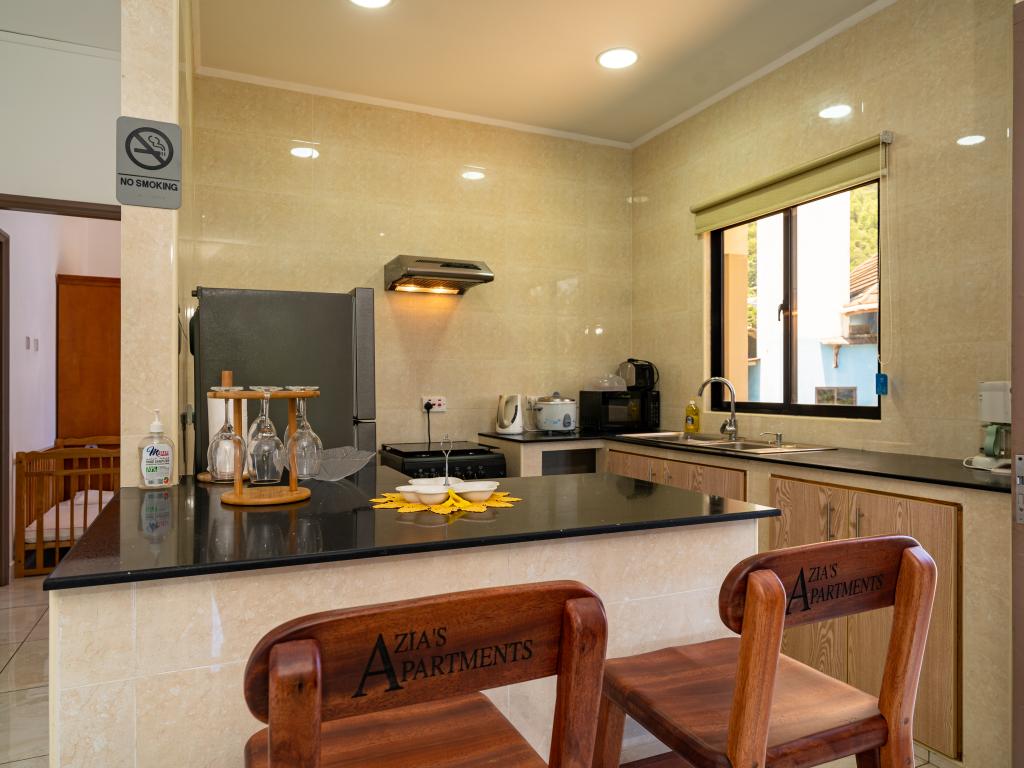 "Azia's Apartments" begrüßen Sie an der wunderschönen Nordküste Mahés, im traditionellen Fischerviertel von Bel Ombre. Hier finden Sie Ruhe und Entspannung. Von dieser Unterkunft aus genießen Sie einen spektakulären Panoramablick auf Silhouette Island, North Island und die vorgelagerte Küste. Die hübsche Umgebung bietet neben Einkaufsmöglichkeiten und Restaurants auch traumhafte Sandstrände wie Beau Vallon (1,3 km) und Marie Laure. Von letzterem sind Sie nur etwa 10 Gehminuten entfernt.