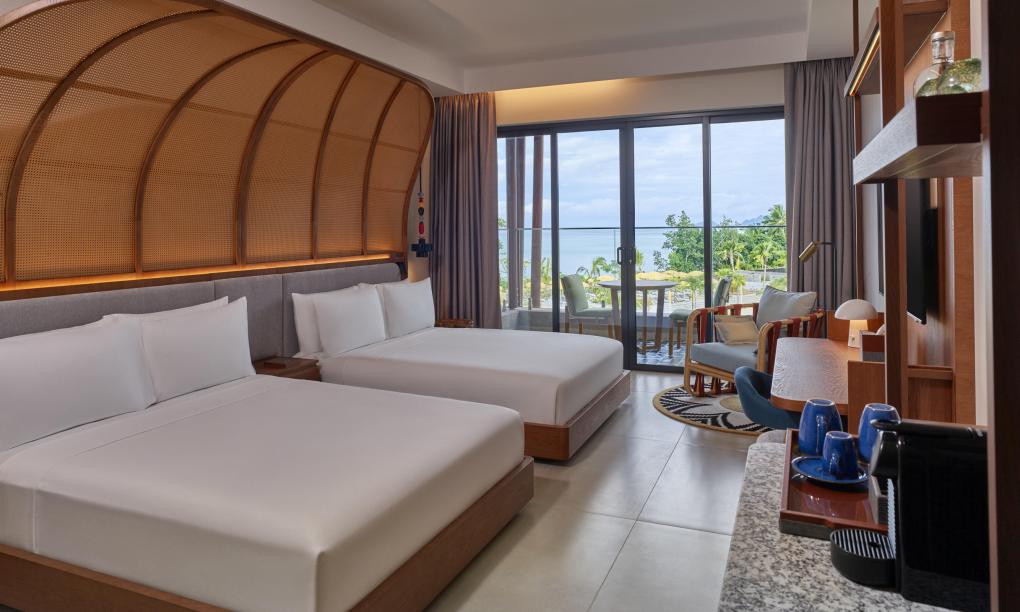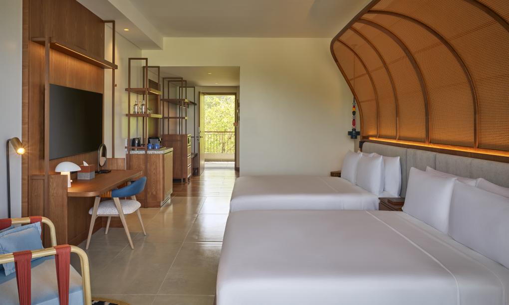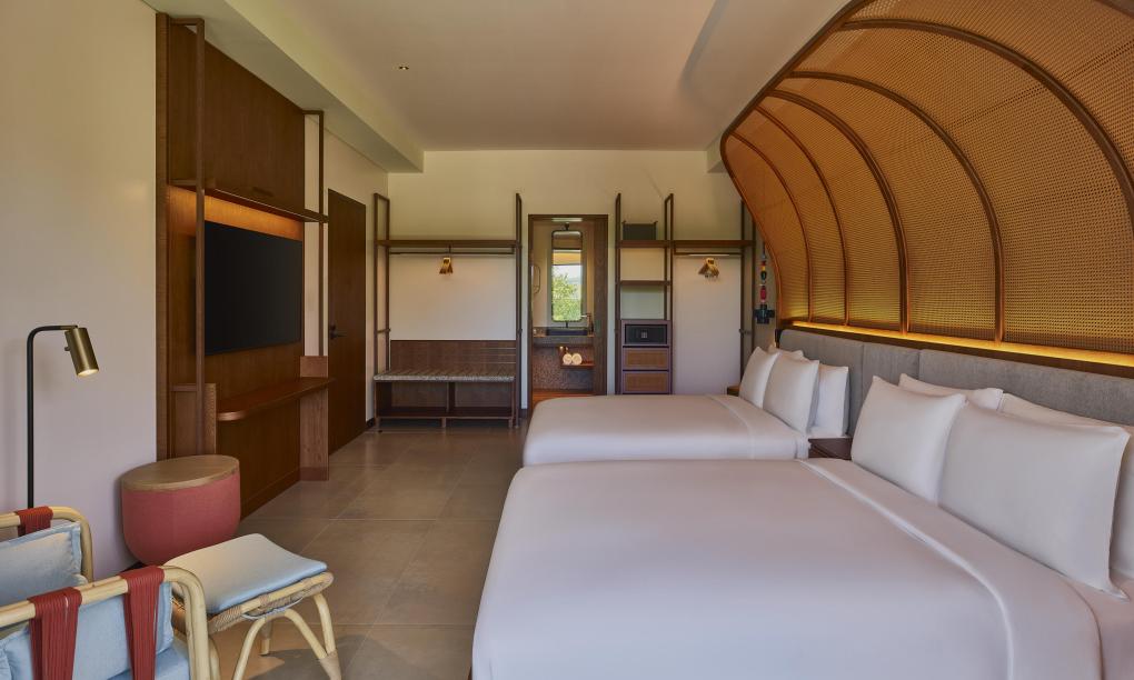 Zimmer mit Queensizebetten und Poolblick