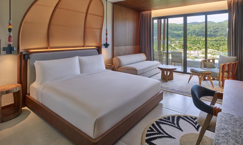 Deluxe Zimmer mit Kingsizebett und Poolblick