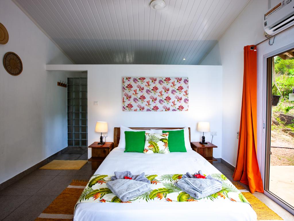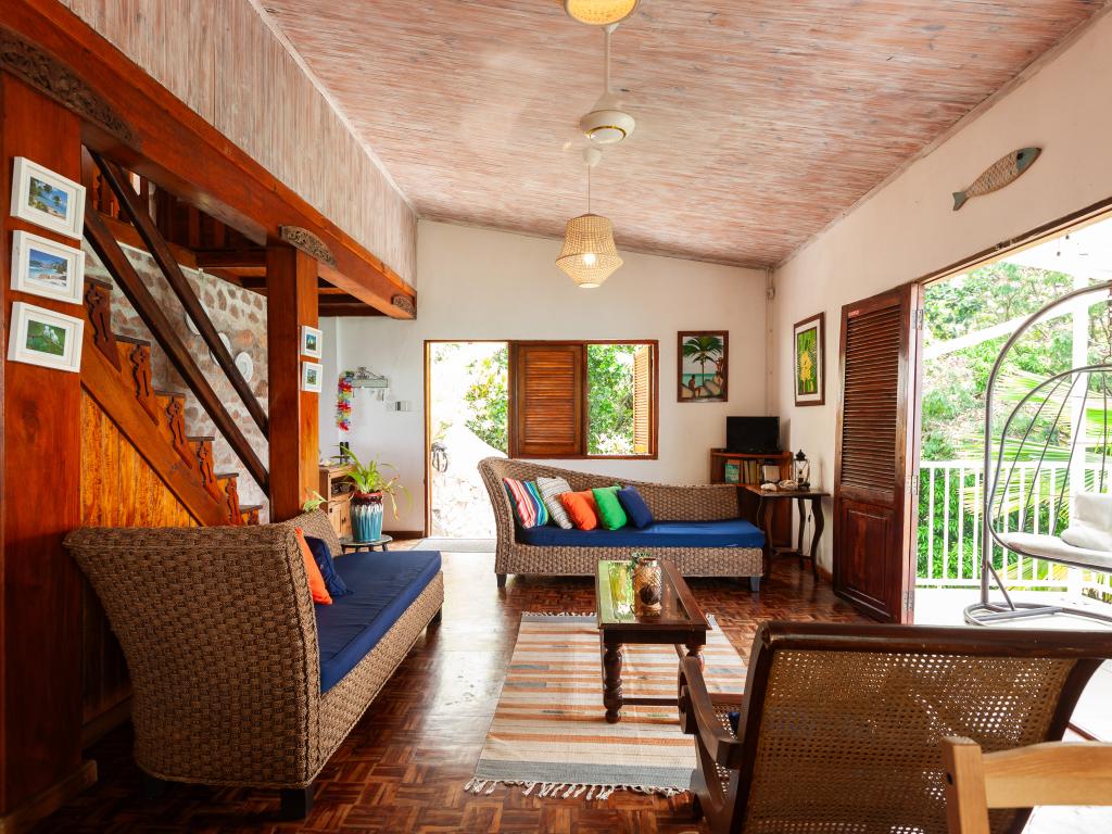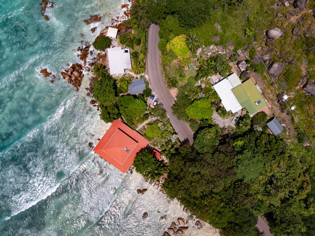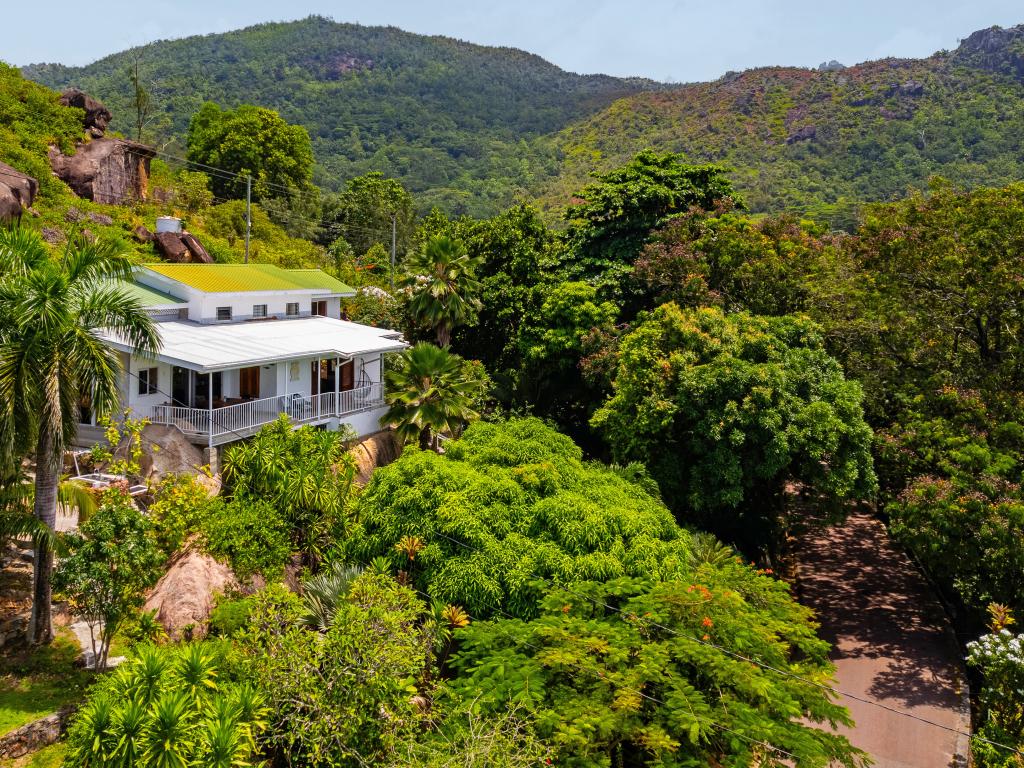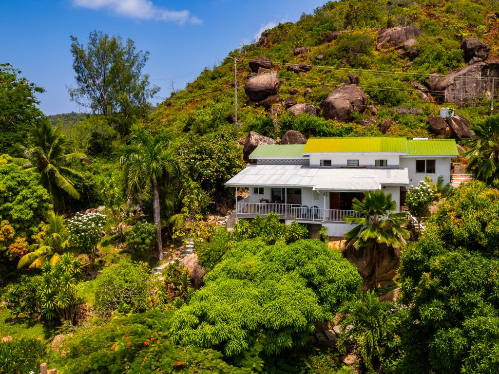 Das im wahrsten Sinne herausragende Highlight dieser in den natürlichen Granitsteinen gebauten, sich in erhöhter Lage befindlichen Selbstversorger-Villa ist der spektakuläre Meerblick auf die Bucht Anse Possession und die Insel Curieuse. Zudem verfügt das Anwesen mit herrlichem tropischem Garten über einen direkten Zugang zum Meer, wo Sie schwimmen und schnorcheln können. Die Strände Anse Lazio und Cote d'Or sind jeweils 12 und 5 Autominuten entfernt.