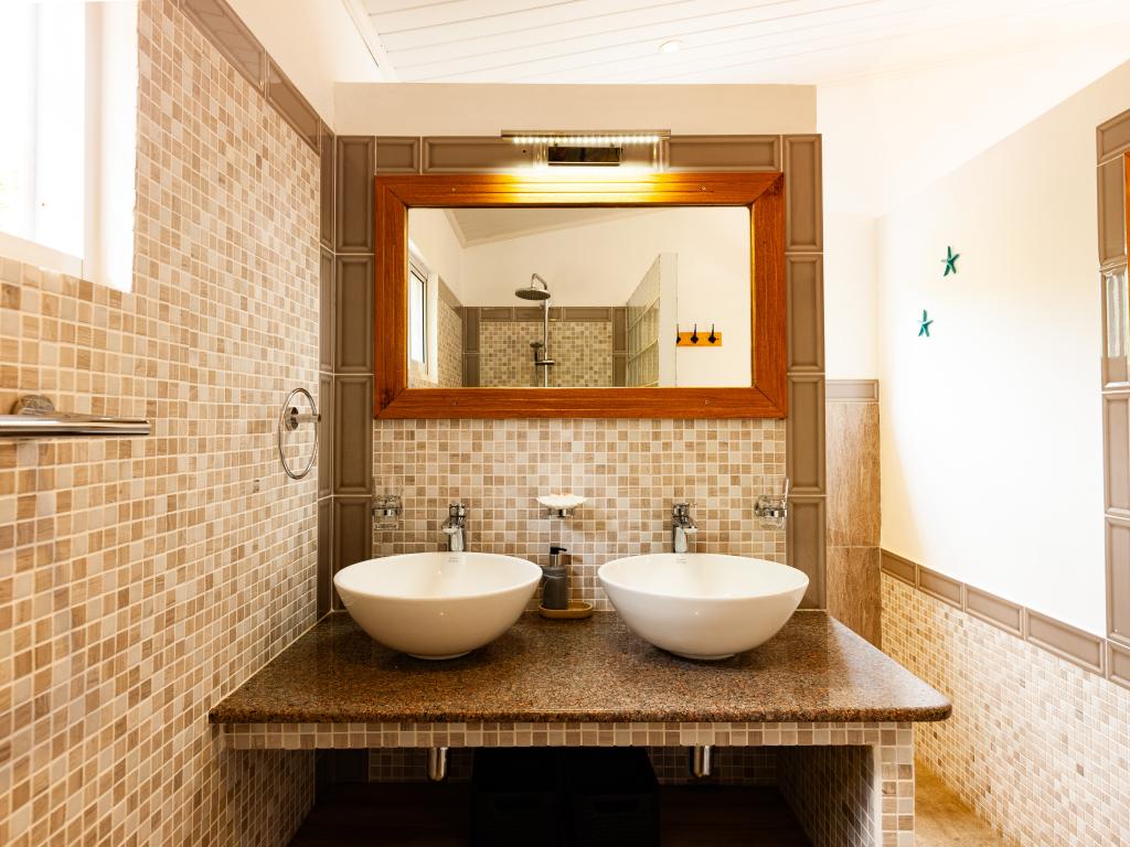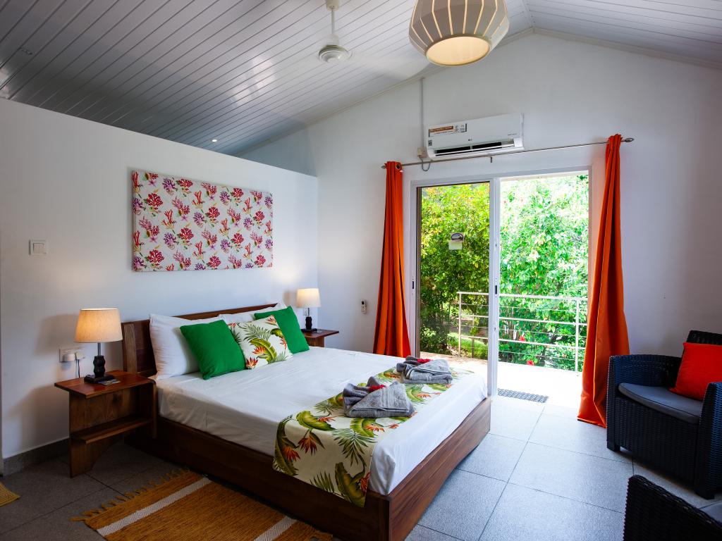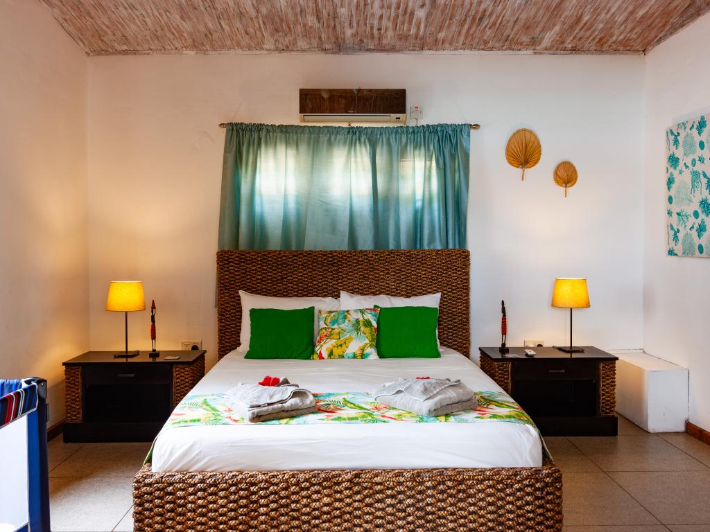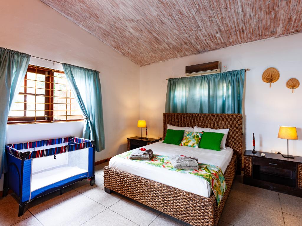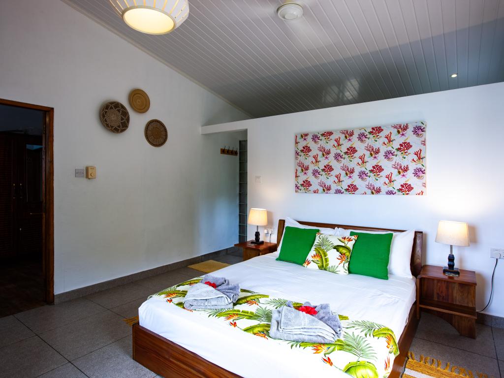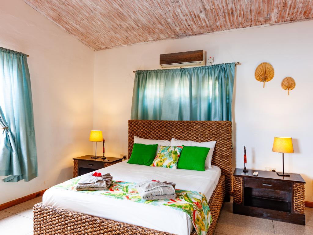 Das im wahrsten Sinne herausragende Highlight dieser in den natürlichen Granitsteinen gebauten, sich in erhöhter Lage befindlichen Selbstversorger-Villa ist der spektakuläre Meerblick auf die Bucht Anse Possession und die Insel Curieuse. Zudem verfügt das Anwesen mit herrlichem tropischem Garten über einen direkten Zugang zum Meer, wo Sie schwimmen und schnorcheln können. Die Strände Anse Lazio und Cote d'Or sind jeweils 12 und 5 Autominuten entfernt.