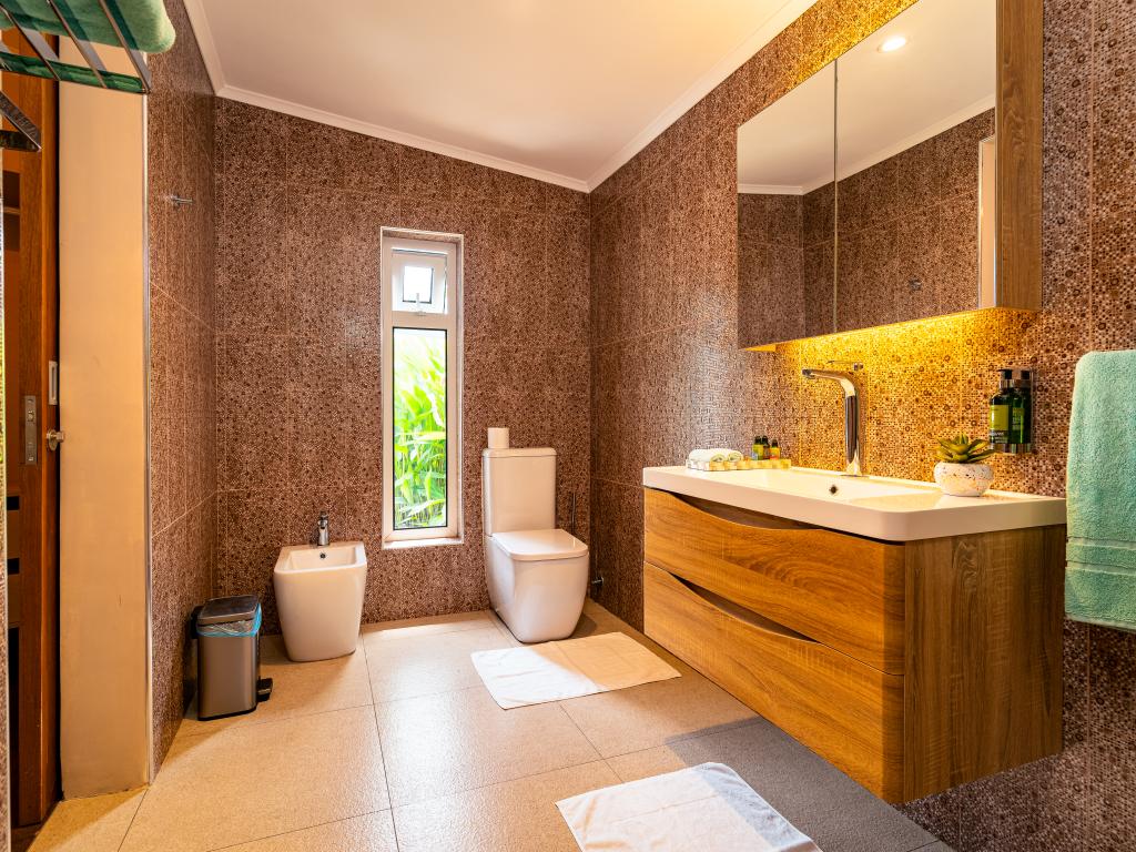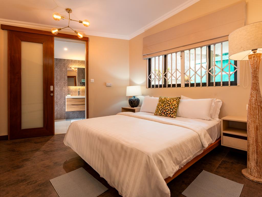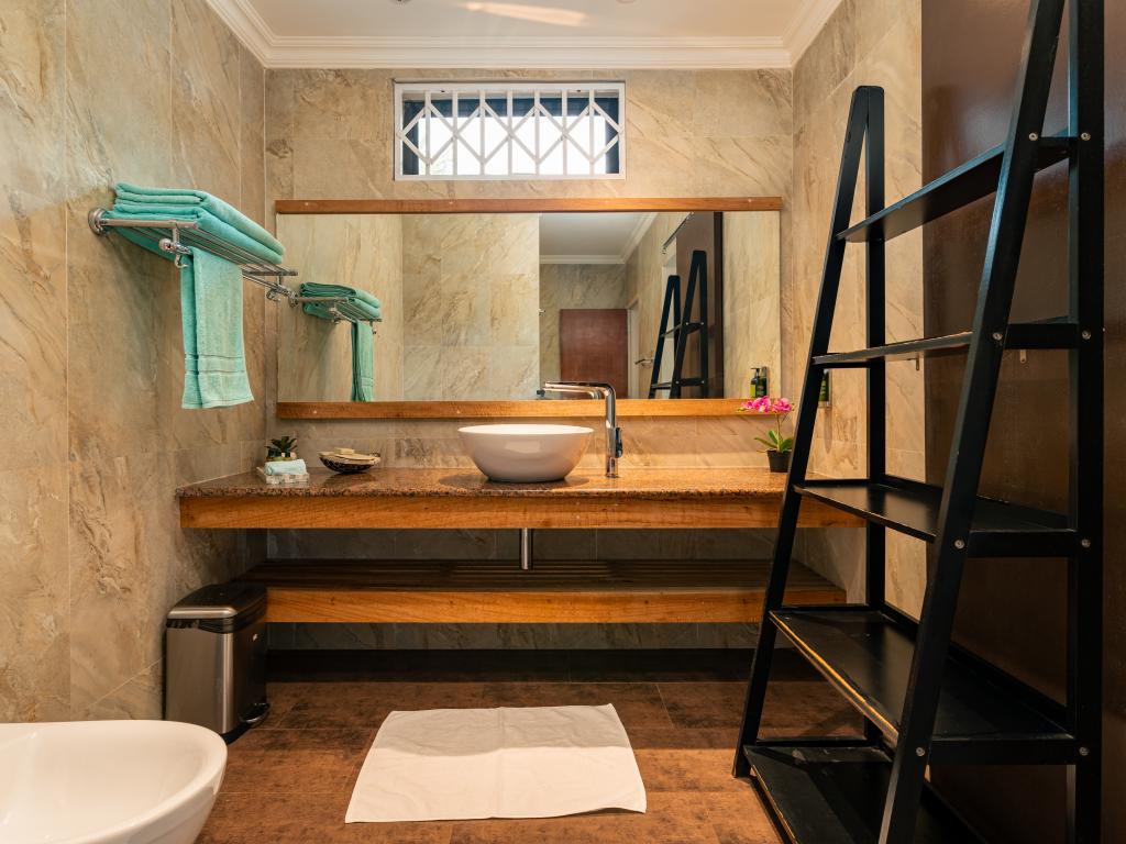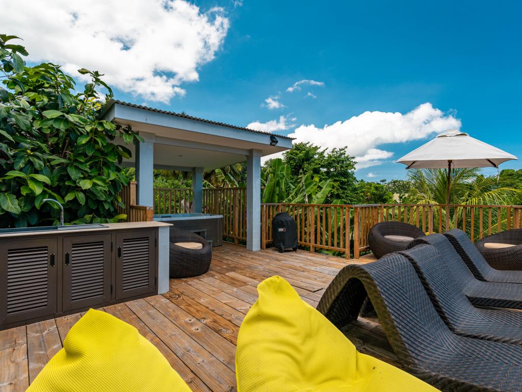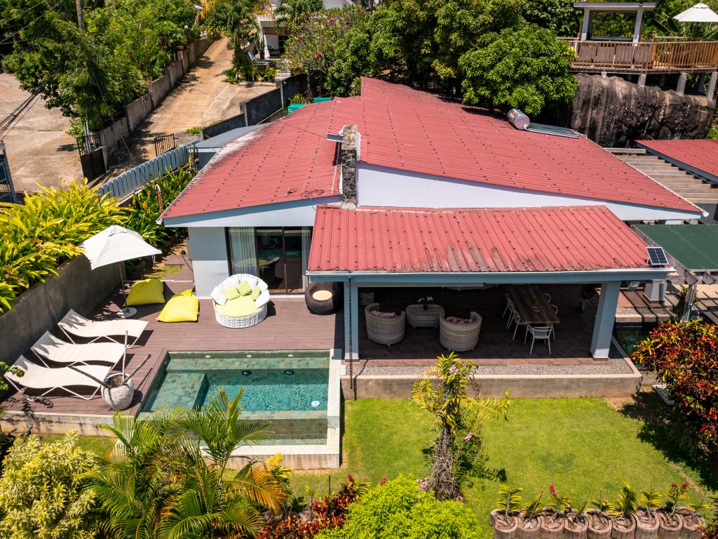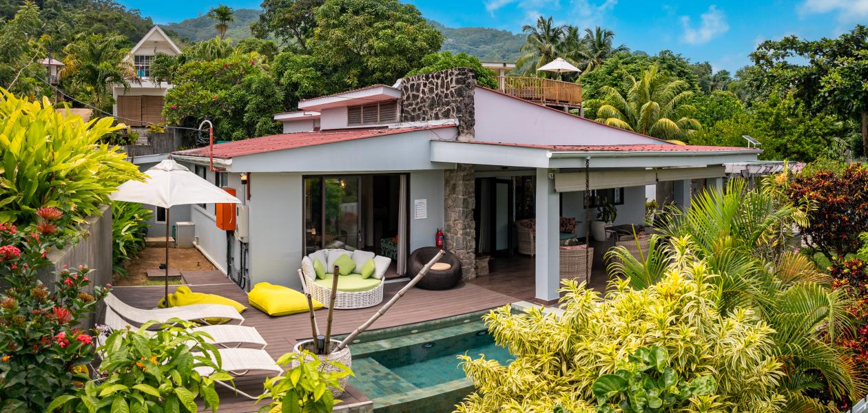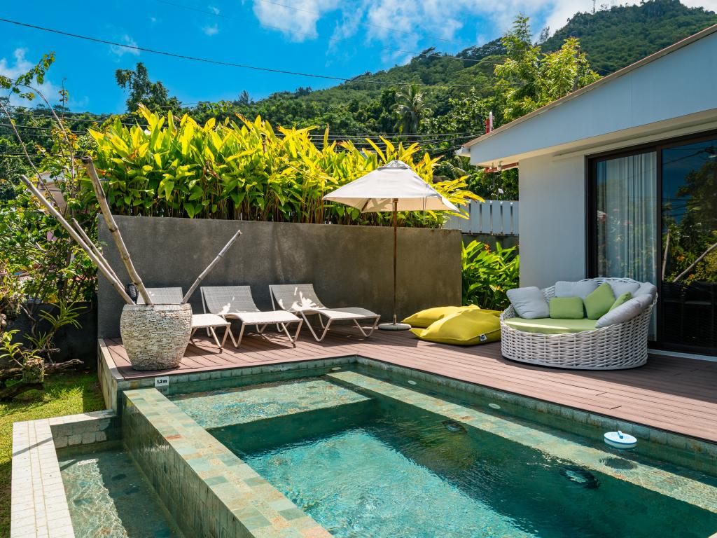 Strand, Restaurant und Supermarkt sind jeweils nur einige Schritte von dieser stilvollen und vielseitigen Villa entfernt, die Sie ganz für sich beanspruchen und somit absolute Privatsphäre genießen können. In dem umfriedeten, sehr gepflegten Garten inklusive attraktiver Terrassen- und Pool-Area finden Sie Ihre persönliche Oase unter dem Seychellenhimmel. Als tolles Extra ist auf einem großen Felsen neben der Villa ein extra Sonnendeck mit Jacuzzi installiert.