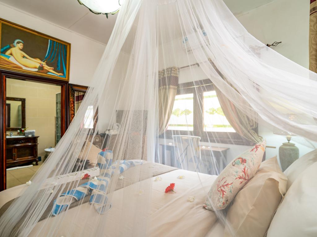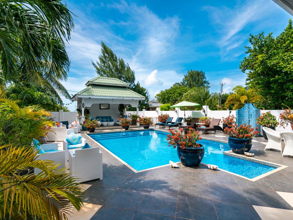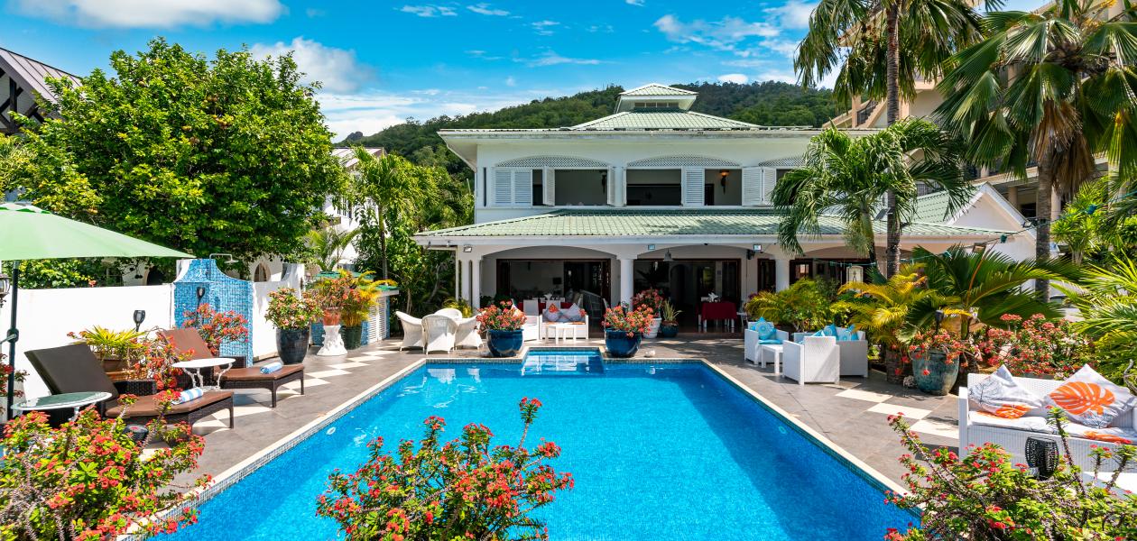 Direkt gegenüber vom weißen Sandstrand an der Spitze von North East Point auf Mahé befindet sich die "Le Bonheur Villa", eine Luxusvilla, in der Sie gemütlichen Komfort sowie einen tollen persönlichen Service genießen. Zugleich können Sie von hier aus die vielen Schönheiten der Seychellen erkunden. Das geschmackvoll gestaltete Areal mit großem Pool ist von Kokosnusspalmen, Casuarinas und Takamaka-Bäumen gesäumt. Etwa 15 Autominuten sind Sie von der Hauptstadt Victoria entfernt. Shops und Supermärkte befinden sich in geringer Distanz zur Villa.