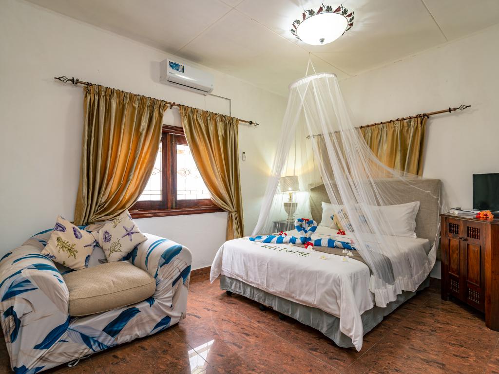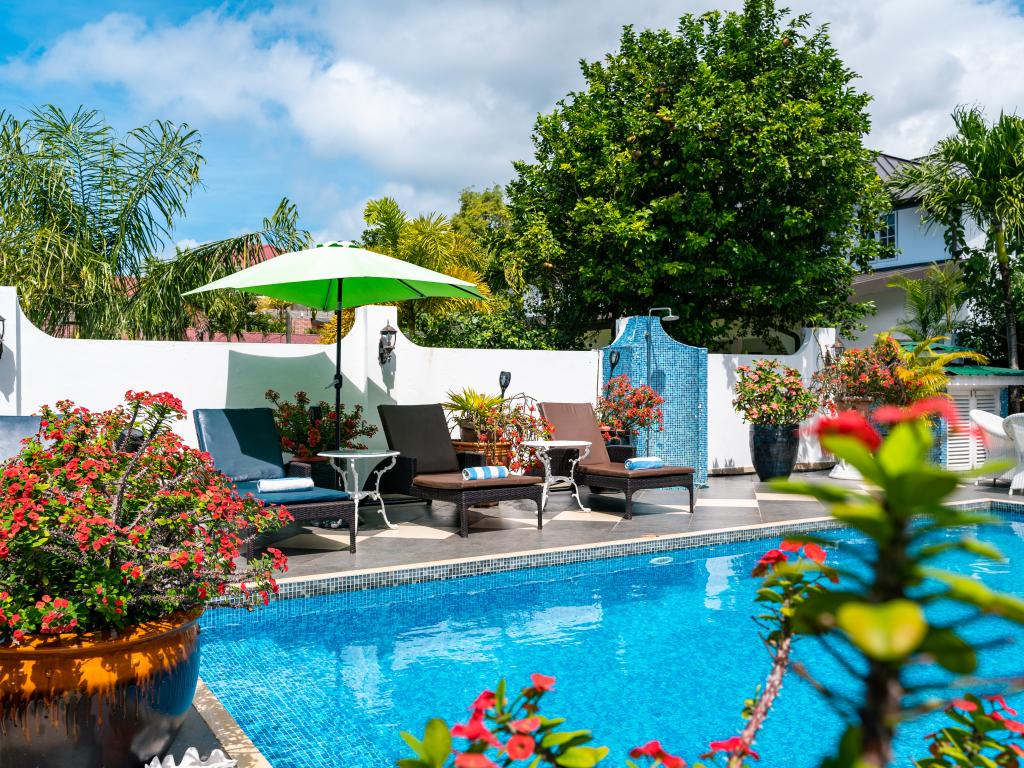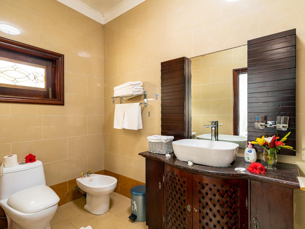 Kein Vergleich mit den Fotos. Die eigentlich schöne Villa wirkt etwas heruntergekommen. Die ältere Besitzerin ist zwar nett und hilfsbereit, aber sie hat wohl etwas den Überblick verloren, was man alles mal auf Vordermann bringen sollte. Pool war trübe, man hat den Boden nicht gesehen. Die Zimmer alt und abgewohnt, zum Teil ohne Safe. Zimmer wurden während unserer Abwesenheit immer betreten um die Klimaanlage abzustellen. Wenn man auswärts essen will, muss man fast nach Victoria. Also Wagen erforderlich. Supermarkt ca. 500m entfernt. Einmal haben wir in der Villa gegessen. Das Chicken Curry war hervorragend, hat aber 30 Euro gekostet. Das Bier 6 Euro. Die Anlage um den Pool ist recht schön. Das Angestelltenpaar aus Nepal war sehr freundlich und hilfsbereit.