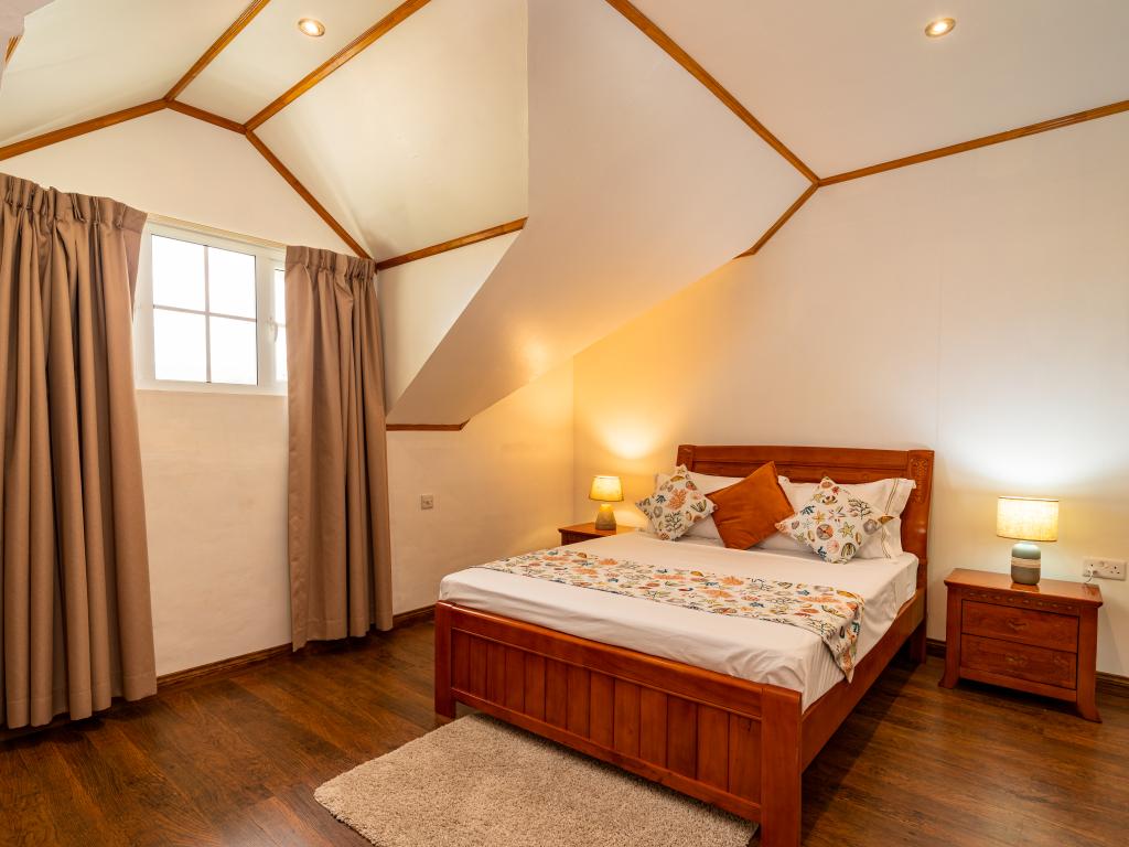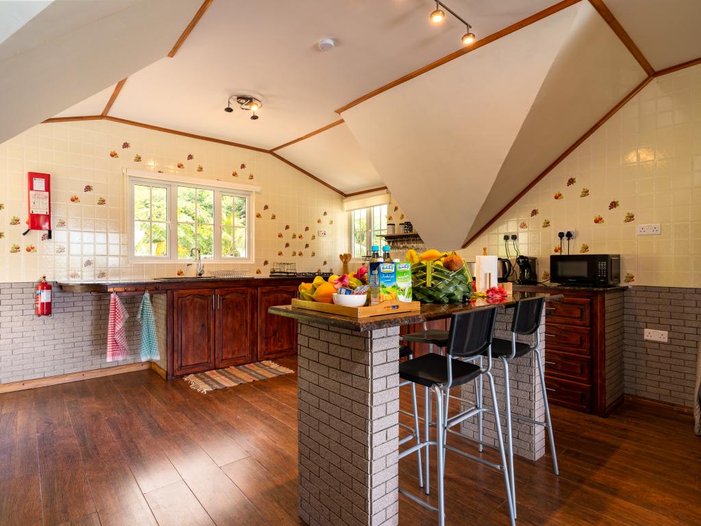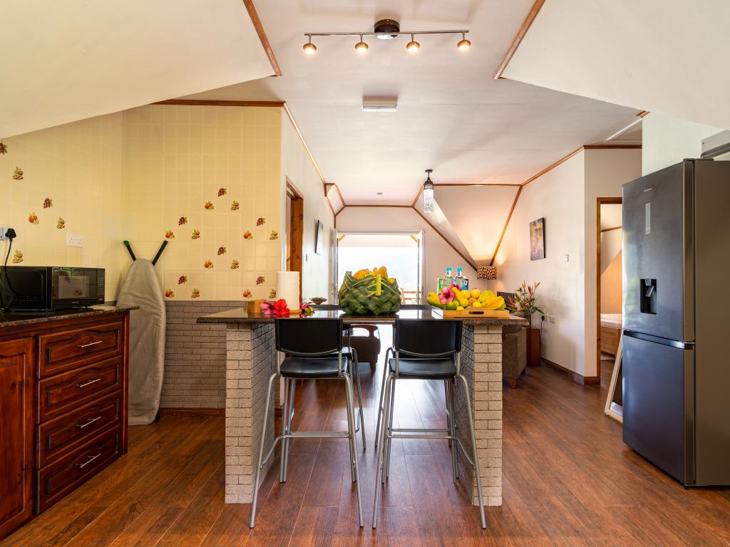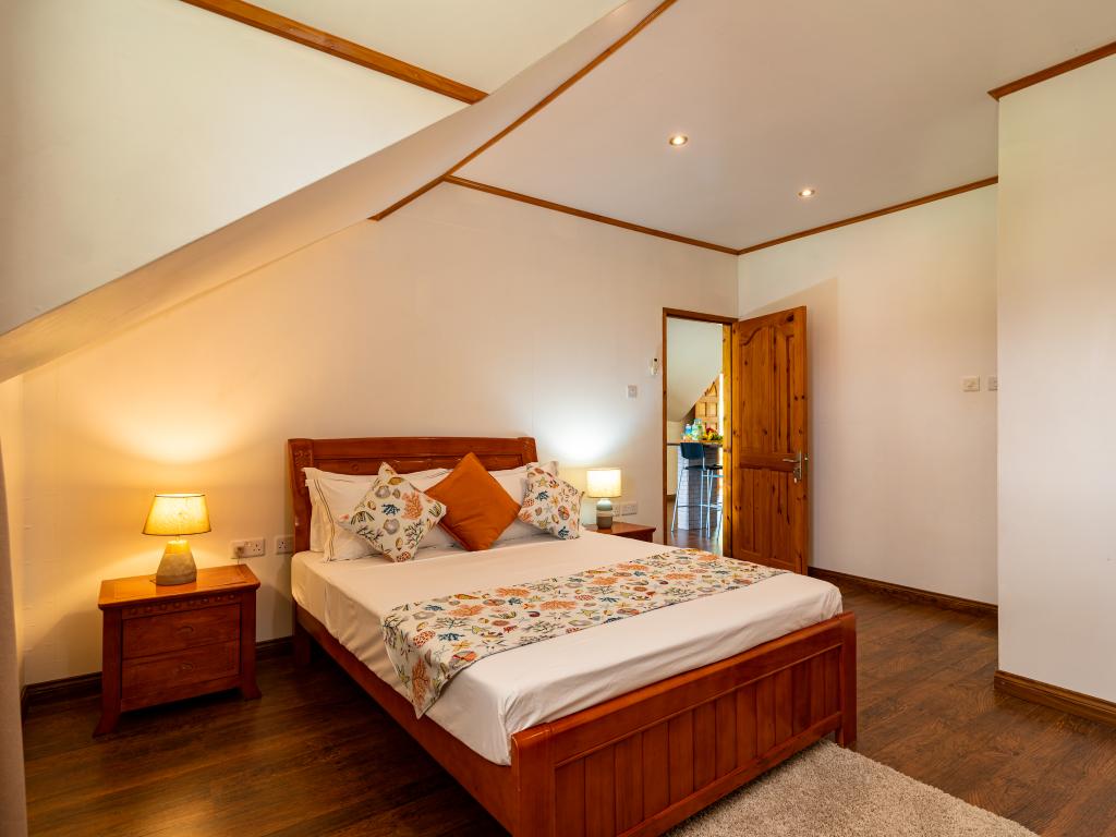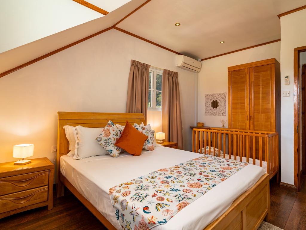 Umgeben von einem üppig tropischen Garten liegt dieses charmante Meerblick-Urlaubsdomizil nur 600 m vom Strand entfernt im Süden von Mahé. Genießen Sie hier Ihren Selbstversorger-Urlaub in infrastrukturell sehr gut angebundener Lage: Restaurants und Shops befinden sich allesamt in fußläufiger Distanz.