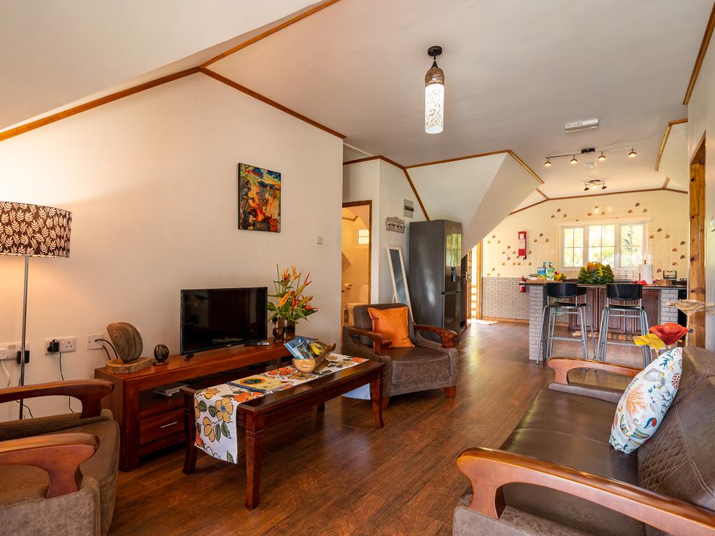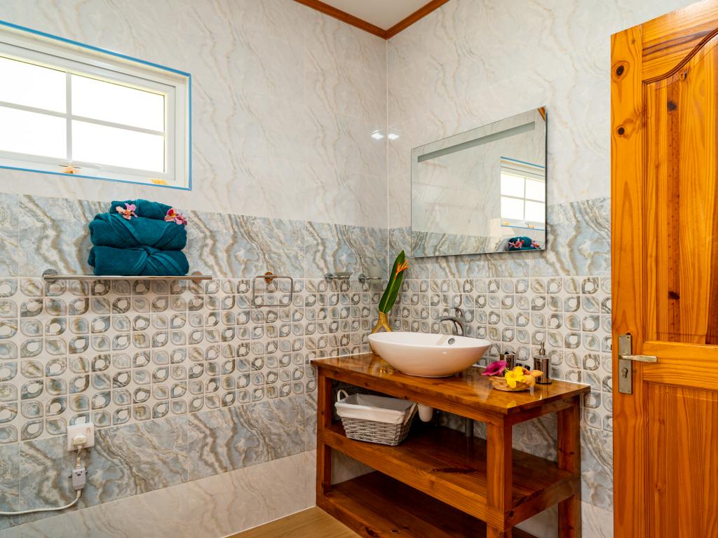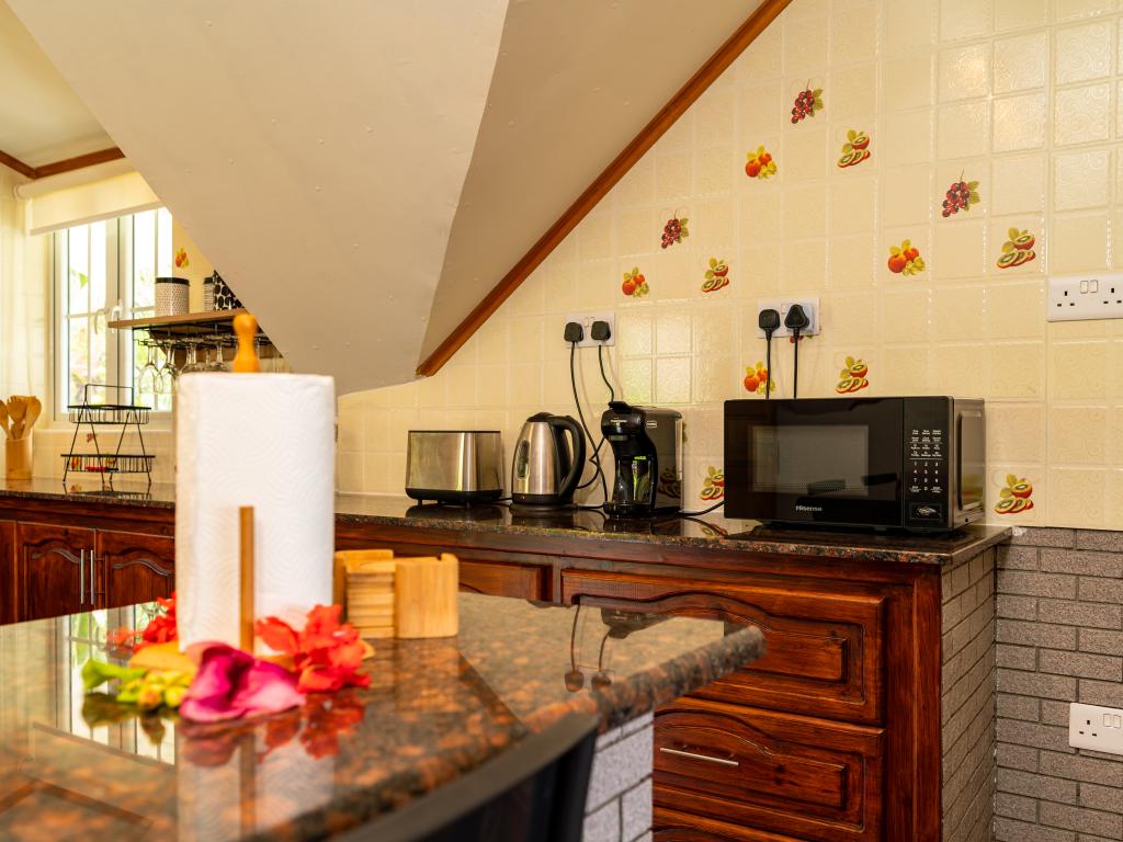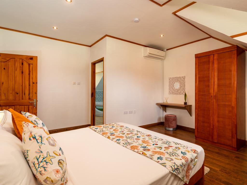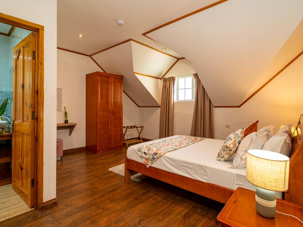 Umgeben von einem üppig tropischen Garten liegt dieses charmante Meerblick-Urlaubsdomizil nur 600 m vom Strand entfernt im Süden von Mahé. Genießen Sie hier Ihren Selbstversorger-Urlaub in infrastrukturell sehr gut angebundener Lage: Restaurants und Shops befinden sich allesamt in fußläufiger Distanz.