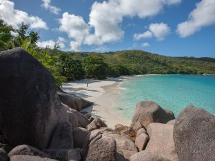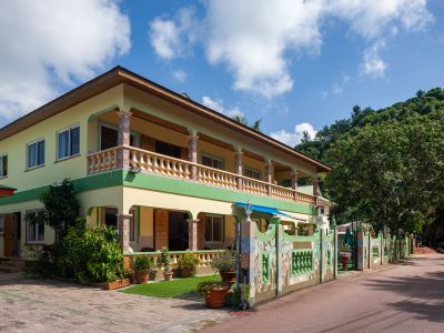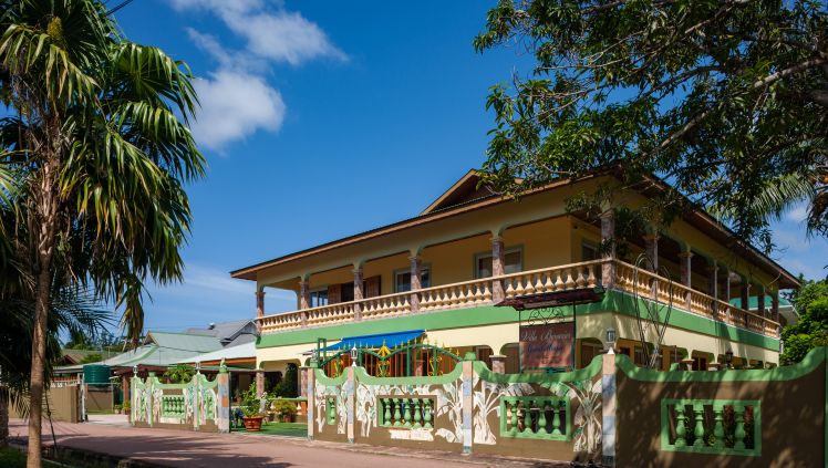 Das Small Hotel "Villa Bananier" liegt gleich an zwei der schönsten Strände von Praslin, und zwar zwischen der Anse Volbert und der Anse Gouvernement. Ein kleines Stranddorf mit Shops und guten Restaurants - der Name ist Cote D'Or - ist schnell fußläufig erreichbar.