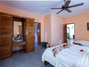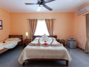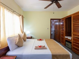 Das Bananier, laut Google Maps ein 3-Sterne-Hotel, war ein idealer Ausgangspunkt, um Praslin und die Umgebung zu erkunden. Nur wenige Gehminuten von Geschäften, Strand und Restaurants entfernt, fehlte es uns an nichts. Die Klimaanlage funktionierte einwandfrei, das Zimmer war dunkel und ruhig, und die Dusche lieferte reichlich heißes Wasser. Nachdem wir fast jeden Abend auswärts gegessen hatten, genossen wir ein Abendessen, das uns vom Hotel zubereitet wurde. Der schmackhafte Fisch und das frische Gemüse waren ein wahrer Genuss.