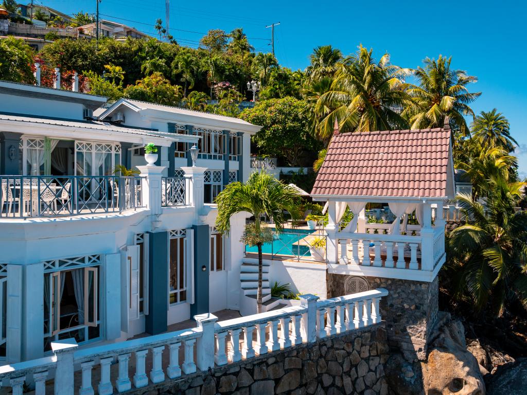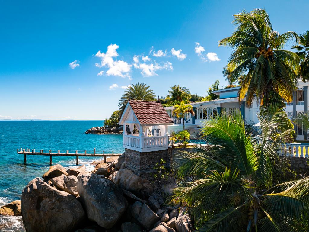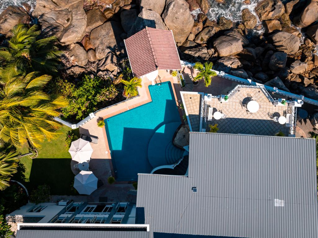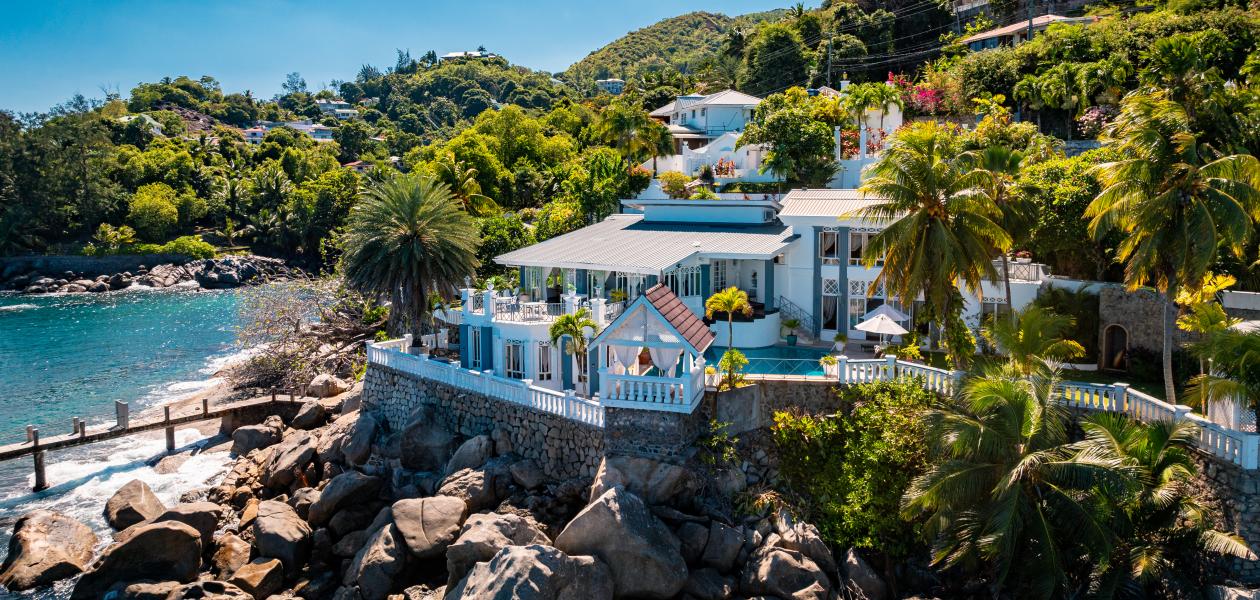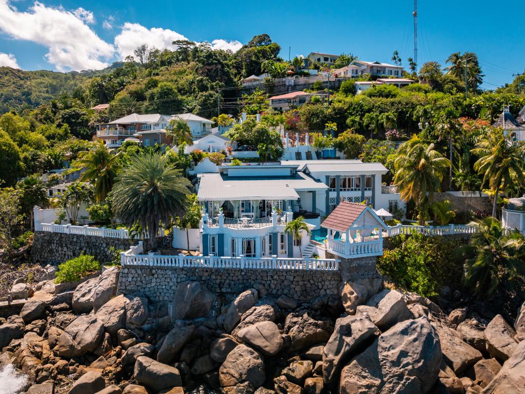 Die luxuriöse Villa „Blue Rhapsody“ liegt an der Nordküste von Mahé und bietet spektakuläre Ausblicke auf die umliegenden Inseln L'Ilot, Silhouette und North. Umgeben von tropischen Gärten und nur 500 m vom Soleil Beach entfernt, ist sie der ideale Rückzugsort für Privatsphäre und Naturgenuss.