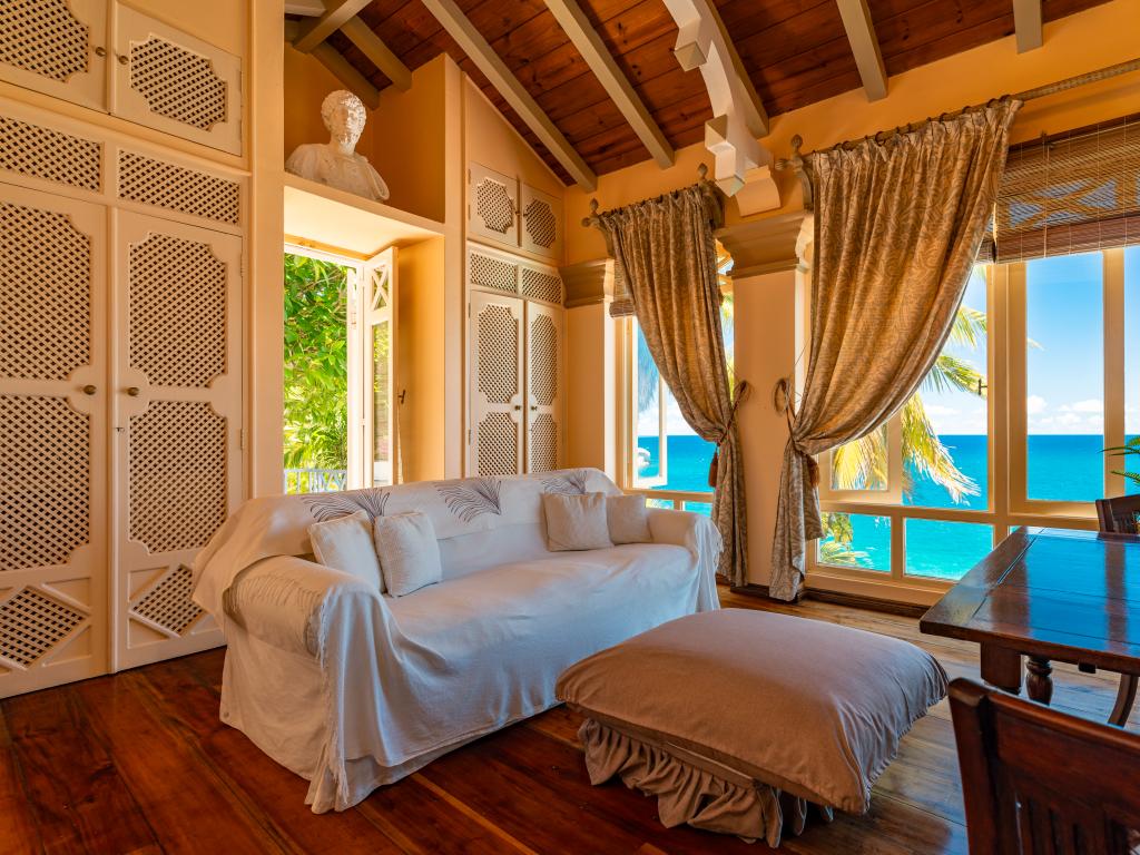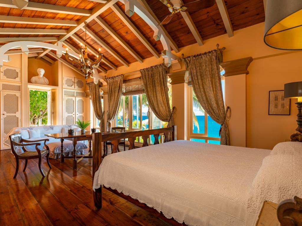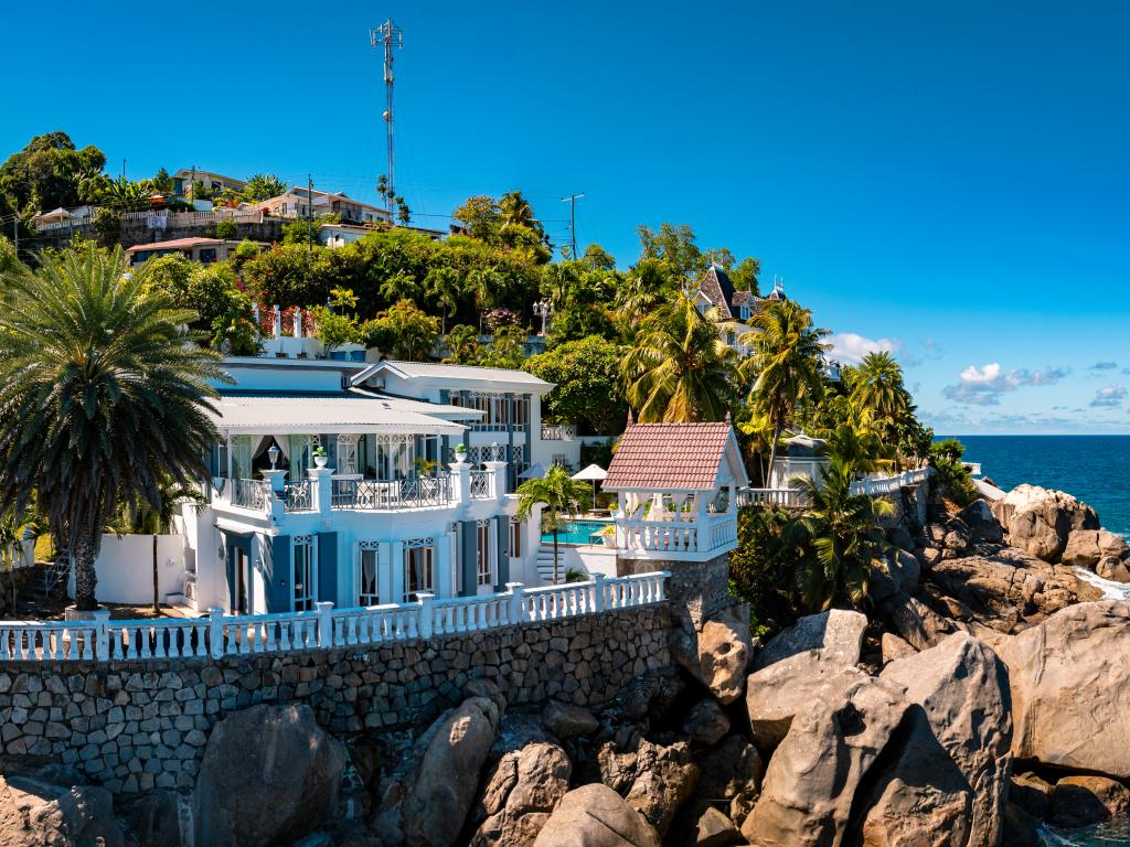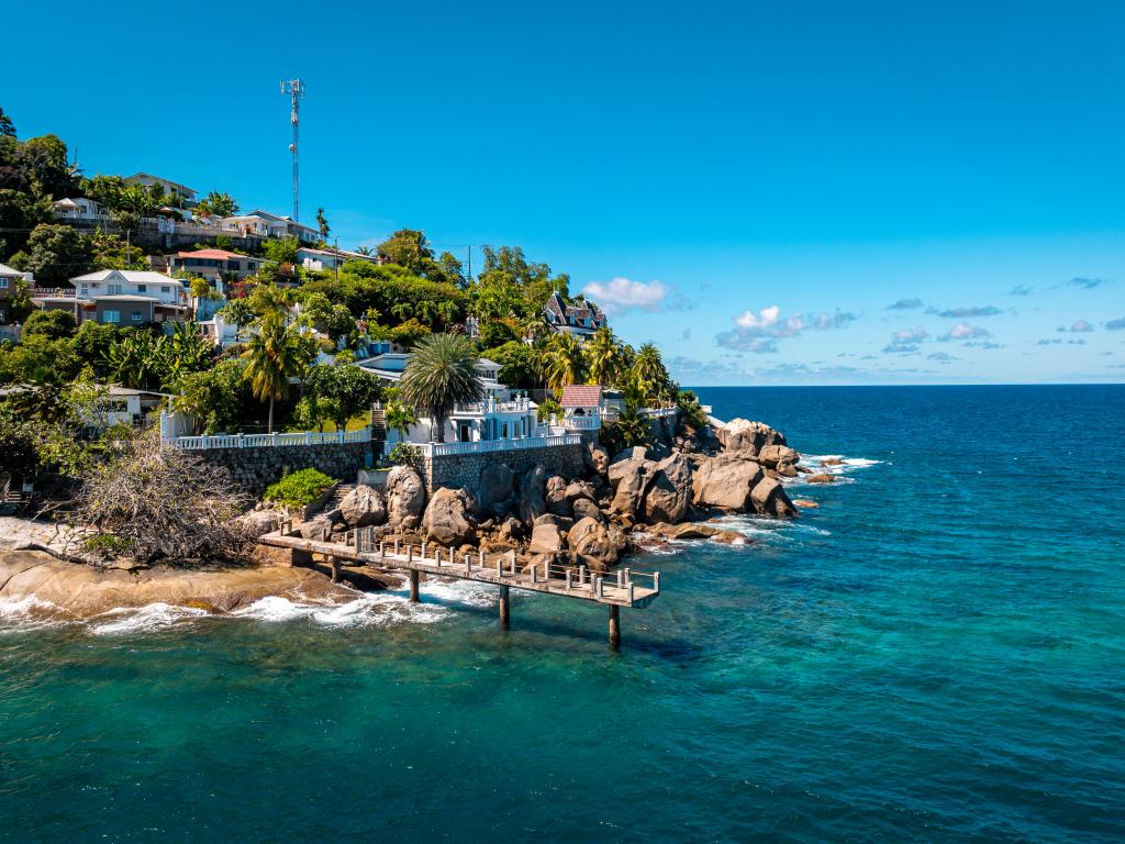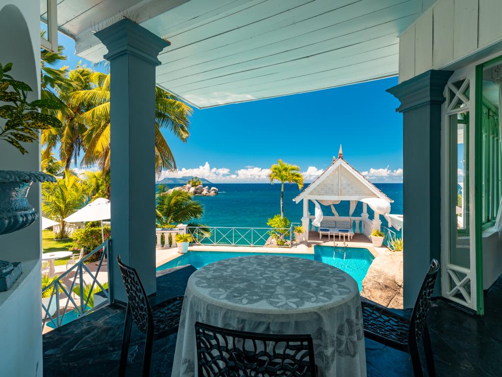 Die luxuriöse Villa „Blue Rhapsody“ liegt an der Nordküste von Mahé und bietet spektakuläre Ausblicke auf die umliegenden Inseln L'Ilot, Silhouette und North. Umgeben von tropischen Gärten und nur 500 m vom Soleil Beach entfernt, ist sie der ideale Rückzugsort für Privatsphäre und Naturgenuss.