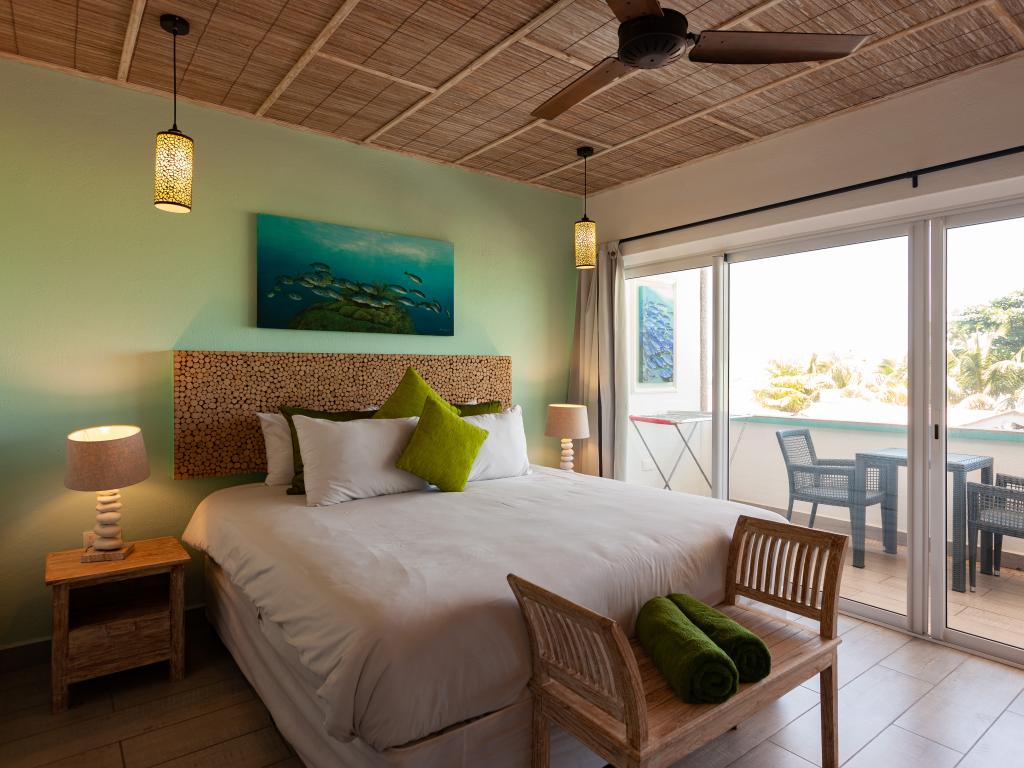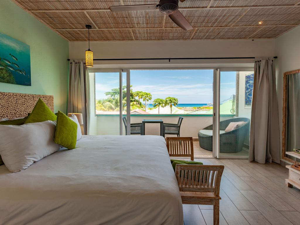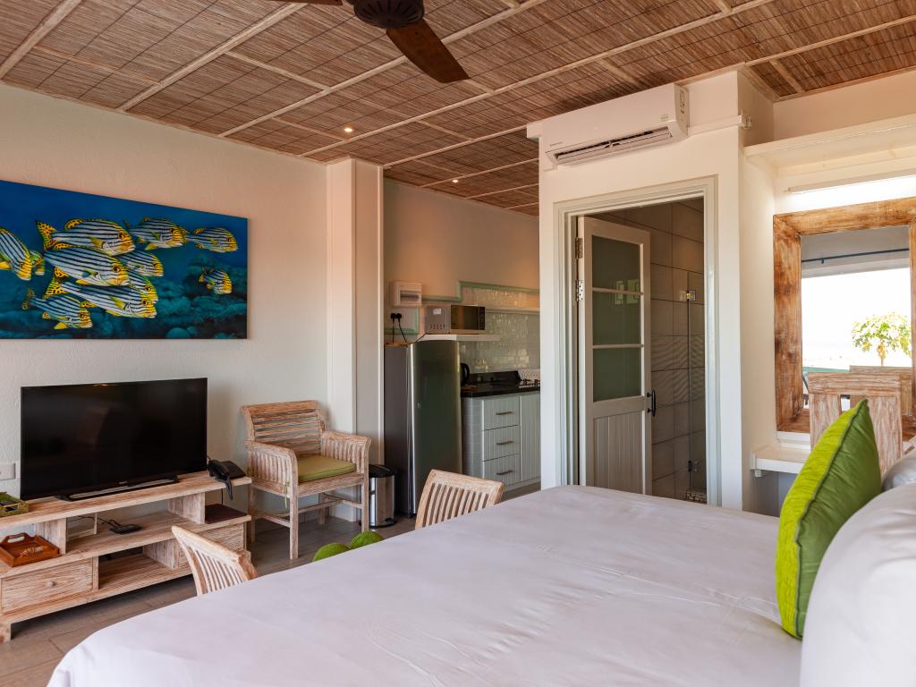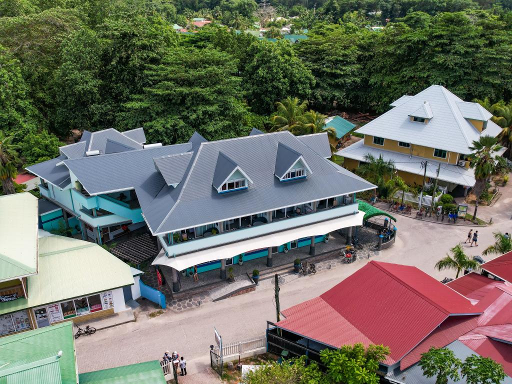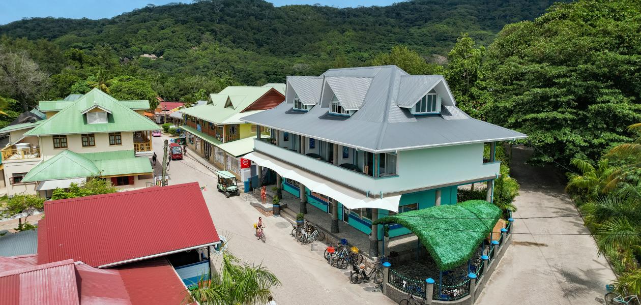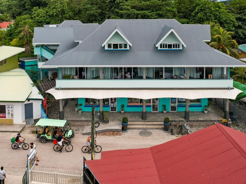 Das Hotel Board de la Mer auf La Digue liegt direkt am Hafen im Zentrum der Ortschaft. Sehr gute und stylische und moderne komplette (Inch. Küchen-)Einrichtung. Der Service erfolgte über das ggü. liegende Restaurant Fisch Trap. Das Frühstück war riesig und komplett und hat uns fast für den ganzen Tag gereicht. Abends leider durch sehr lautes Fahren von Bewohnern dann für je 1 min. extrem laut. passierte 5-6 x pro Abend. Der Balkon hatte einen schönen Blick auf den Sonnenuntergang.