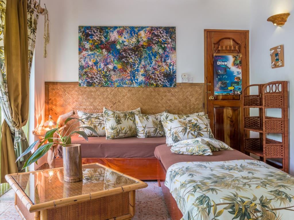 Nicole und Paolo sind unglaublich freundlich und immer erreichbar. Dass Nicole Französisch spricht, war für uns ein echter Pluspunkt, da unser Englisch nicht so gut ist. Iyan, der für Frühstück und Reinigung zuständig war, war sehr nett, und wir haben die gemeinsame Zeit mit ihm jeden Morgen sehr genossen. Selbstgemachte Marmeladen und eine größere Auswahl an Obst hätten uns noch gefreut, aber ansonsten war das Frühstück perfekt und komplett. Die Pension ist ideal gelegen. Der Strand ist nur 30 Meter entfernt, und es gibt Geschäfte und Restaurants in der Nähe. Wir kommen auf jeden Fall wieder.