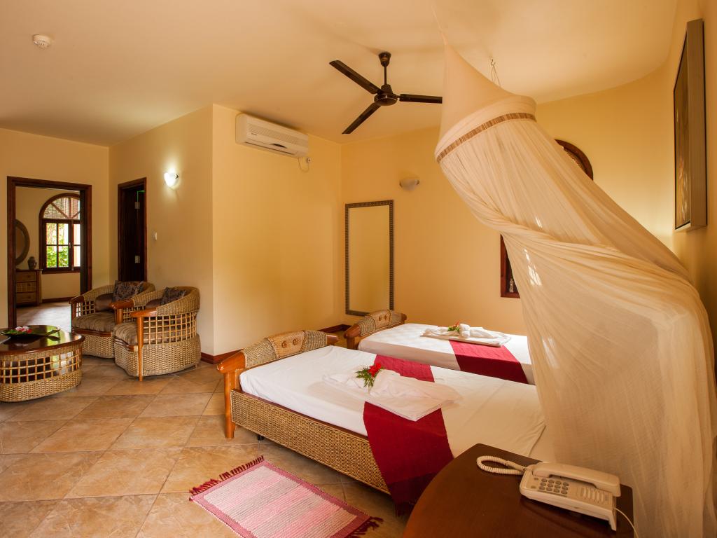 Das Castello Beach Hotel lädt das ganze Jahr über zu einem tropischen, romantischen Aufenthalt direkt am weißen Sandstrand Anse Kerlan auf Praslin, der zweitgrößten Insel der Seychellen, ein.