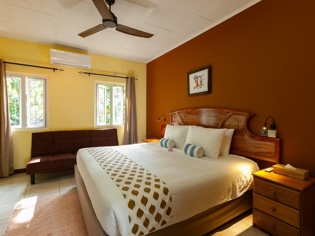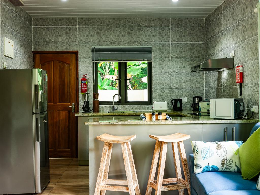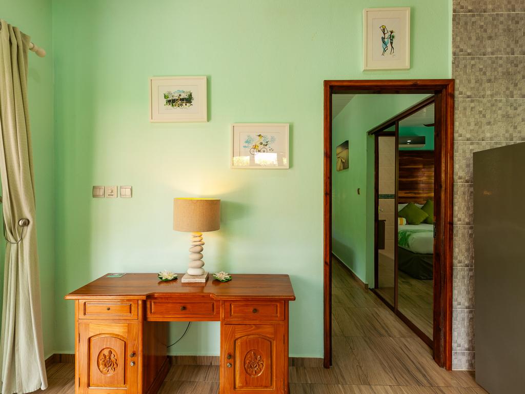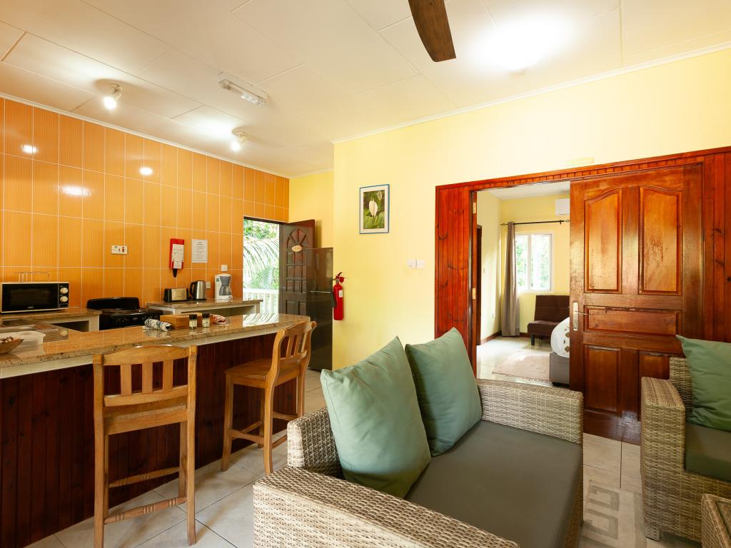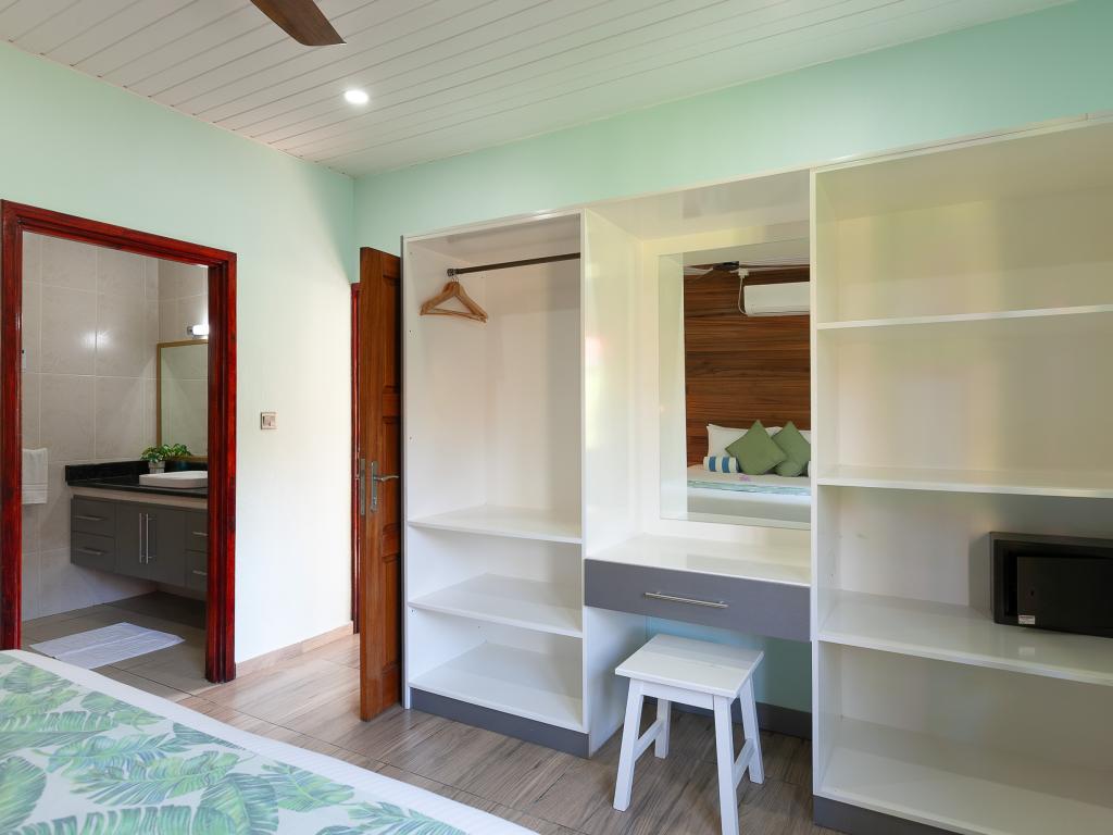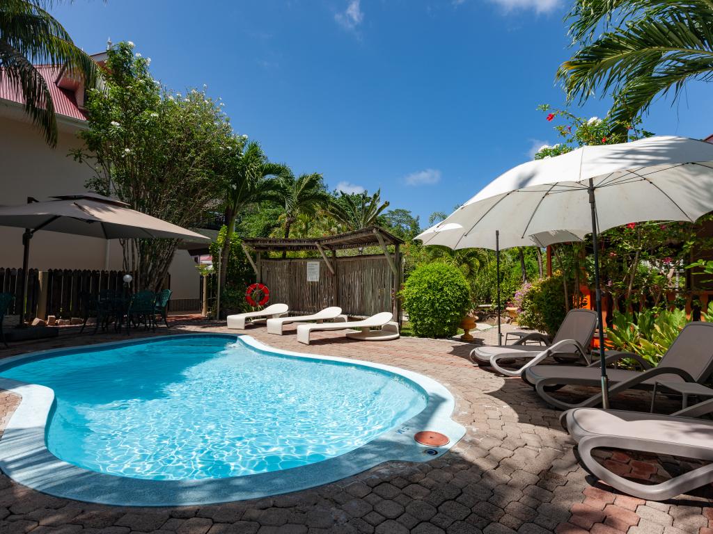 Eir hatten das Apartment (eigentlich ein eigenes kleines Haus) mit eigenem Pool. Das Haus war groß, sauber und mit einen toll gepflegtem Garten. Der kleine Pool wurde täglich gereinigt, ebenso wurde der Garten gepflegt und gewässert. Wir konnten gute Fahrräder über die Unterkunft leihen und das, Personal stand uns für alle Fragen zur Verfügung. Die Insel ist wunderschön, auch wenn es gerade einige Baustellen überall gibt. Die Strände haben Lauf und Fahrrad Distanzen von zehn Minuten. Einkaufen ist überall möglich und die Auswahl ist groß genug, obwohl die Insel so klein ist. Die Restaurants sind teuer aber das creolische Essen hat uns gut gefallen.
