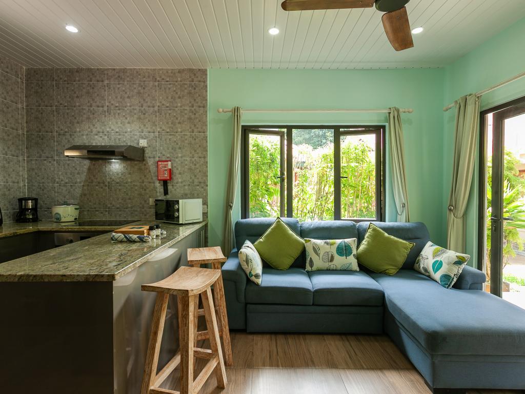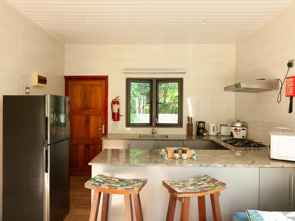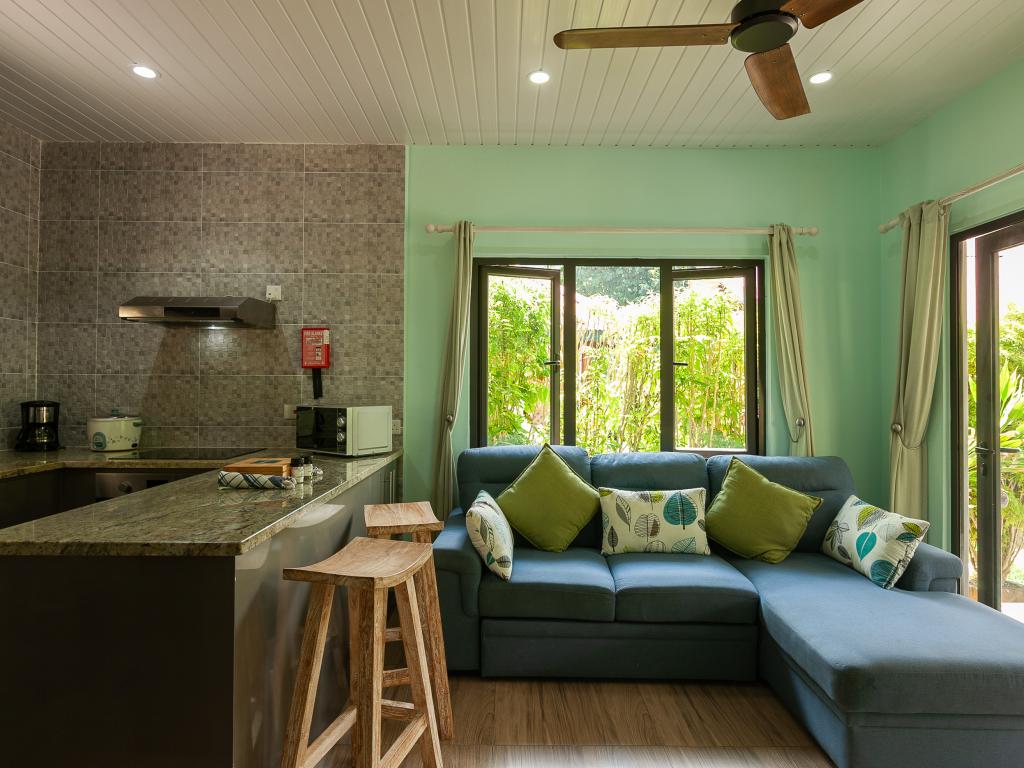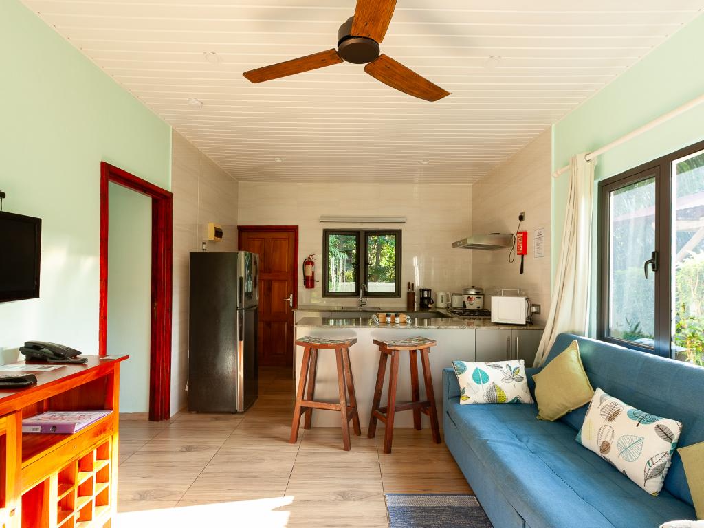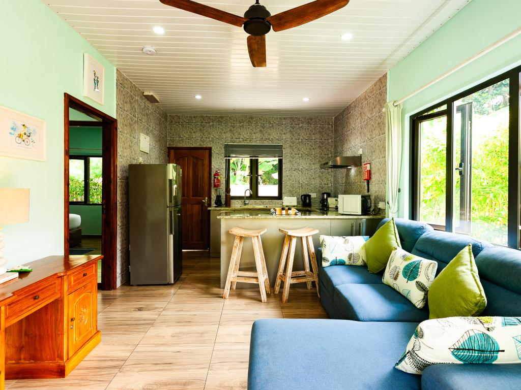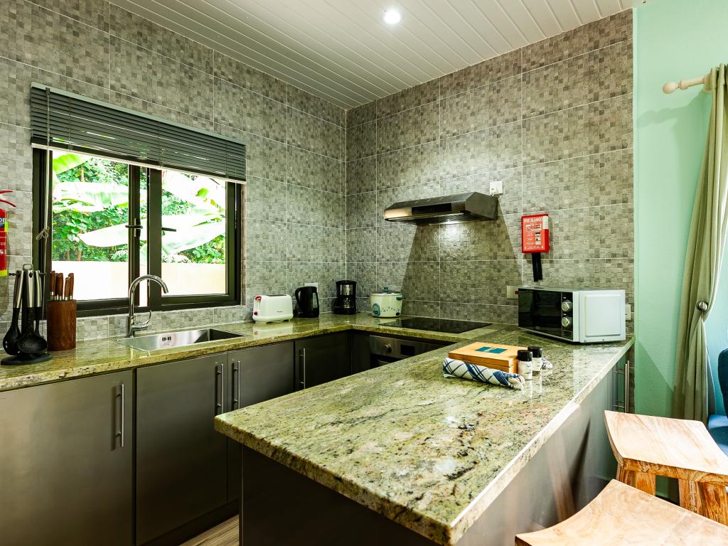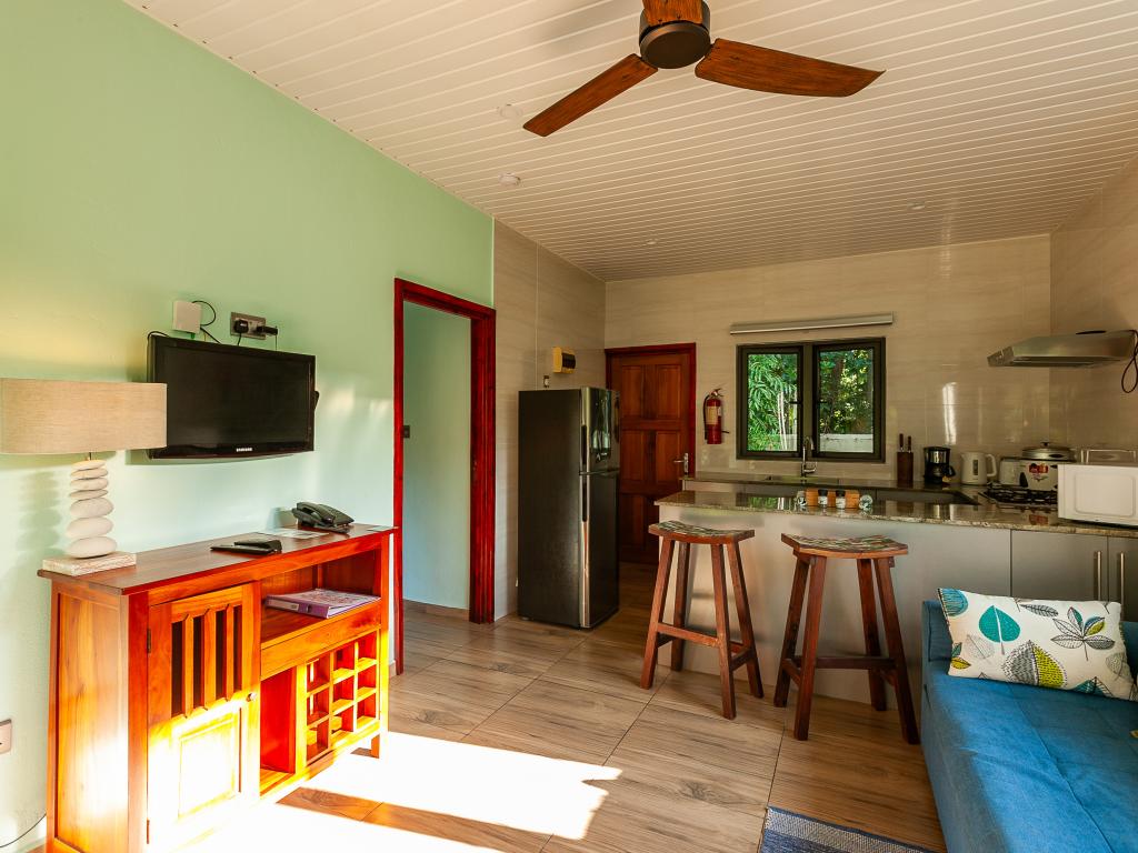 Eir hatten das Apartment (eigentlich ein eigenes kleines Haus) mit eigenem Pool. Das Haus war groß, sauber und mit einen toll gepflegtem Garten. Der kleine Pool wurde täglich gereinigt, ebenso wurde der Garten gepflegt und gewässert. Wir konnten gute Fahrräder über die Unterkunft leihen und das, Personal stand uns für alle Fragen zur Verfügung. Die Insel ist wunderschön, auch wenn es gerade einige Baustellen überall gibt. Die Strände haben Lauf und Fahrrad Distanzen von zehn Minuten. Einkaufen ist überall möglich und die Auswahl ist groß genug, obwohl die Insel so klein ist. Die Restaurants sind teuer aber das creolische Essen hat uns gut gefallen.