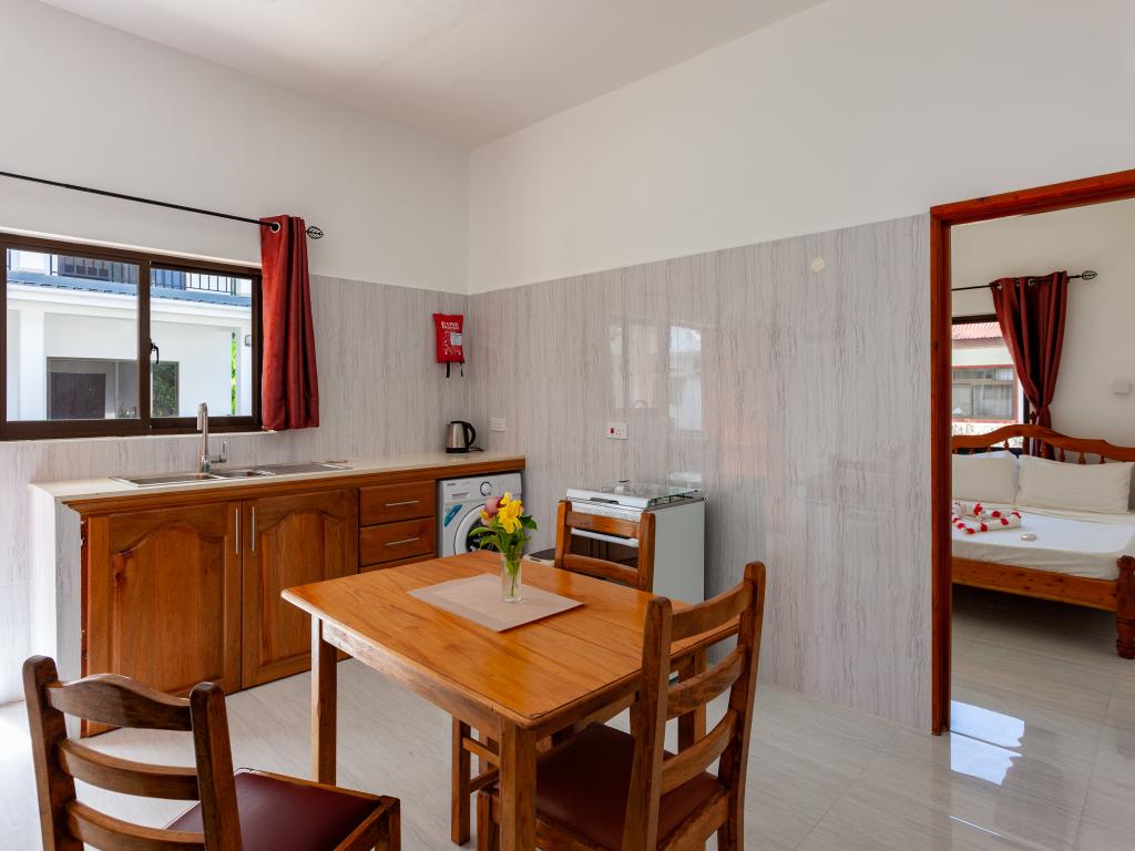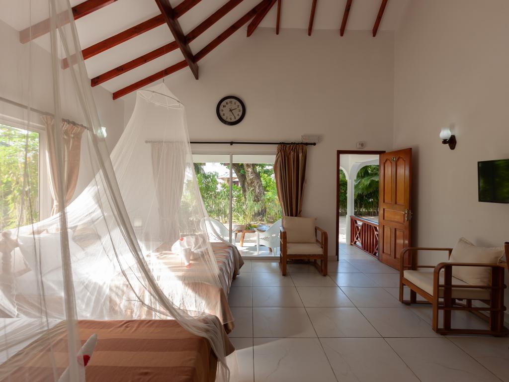 Translation (DE): GoogleTranslateWe stayed in a brand-new apartment, completely furnished to European standards. Large, cold tiles awaited us. Breakfast was quite good, although we only enjoyed this service twice. Otherwise, the next day we headed to La Passe, to the center. Our morning stop was the Gloria Bakery, with its delicious breakfast. The downside was that we were far from the center. The drive home in the evening/night, when it rained, was a complete disaster. In some places, there was no light, and we could only guess at the roads. Bicycles on La Digue don't have lights. Casa Livingston had real charm, apart from the rock-hard mattresses. Veronica Guest House, for example, is small but charming. Unfortunately, that was a big disappointment, as my daughter Jacky kept saying, "Why so far away?" Nobody wanted to stay in La Passe so late in the evening because of the drive home. Additionally, and it's not their fault, a lot of construction is going on in La Digue. The commercialization of the island has increased rapidly in the last three years. We also went to the Black Bull Cafe, which was nice but extremely expensive and there were no locals.
