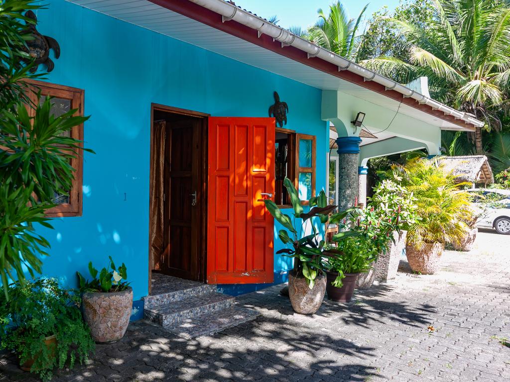 The Islander guesthouse offers eight apartments and one villa, all of which are kept in a traditional Creole style, and are located in the north-west of Praslin, close to the beach."Islander" offers appartments for 2 persons, family appartments for 4 persons and a villa (maximum for 4 persons). A highlight of the guesthouse is Anse Kerlan beach, which is located in front of the estate, and ranks among the most beautiful beaches in the Seychelles.