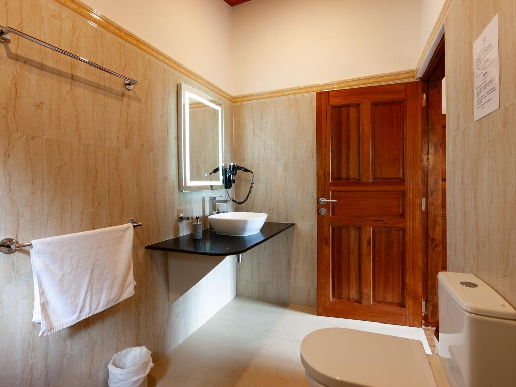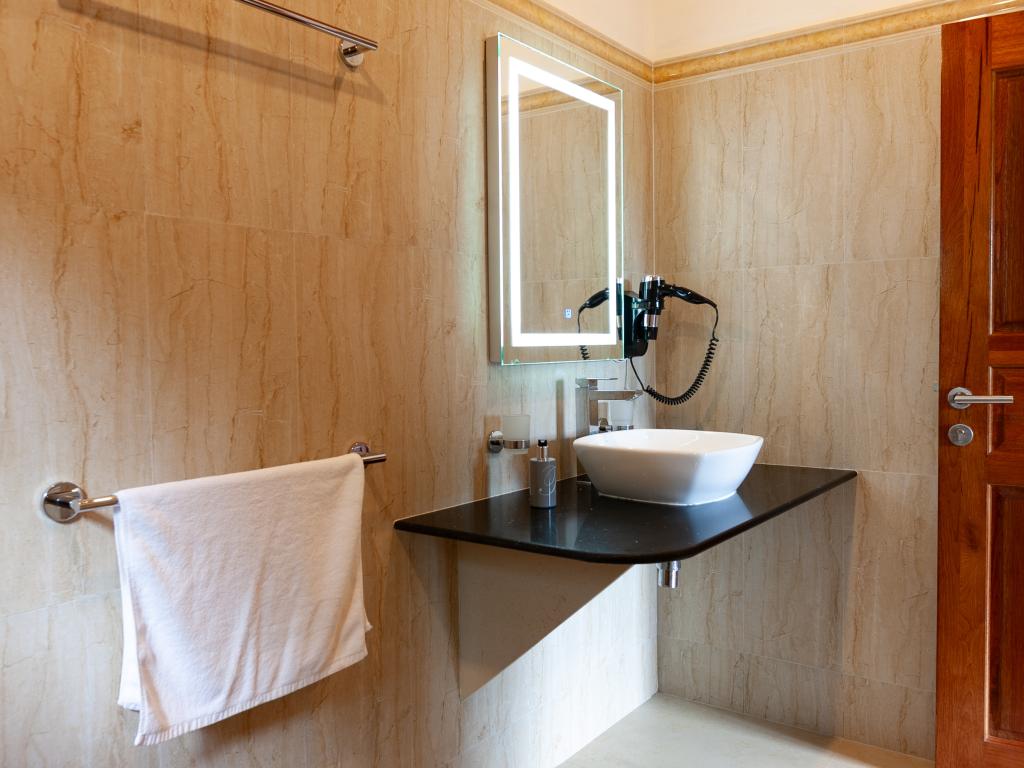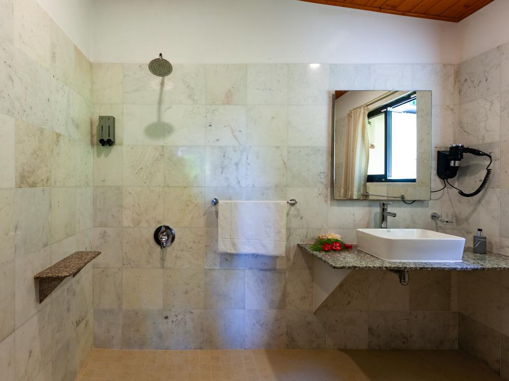 Translation (IT): GoogleTranslateBeautiful resort with a good restaurant. Spacious rooms, beautifully situated. We had one extra bed. We could have all fit in one room, which means we actually had one extra room. That would have been more economical for us. So we overpaid for something we didn't need. The pool area was beautiful. Very friendly staff. Great place.