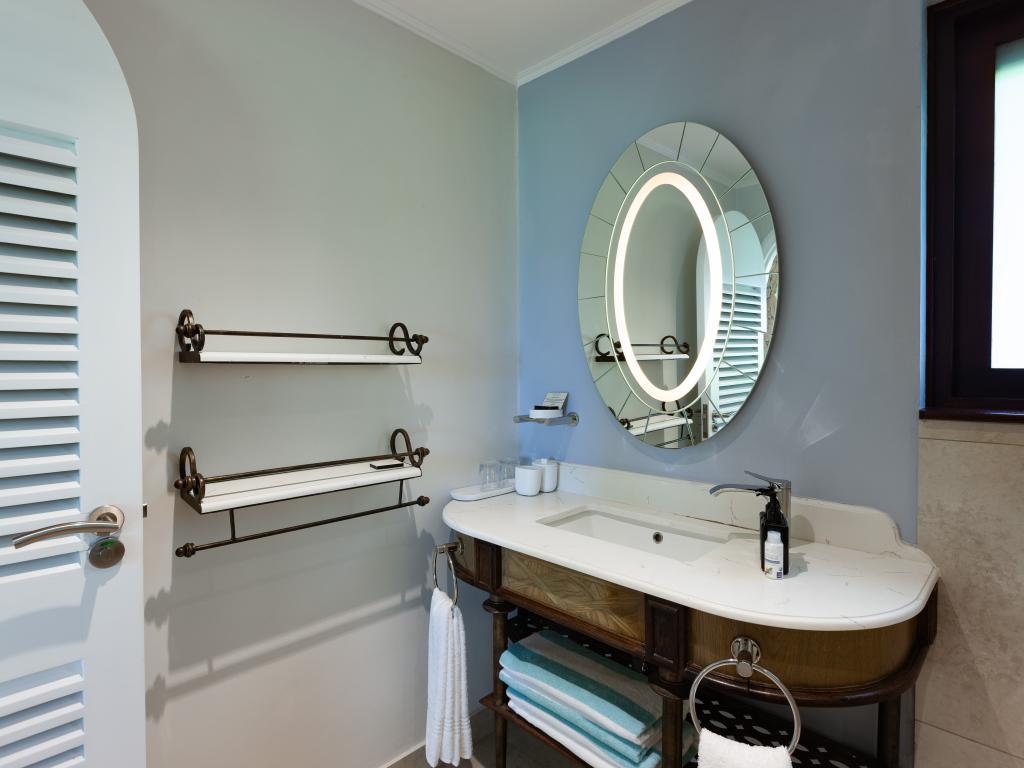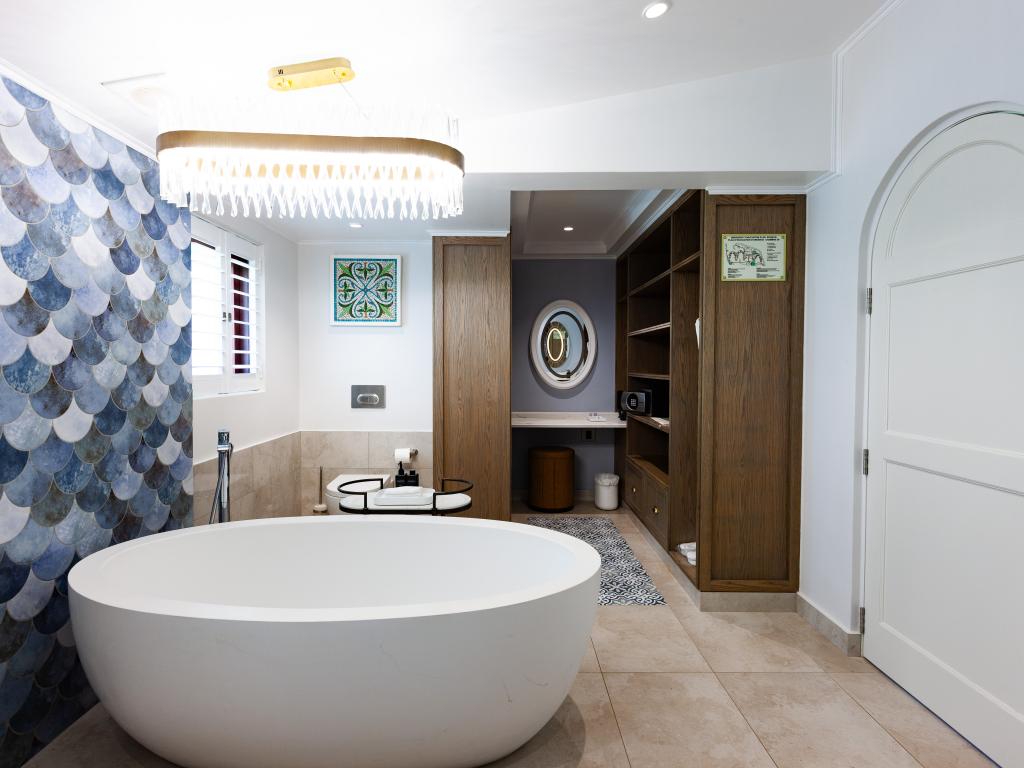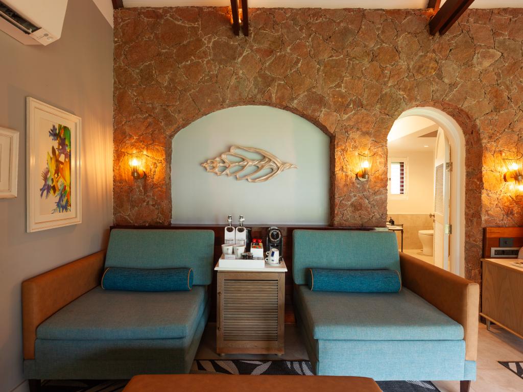 Translation (DE): GoogleTranslateThe newly renovated hotel is beautifully situated and offers almost everything a tourist could want. Rooms and beds are excellent, bathrooms are superb, cleanliness is good, the staff is very helpful and friendly, and the service is top-notch. I can definitely recommend the hotel, with two reservations: - The daily themed buffet meals included in the half-board option are beautifully presented, but the quality and taste are rather poor. Fresh fish and spicy Creole flavors are completely absent. Almost everything comes from a can or the freezer. - There are no facilities for children (playground equipment, etc.) apart from the children's pool.