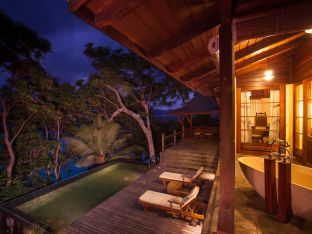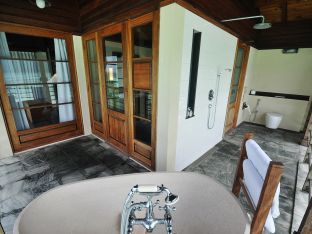 We had a villa with a private pool and private access to the beach. Everything is very tasteful and luxurious. The garden is like a small jungle. This naturally means that there are various animals that sometimes wander into the interior, such as millipedes, lizards, and cockroaches. We simply caught them with a glass and released them back into the garden. There were also mosquitoes due to the abundance of greenery, but mosquito spraying was used during our stay. The pool is cleaned every morning. The villa was not overlooked. The breakfast is very good; you could order two different dishes and also get a bread basket. It was more than plentiful. We had half board, which we wouldn't do again. For dinner, you get a starter, a main course, and a dessert from the regular menu. That was too much for us. In retrospect, an à la carte meal would have been sufficient for us and probably would have been cheaper. The food was nothing special. Some of the dishes we tried were not good at all. For example, the tuna tartare wasn't particularly fresh, and the octopus curry tasted only of black pepper. Round Island offers a variety of activities. We snorkeled, went canoeing, and visited Moyenne Island, home to free-roaming giant tortoises. One morning, we went to Mahé and hiked the Copolia Trail. From the vantage point, we had another fantastic view of St. Anne Marine Park and, in the distance, the islands of Praslin and La Digue. The boat ride from Round Island to Mahé and back is offered free of charge at certain times of the day.