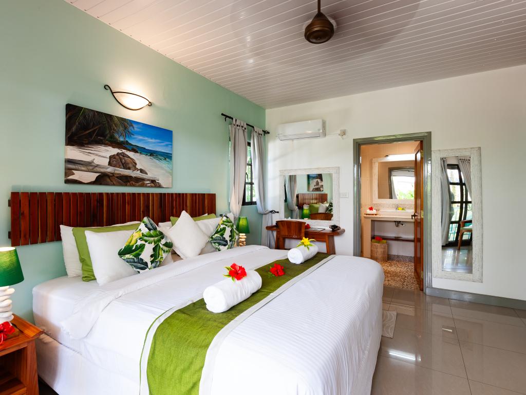 The charming Cabanes des Anges guesthouse opened its doors to the world in the spring of 2014. This well-run holiday estate offers rooms, apartments, and a swimming pool, and is located at the heart of La Digue, ensuring easy-access to all of the island's beaches by walking or by bike.
