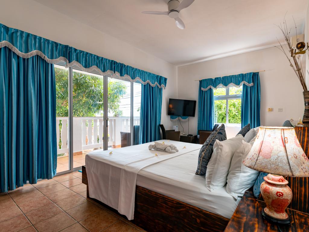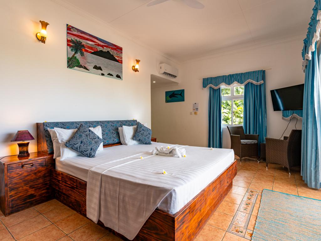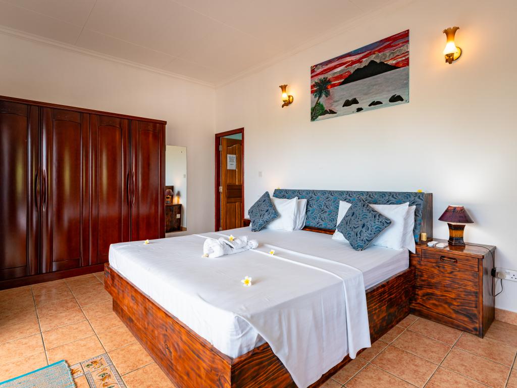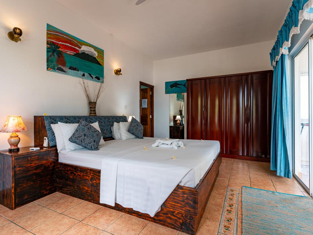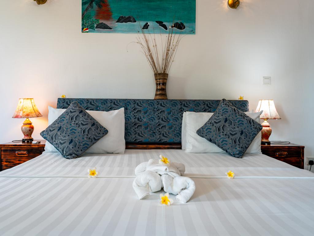 The family-run Diver’s Lodge Guesthouse is located near to the beautiful beach of Beau Vallon, surrounded by a tropical garden, and comes highly-recommended to anyone, not just scuba divers and snorkelling fans! The four modern double rooms of the residence are just a short distance from the beautiful fine sandy beach, and offer excellent value for money for your Seychelles holiday. There is also a great diving centre just next to the estate.