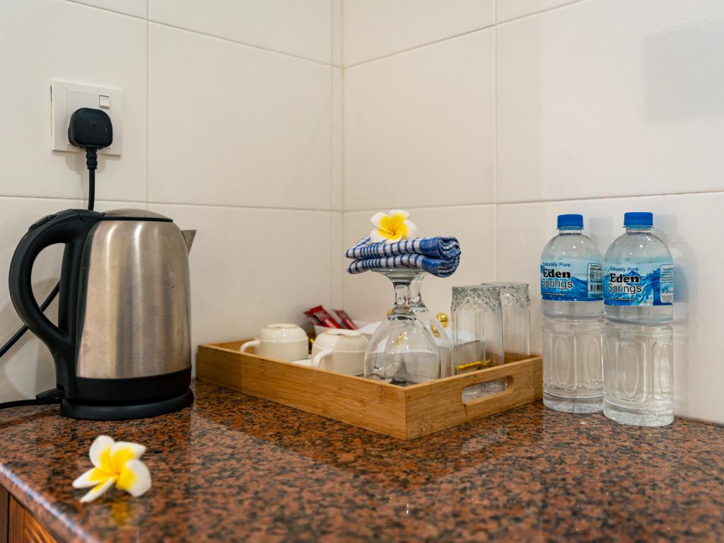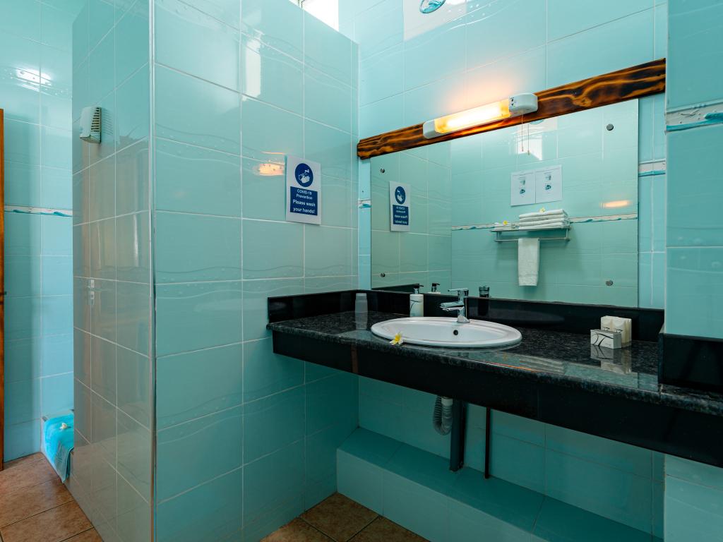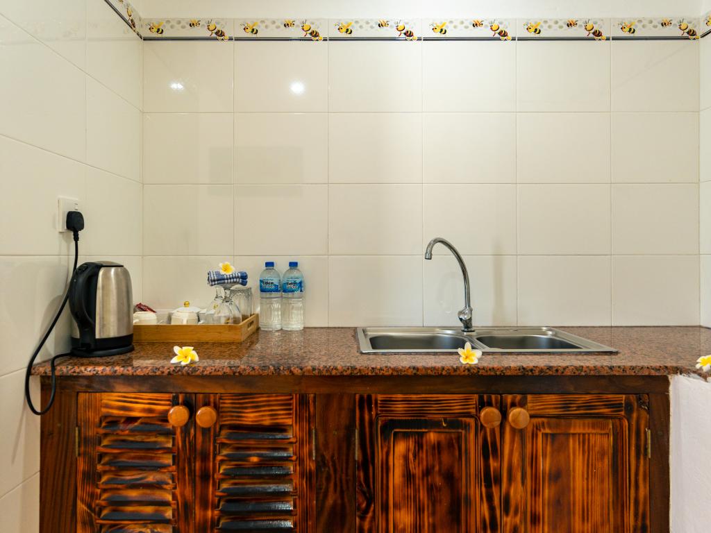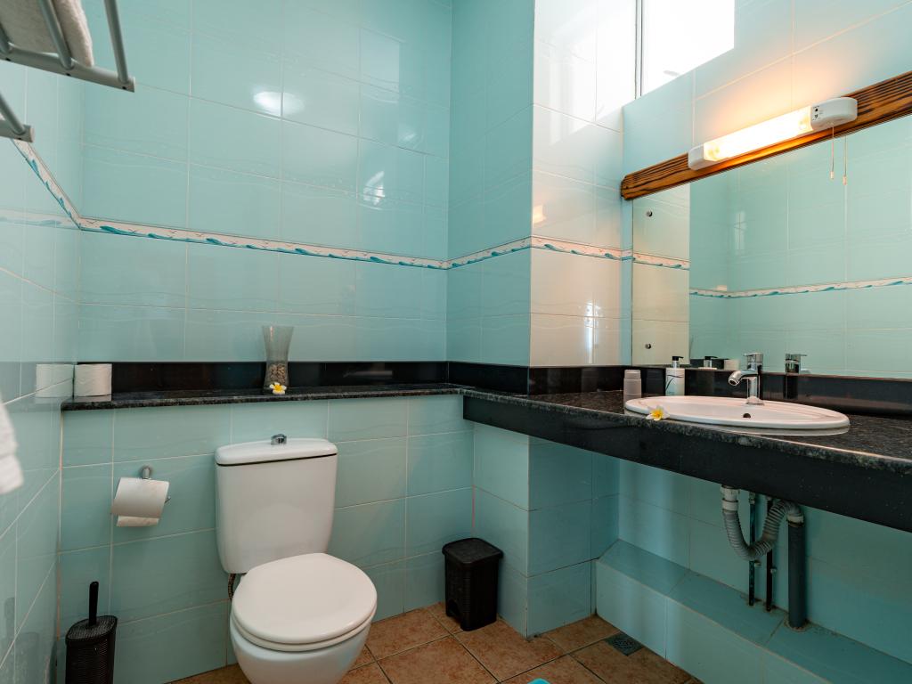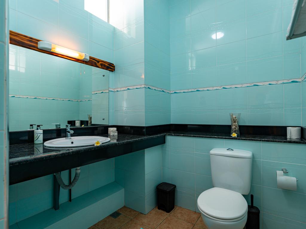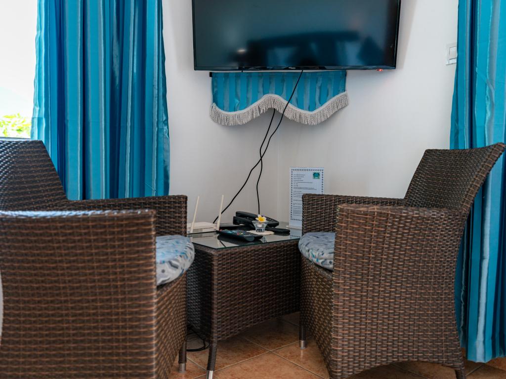 Translation (IT): GoogleTranslateVery nicely located, simple accommodation with breakfast at the end of Beau Vallon Beach. The large rooms with sea view are equipped with good air conditioning and very good, large beds. Flashlights for evening walks are recommended, as there are no sidewalks. There is a beautiful, small beach directly in front of the accommodation.
