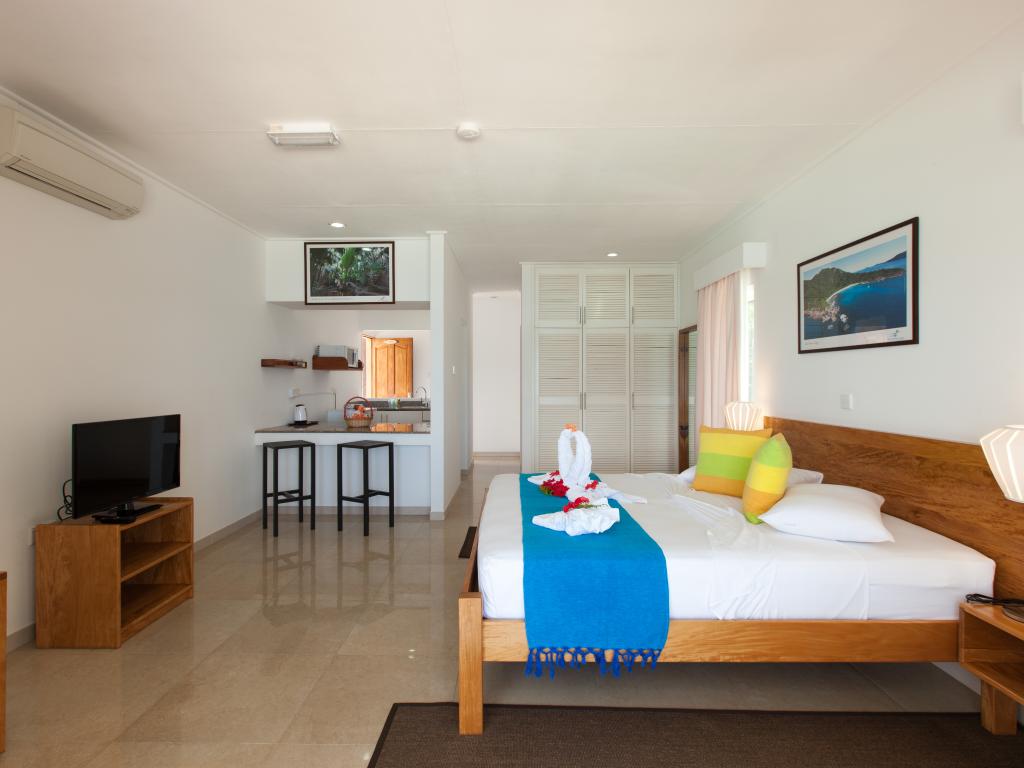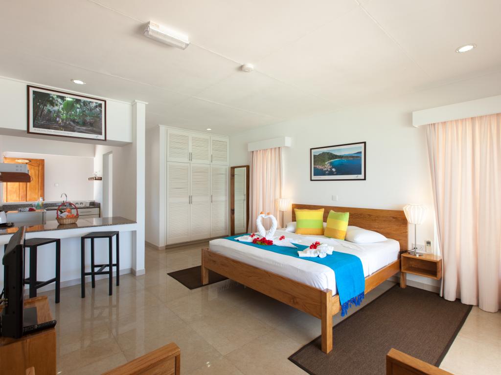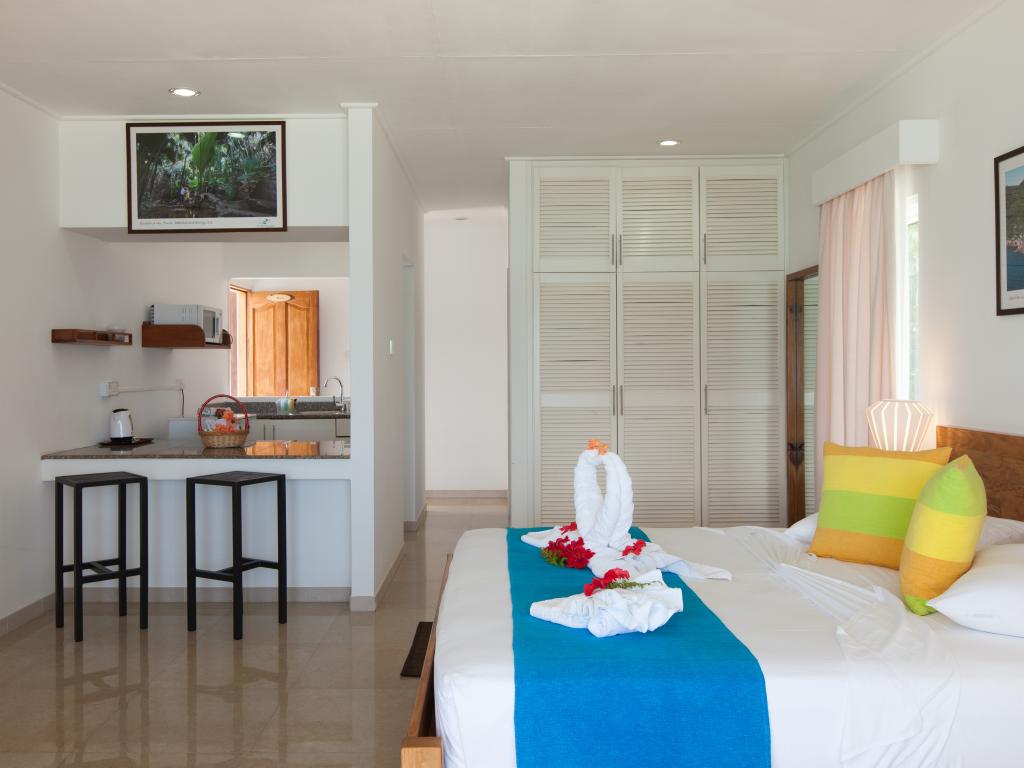 Built in 2014, the Marie-France Beach Front Apartments estate is a charming establishment that lies directly on the sea to the south of the small harbour-town on La Digue. Enjoy the beautiful views of the nearby island of Praslin, as well as the spectacular sunsets in the evenings. On top of that, beautiful beaches such as Anse Severe, Anse Source d’Argent, and Grand Anse can all be reached on-foot or by bike with ease.