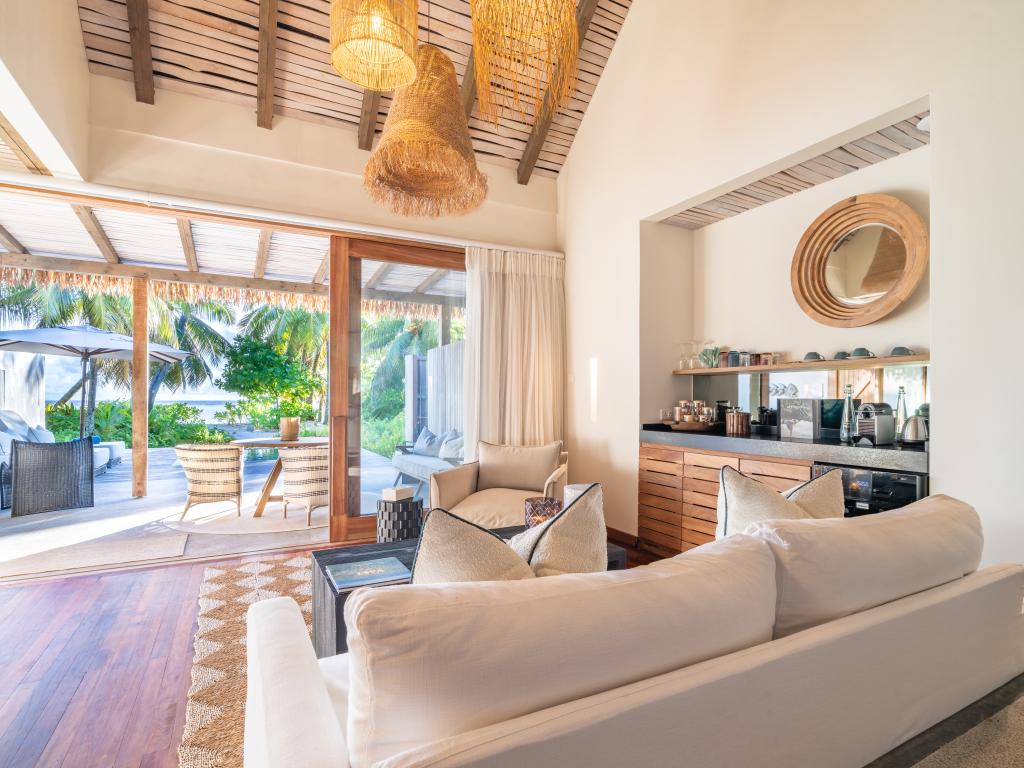 Barefoot comfort right on the fine, sandy beach of Alphonse Island.