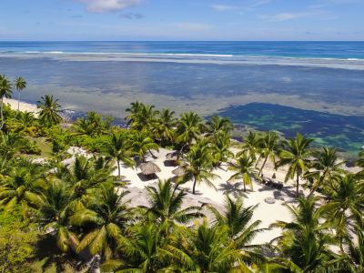 The striking, triangular shape of Alphonse Island is one of the most beautiful spots amongst the Seychelles' coral islands. The island's distinguished resort, Alphonse Island Lodge, aims to provide unforgettable holidays in a unique tropical paradise. The hotel is located in the east of the island, and its bungalows and villas can be found right on the fine, sandy beach.