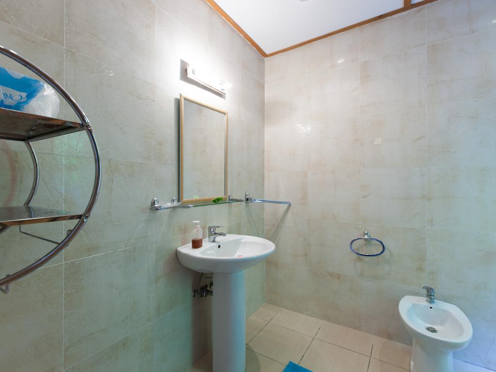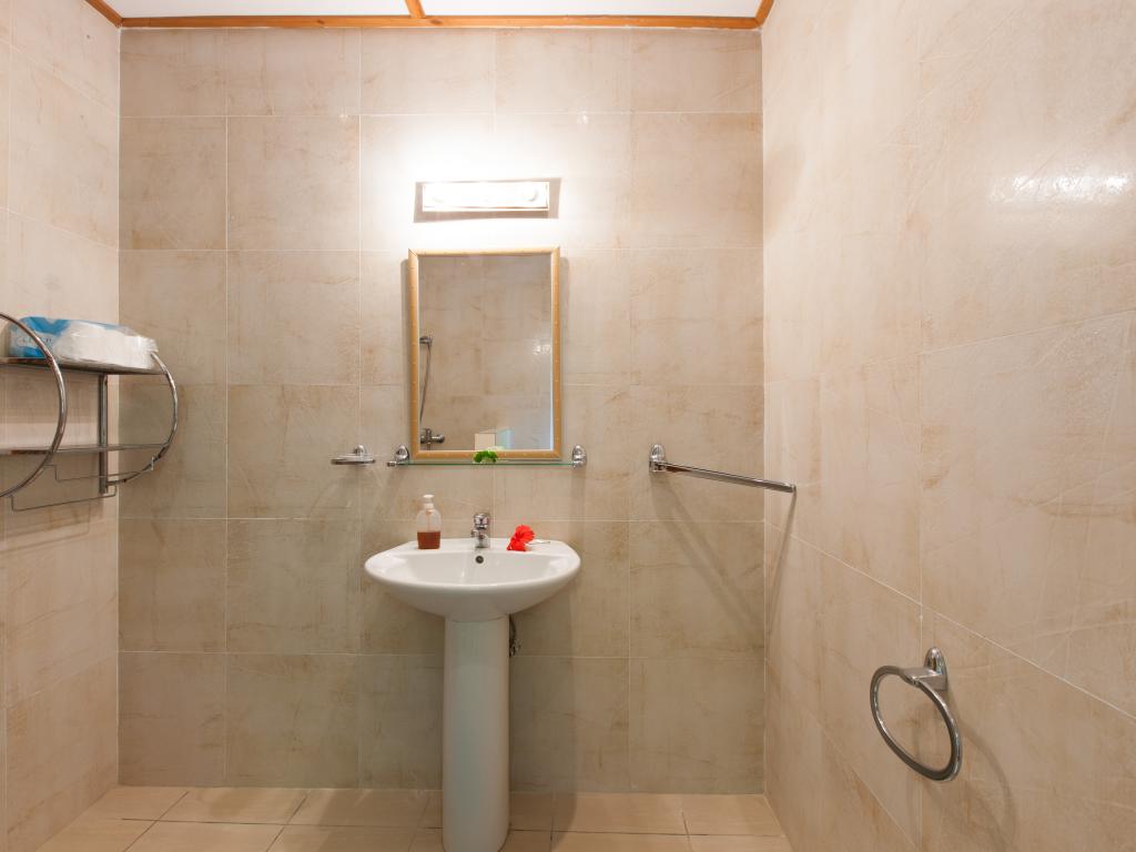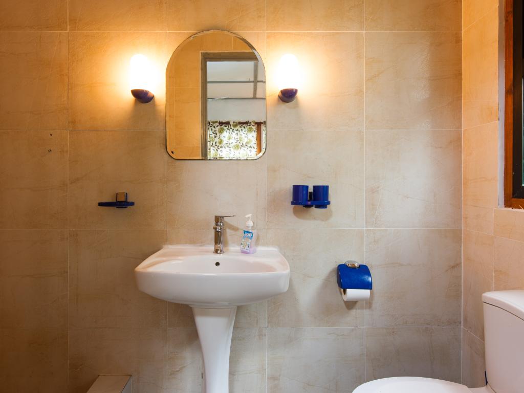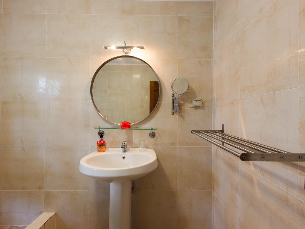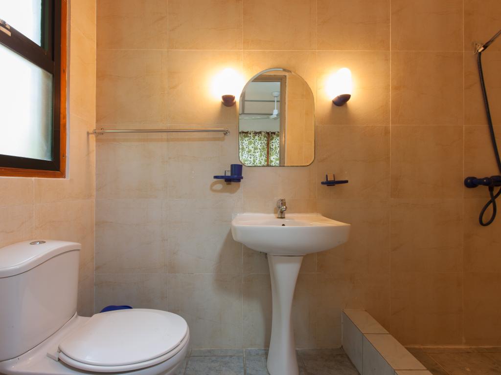 Translation (DE): GoogleTranslateThe system itself could be very nice if it and the rooms / apartments and their equipment are updated. In its current state, the price is definitely not justified! Everything is extremely old; Nothing has been renewed here for 30 years! The air conditioning in the apartment (No. 6) was very old, no longer worked properly and was extremely loud! There were no room fans (but are given as a feature), not even on request (standing fans can be seen in the photos). TV is in the room, but is not functional without the EU-230V adapter you have brought with you (2 are required!), Then you have to program the transmitter yourself, TV may work then. WiFi is not available in the facility, not even for a fee! We were told to buy prepaid cards in the shop. The fridge was very old, did not cool properly and completely after 1 day, a replacement device came, but only very late (food spoiled), the owner compensated us with 100 rupees. Breakfast not recommended (toast moldy, this can happen, but is still not nice). The pool is fed with rainwater from the gutter, a chlorine float in the pool ensures hygiene. The beach Takamakka can be reached in about 20 minutes on foot (steep mountain), not for people who are not good on foot! The same applies to the supermarket. Bus stop in about 10 minutes on foot (steep mountain).