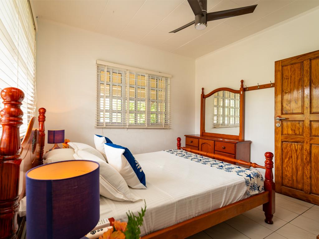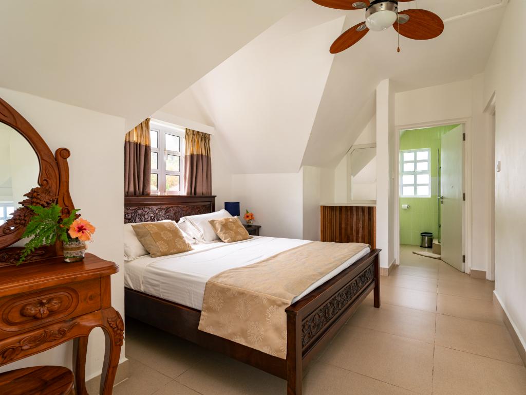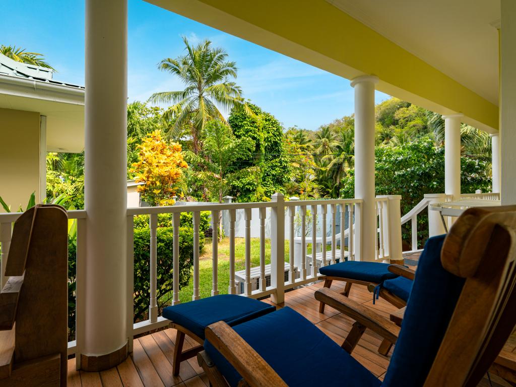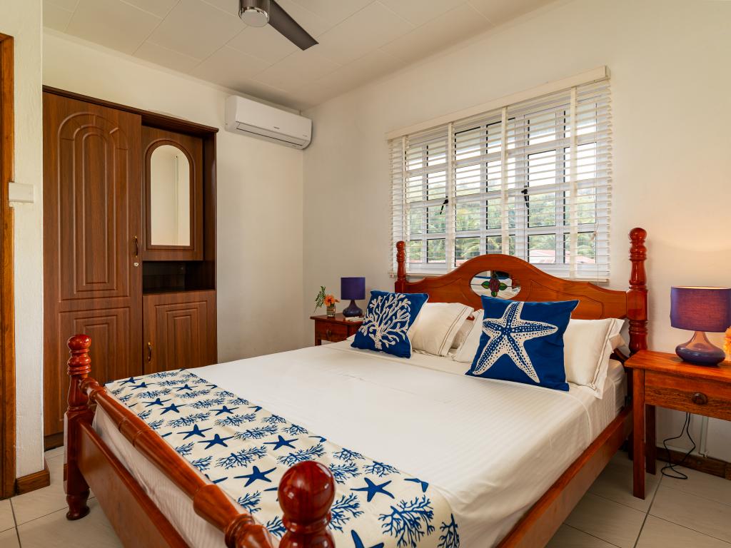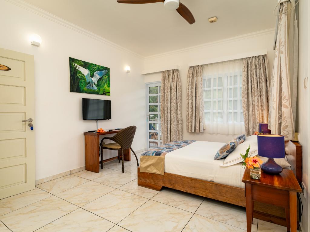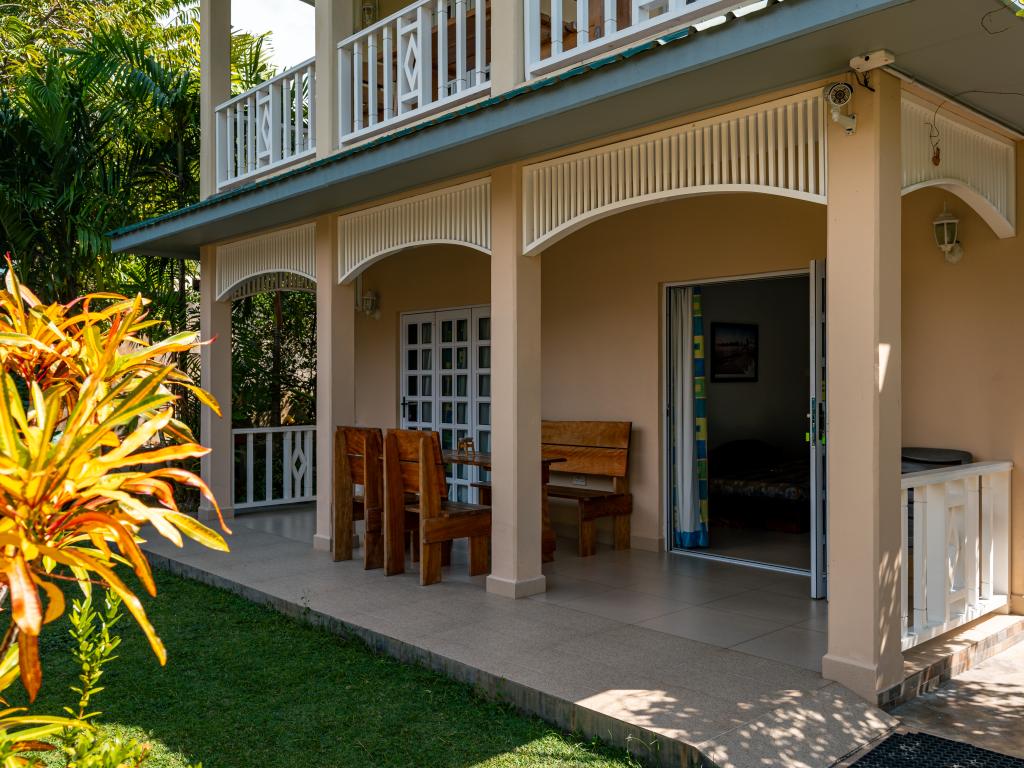 A very nice, stylish guesthouse (the beach is just across the road, a 2-minute walk) with lovely rooms, each with a balcony. We had mountain views and could admire the fruit bats taking flight every evening. Breakfast was typical of the region and served on a beautiful terrace. The entire staff, including the owner and the organizer Amanda, anticipated our every need. Just a few minutes away is a Hilton hotel where we could sign up for the themed buffet dinners (20% discount through the guesthouse). We particularly recommend the Creole evening with music and dance performances. Directly opposite, there's a shop and a highly-rated takeaway. We recommend renting a car to explore the island. However, the bus is also an option, as we frequently encountered it on the narrowest sections of the road. Mahé feels significantly busier than Praslin and La Digue, but here in the southeast, you can truly relax away from the hustle and bustle of Victoria.