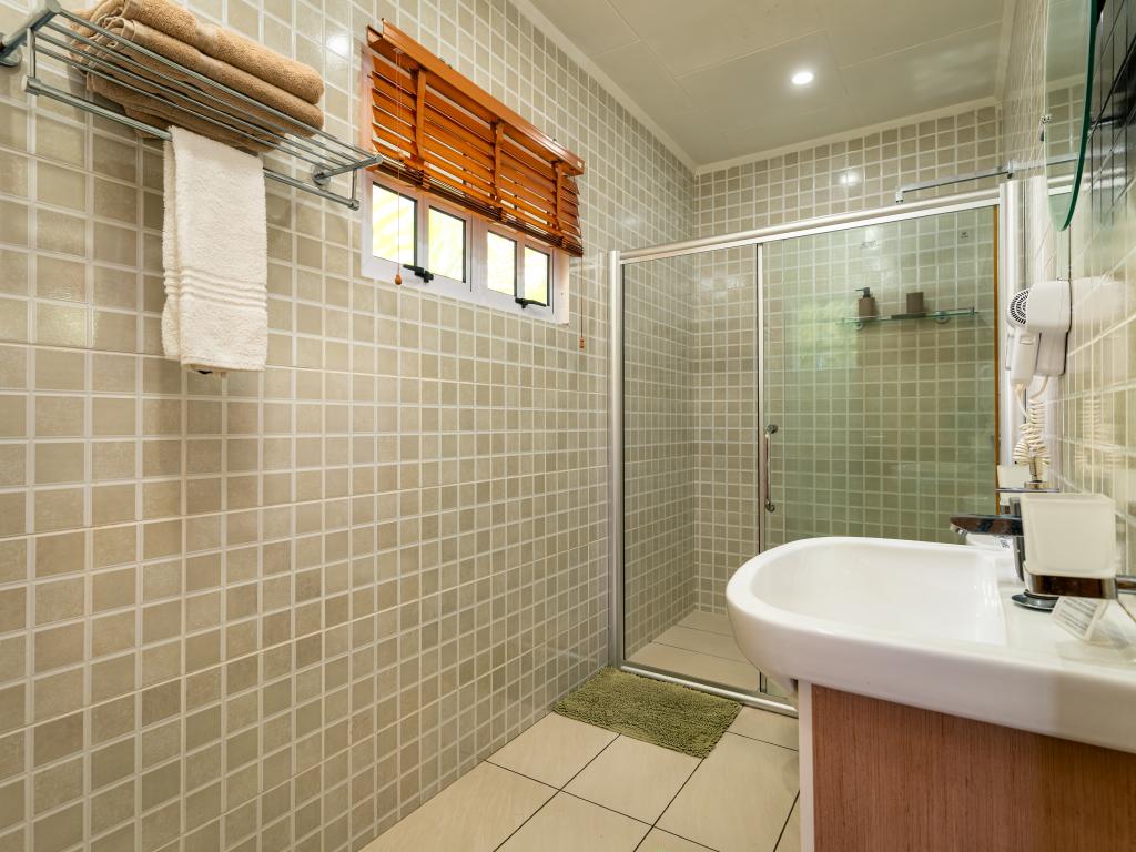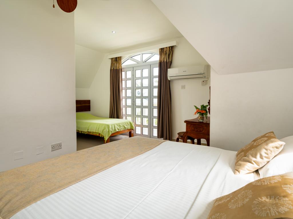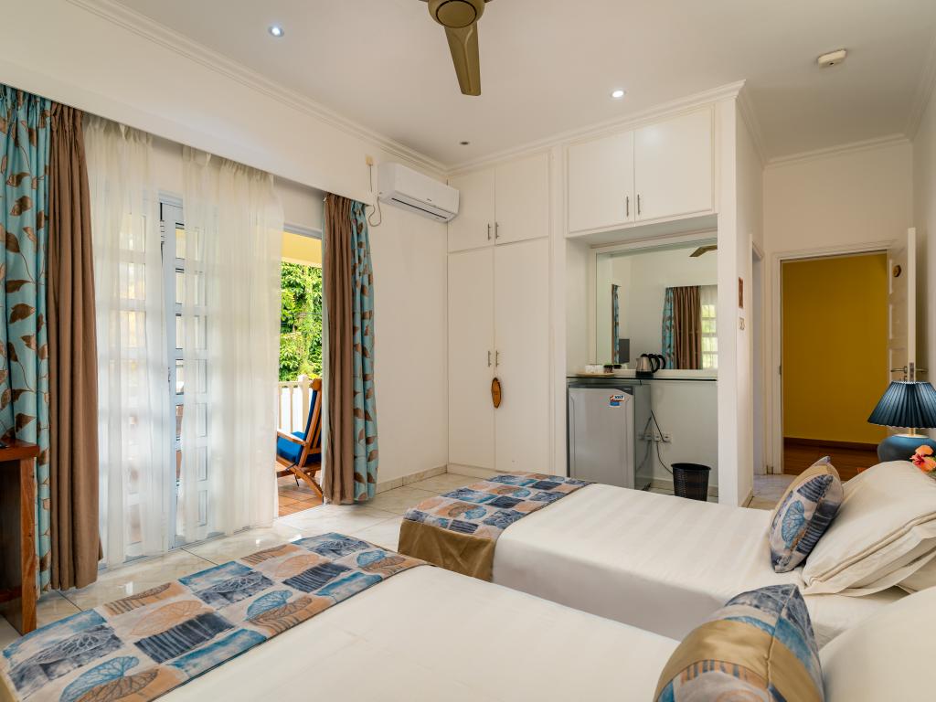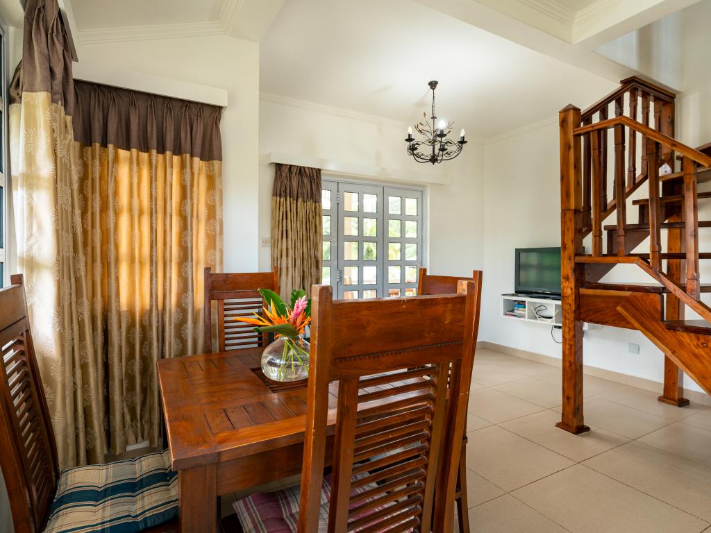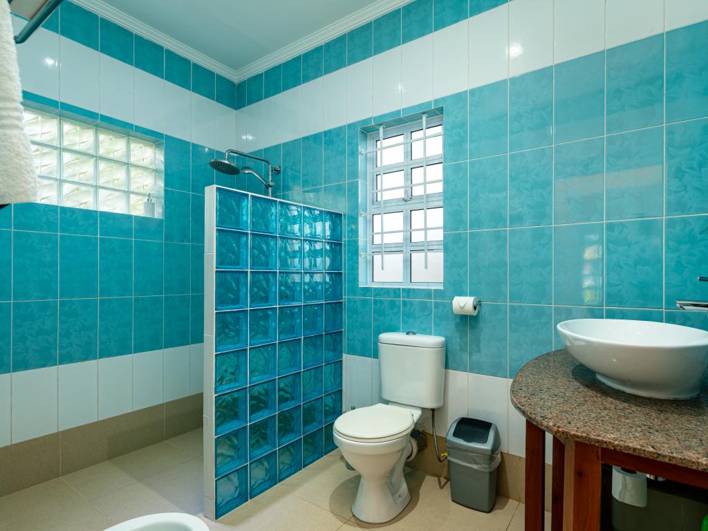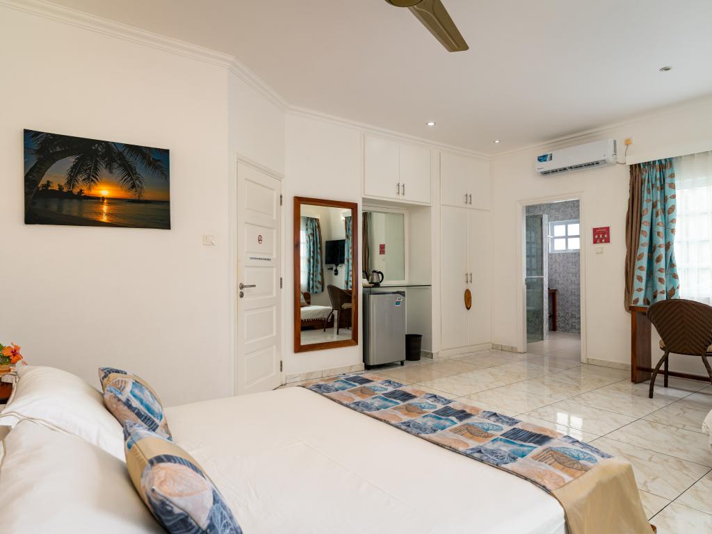 A very nice, stylish guesthouse (the beach is just across the road, a 2-minute walk) with lovely rooms, each with a balcony. We had mountain views and could admire the fruit bats taking flight every evening. Breakfast was typical of the region and served on a beautiful terrace. The entire staff, including the owner and the organizer Amanda, anticipated our every need. Just a few minutes away is a Hilton hotel where we could sign up for the themed buffet dinners (20% discount through the guesthouse). We particularly recommend the Creole evening with music and dance performances. Directly opposite, there's a shop and a highly-rated takeaway. We recommend renting a car to explore the island. However, the bus is also an option, as we frequently encountered it on the narrowest sections of the road. Mahé feels significantly busier than Praslin and La Digue, but here in the southeast, you can truly relax away from the hustle and bustle of Victoria.