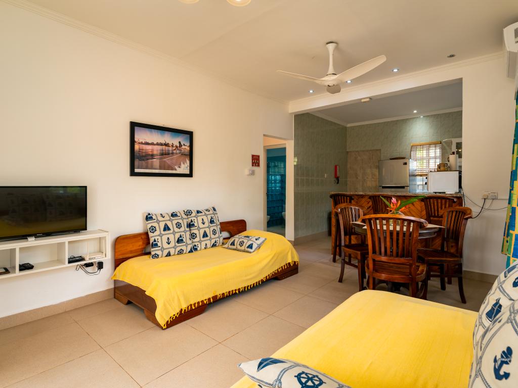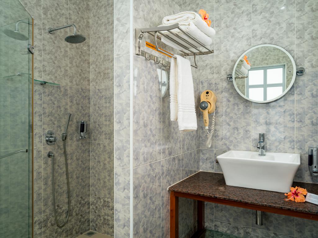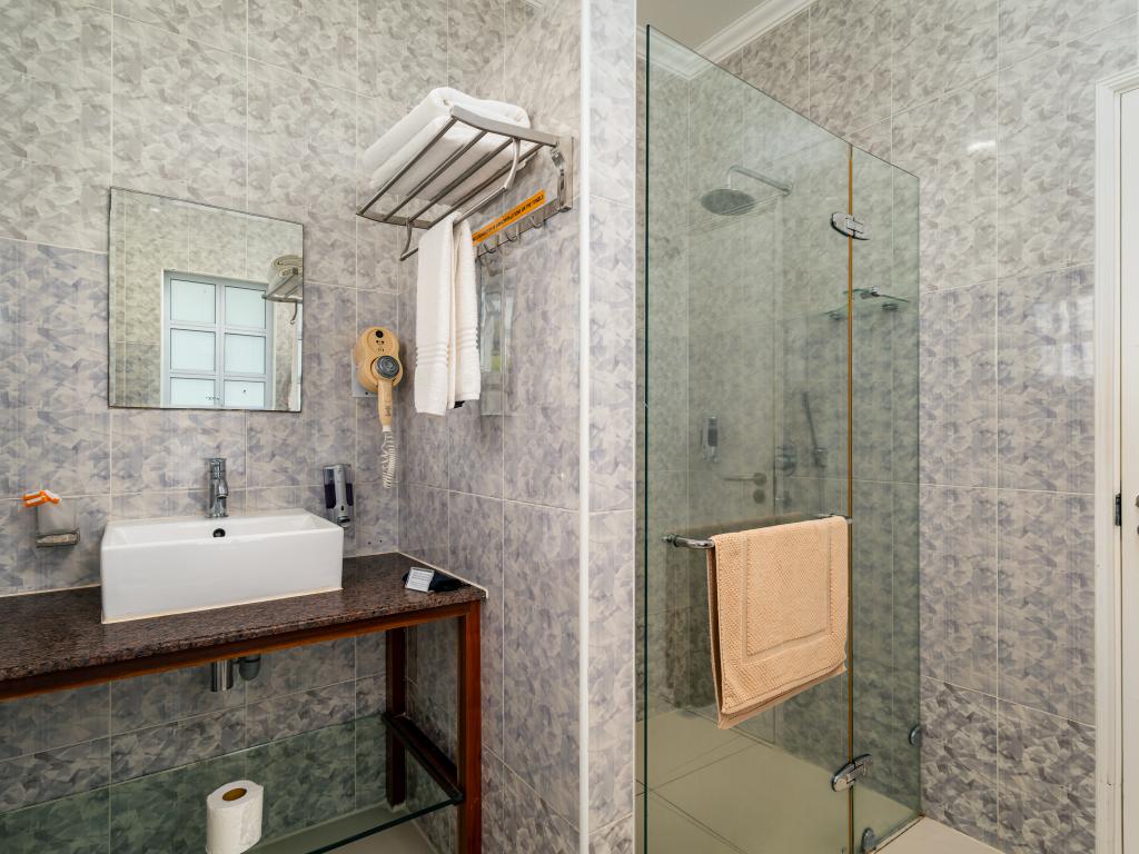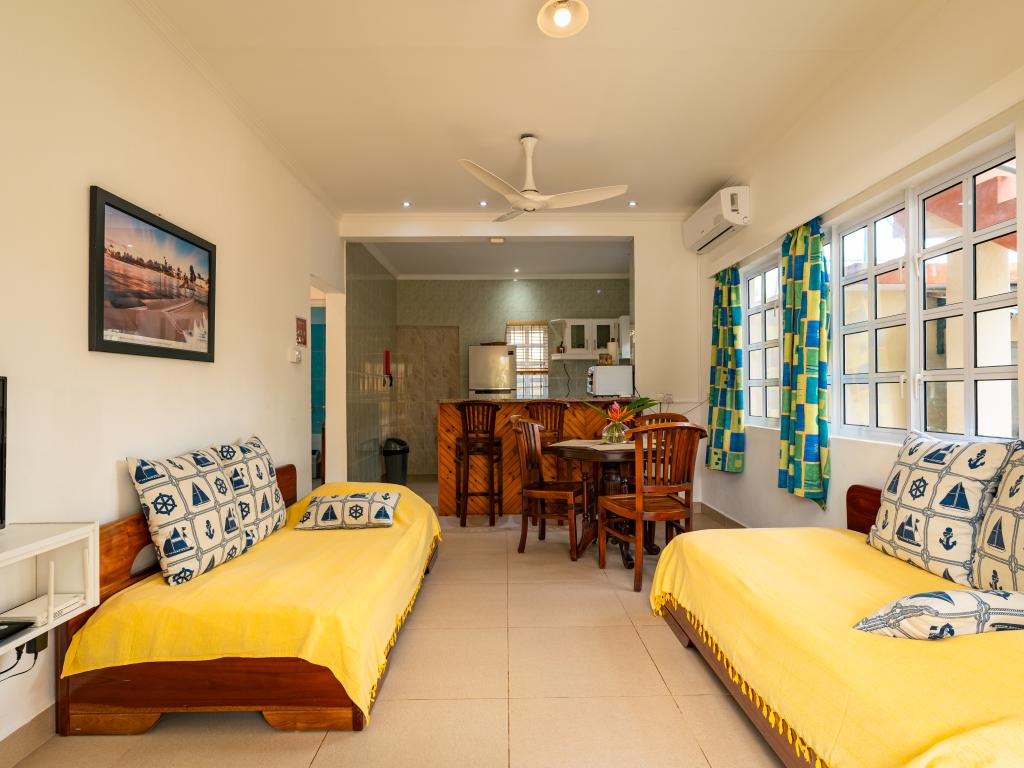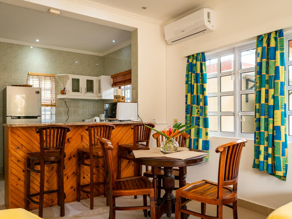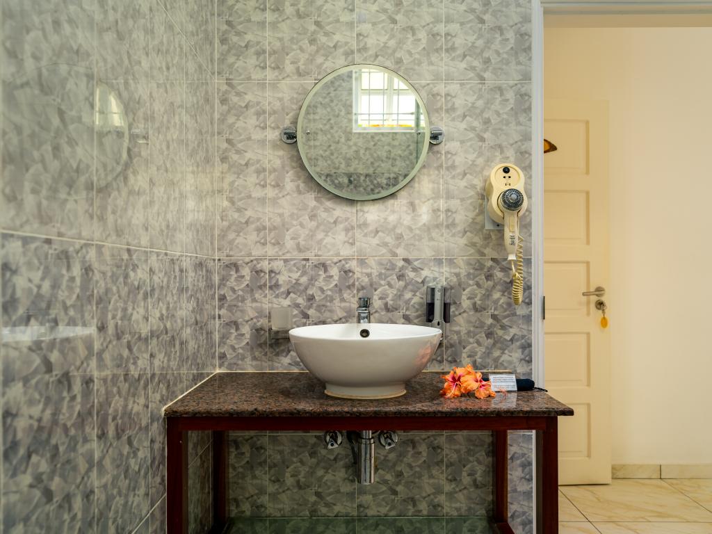 A very nice, stylish guesthouse (the beach is just across the road, a 2-minute walk) with lovely rooms, each with a balcony. We had mountain views and could admire the fruit bats taking flight every evening. Breakfast was typical of the region and served on a beautiful terrace. The entire staff, including the owner and the organizer Amanda, anticipated our every need. Just a few minutes away is a Hilton hotel where we could sign up for the themed buffet dinners (20% discount through the guesthouse). We particularly recommend the Creole evening with music and dance performances. Directly opposite, there's a shop and a highly-rated takeaway. We recommend renting a car to explore the island. However, the bus is also an option, as we frequently encountered it on the narrowest sections of the road. Mahé feels significantly busier than Praslin and La Digue, but here in the southeast, you can truly relax away from the hustle and bustle of Victoria.