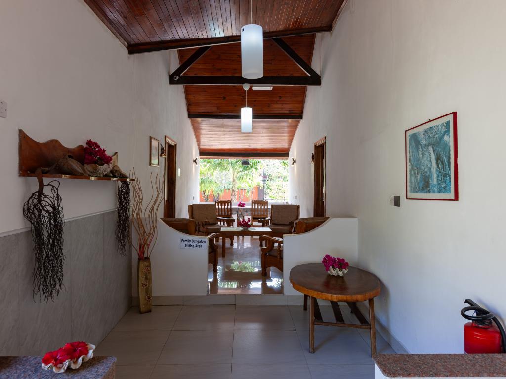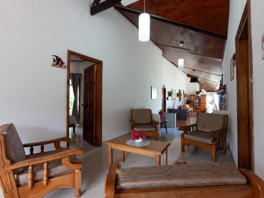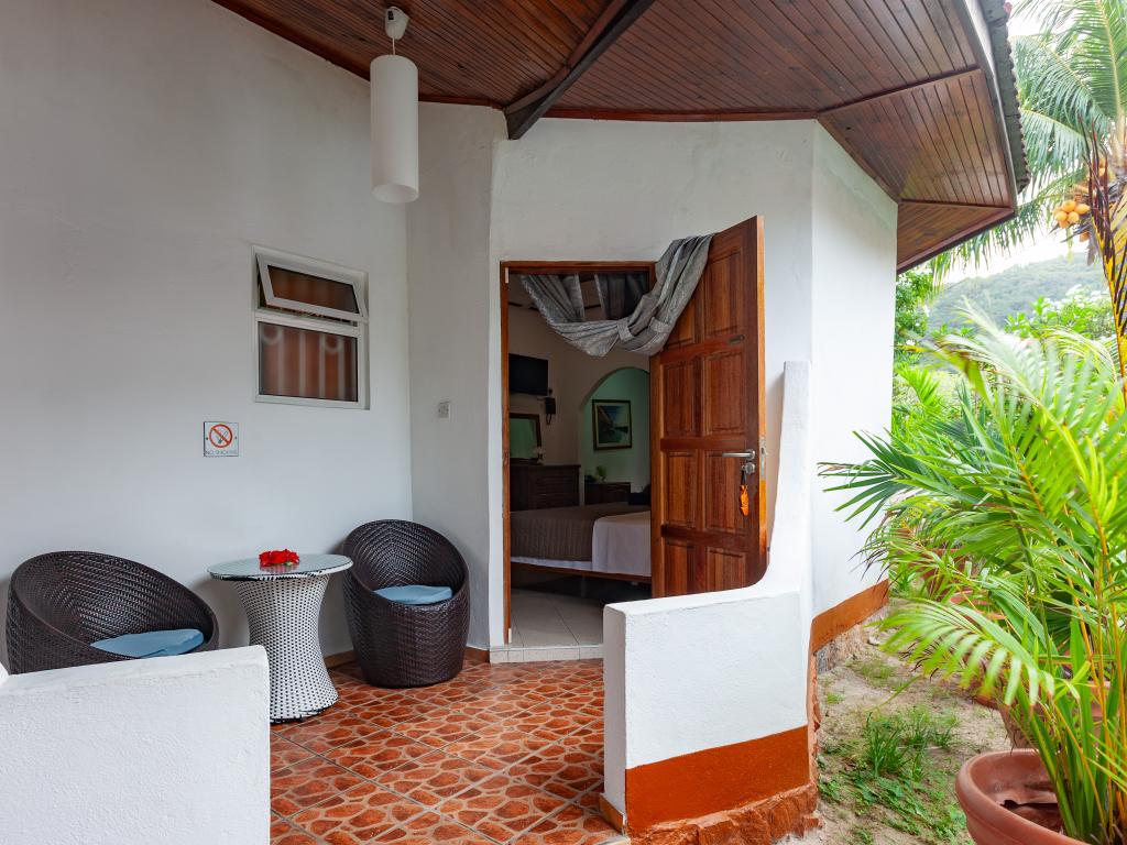 Translation (DE): GoogleTranslateA fantastic bungalow with the option to order and enjoy dinner, which was always incredibly delicious. We grew very fond of everyone who served and looked after us. We booked a snorkeling trip through Jack, which was simply superb. The food on the trip was amazing, and the two guides were just lovely. The guesthouse is located right on the beach. The breakfast and dinner room had a wonderful view of the sea and the sunset over Cousine. There were also seating areas and sun loungers right on the beach. The only downside is that the beach is very dependent on the tides and, apart from occasionally sitting in the warm water, doesn't offer any swimming opportunities. However, the island, with the Valley de Mai and its beautiful beaches, can easily be explored by bus or rental car.