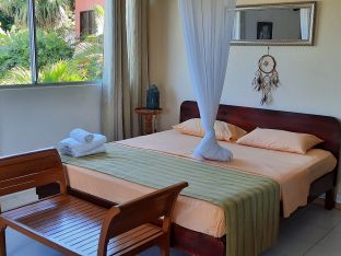 Translation (DE): GoogleTranslatePoor accommodation and too expensive compared to its dilapidation. Musty smell in the rooms. Location is pretty good even if the road is extremely steep to get there (which is not necessarily a problem). Personally, I did not like Beau Vallon especially after having passed through peaceful places like Praslin and La Digue. Too much traffic, too many people and extremely dense neighborhood. The south of the island is much more beautiful, quieter and much more pleasant to live in.