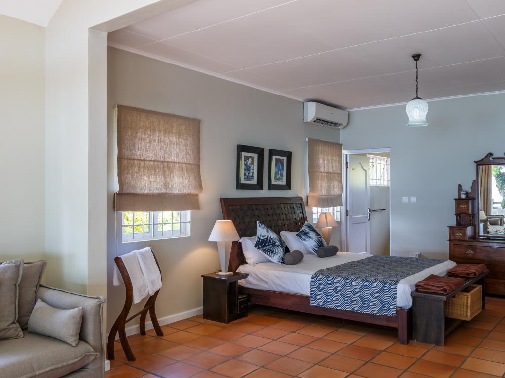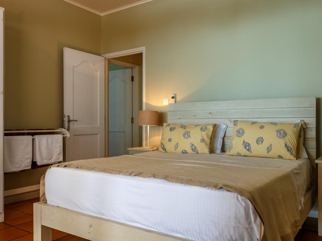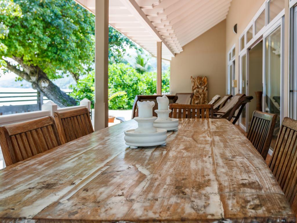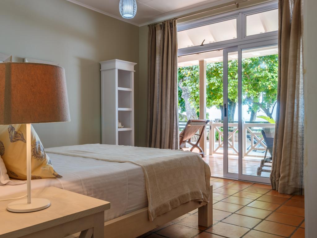After our wonderful accommodation on Praslin, we felt this house was a bit dated. While it was very tastefully decorated, the windows were incredibly dirty; you could hardly see out, which was a shame given the large glass frontage and the peculiar smell. The woman in charge came by every day and asked if we needed anything, whether they should clean or change the towels. The location was a bit strange—right on the sea but without a beach, and to make matters worse, there was a strong wind. So we couldn't go out at all. The next town was a bit of a walk away, and especially in the dark, it wasn't ideal to walk as you had to walk on the street. All in all, we felt more at home on Praslin and at Cote d'Or Footprints.