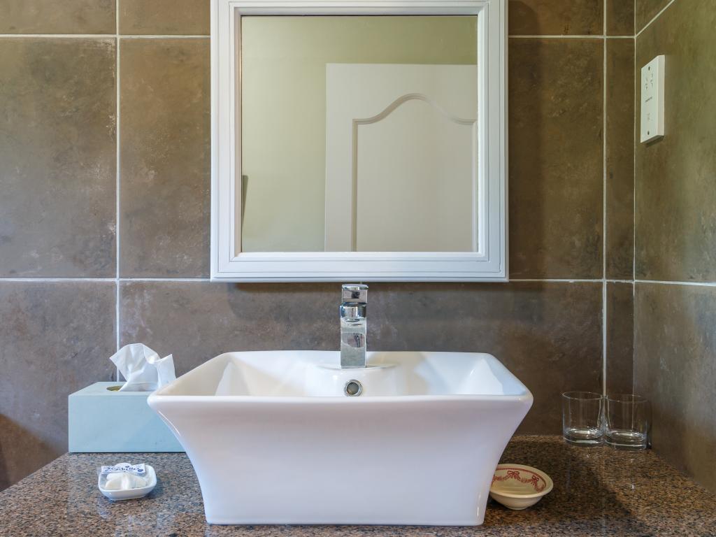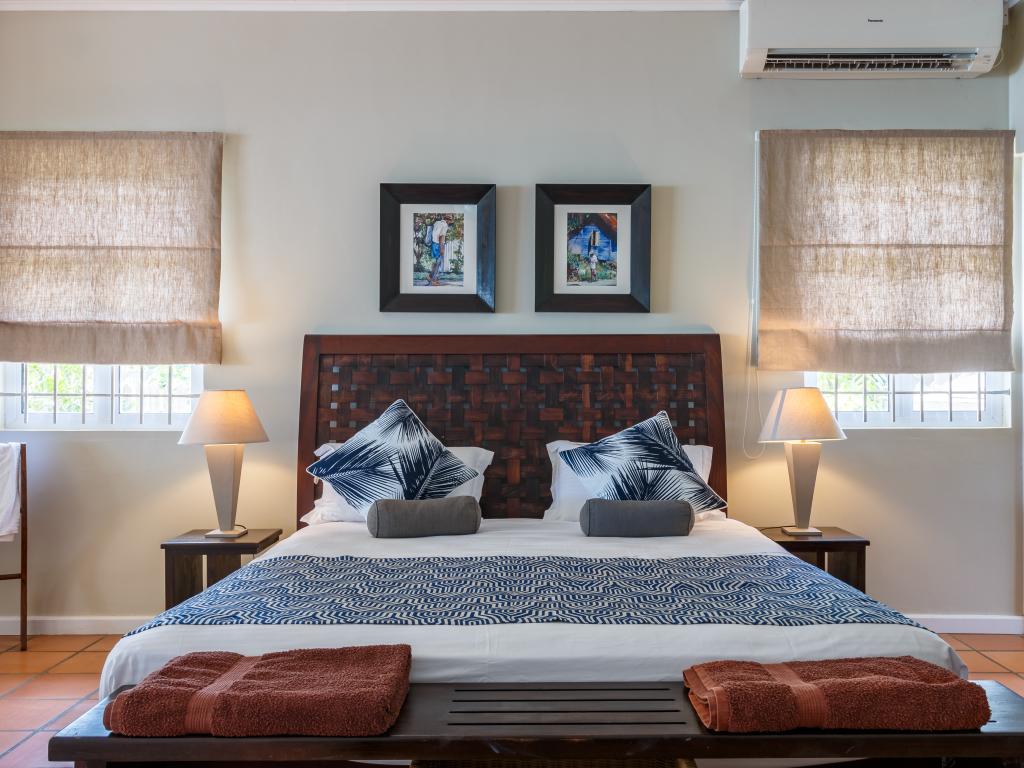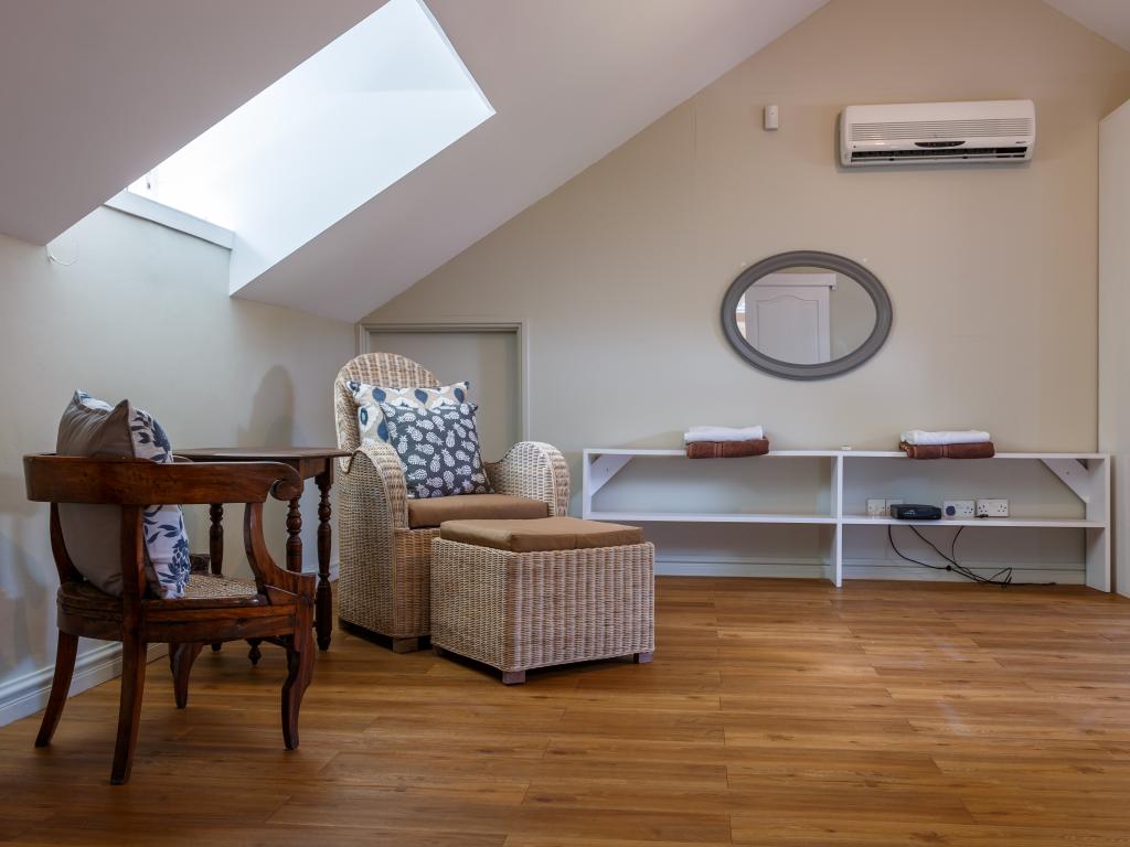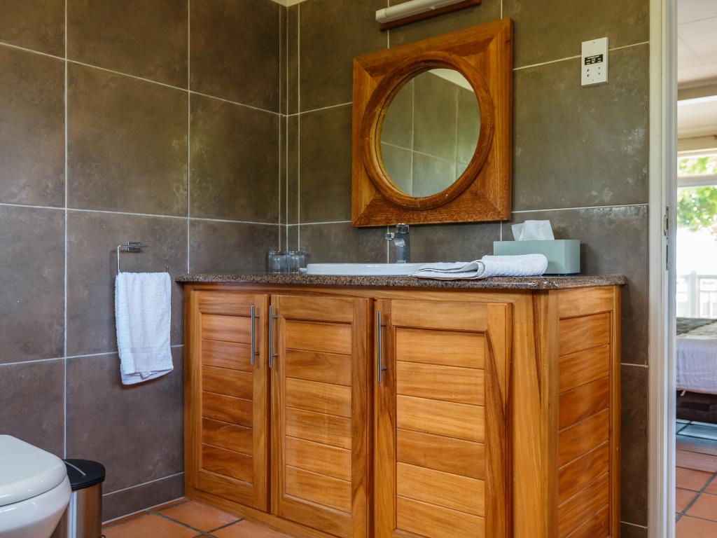 After our wonderful accommodation on Praslin, we felt this house was a bit dated. While it was very tastefully decorated, the windows were incredibly dirty; you could hardly see out, which was a shame given the large glass frontage and the peculiar smell. The woman in charge came by every day and asked if we needed anything, whether they should clean or change the towels. The location was a bit strange—right on the sea but without a beach, and to make matters worse, there was a strong wind. So we couldn't go out at all. The next town was a bit of a walk away, and especially in the dark, it wasn't ideal to walk as you had to walk on the street. All in all, we felt more at home on Praslin and at Cote d'Or Footprints.