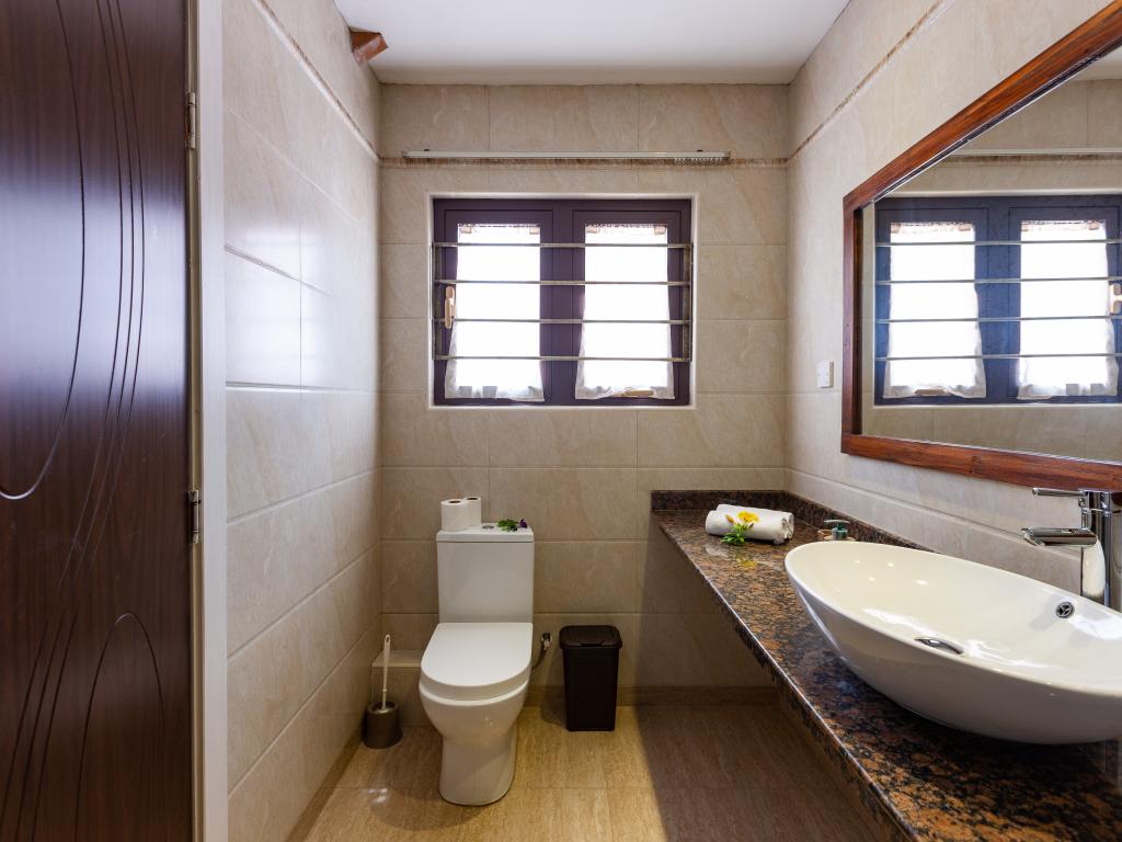Modern living on a paradise island: at Villa Sole on Praslin you can indulge yourself and enjoy your self-catering holiday. Located on the edge of a village, from your terrace you can look out over the surrounding tropical vegetation. If you wish to go to the beach, you can walk approx. 900 m to Anse Madge Beach or drive in the other direction approx. 1.6 km to Cote d’Or Beach, where, in addition to breathtaking nature, various restaurants and shops can be found.