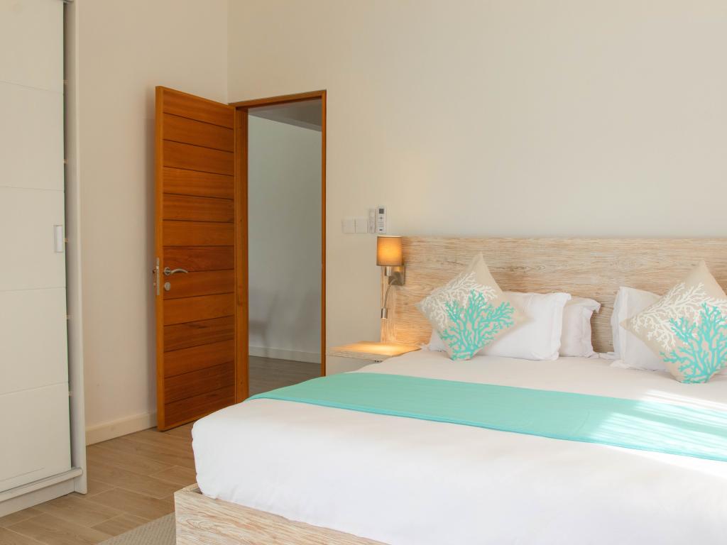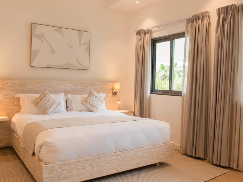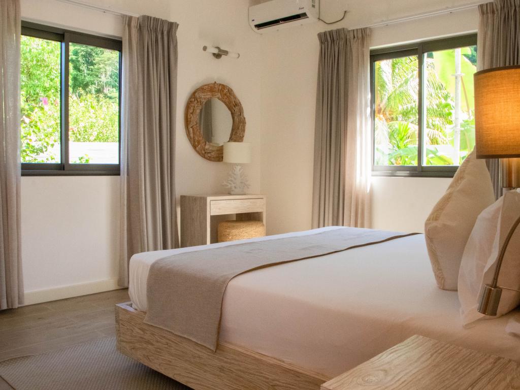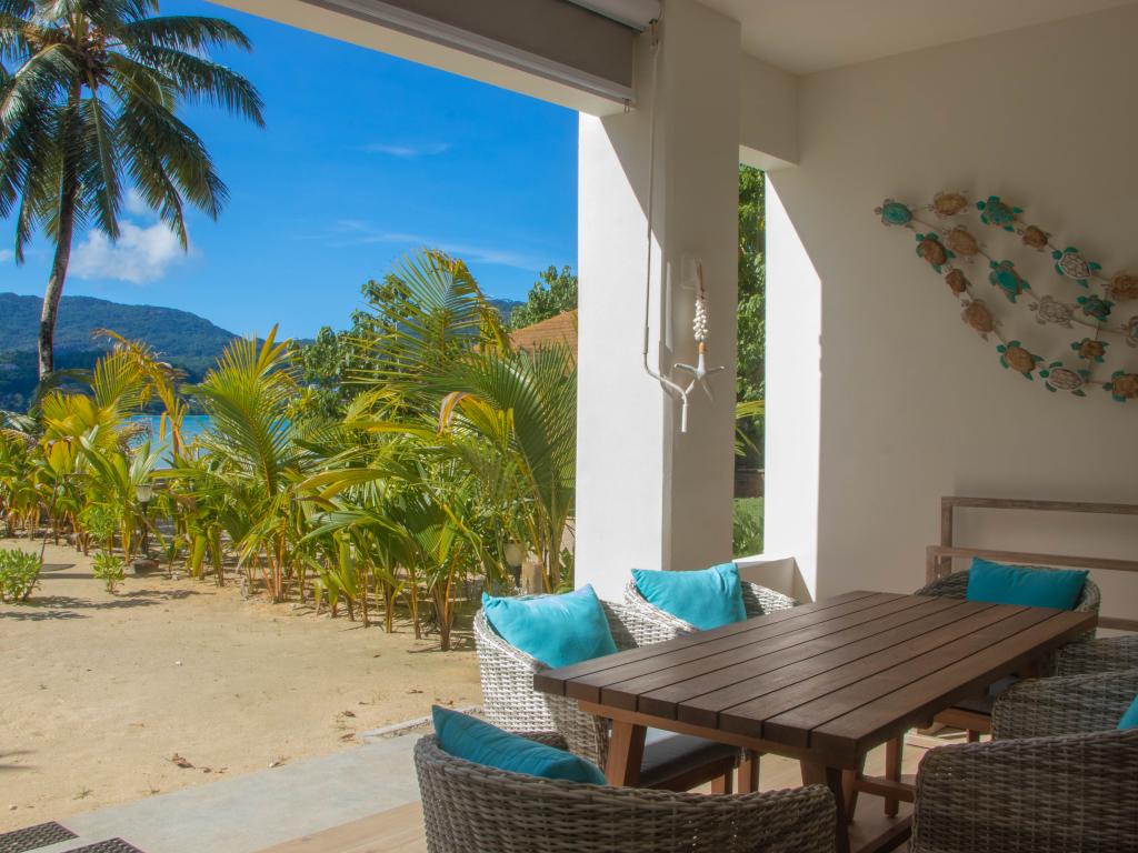 On a picturesque white sandy beach with an offshore coral reef lie the modern Pineapple Beach Villas, surrounded by a tropical garden. This secluded location in a quiet bay on the south-west coast of Mahé underlines the private character and the peace and quiet of this accommodation in Baie Lazare. Just 5 minutes away, you can also find a small grocery store and a bus stop. Various restaurants and takeaways are also located within a short drive of the property.