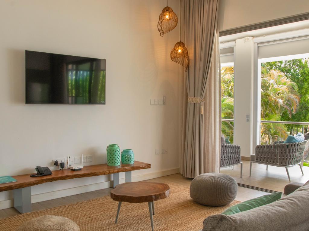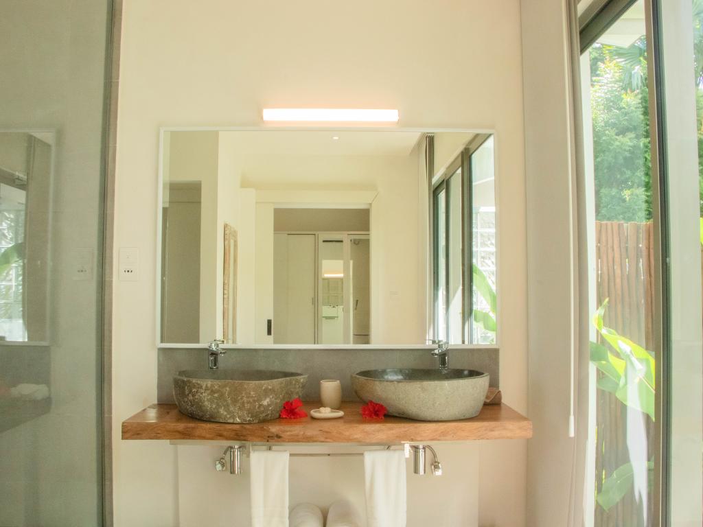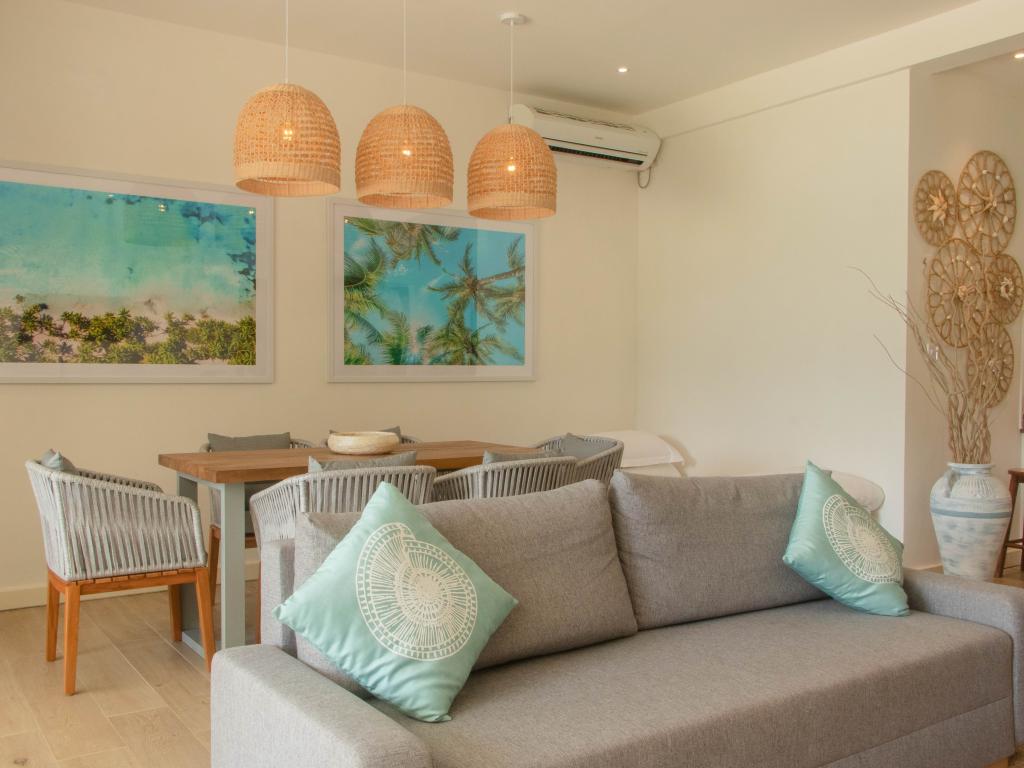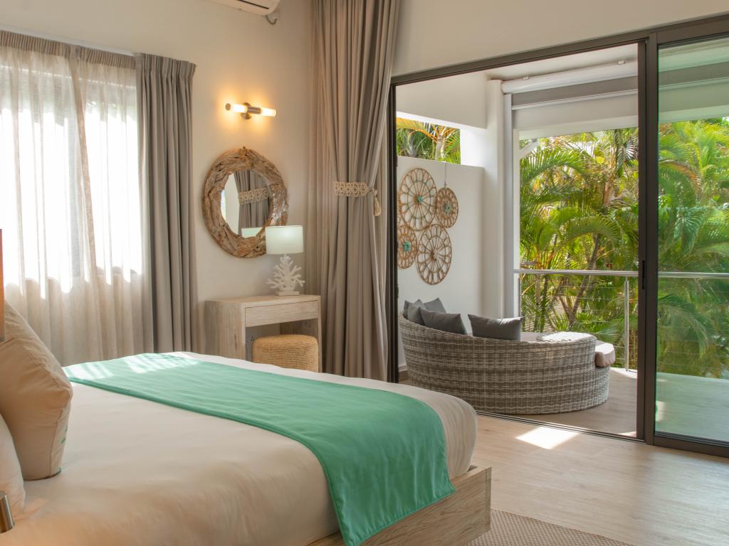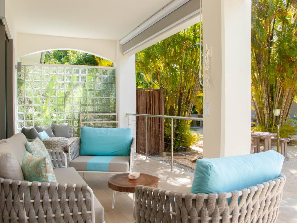 On a picturesque white sandy beach with an offshore coral reef lie the modern Pineapple Beach Villas, surrounded by a tropical garden. This secluded location in a quiet bay on the south-west coast of Mahé underlines the private character and the peace and quiet of this accommodation in Baie Lazare. Just 5 minutes away, you can also find a small grocery store and a bus stop. Various restaurants and takeaways are also located within a short drive of the property.
