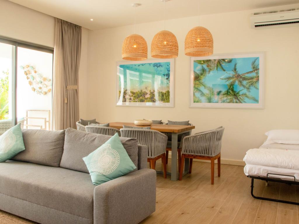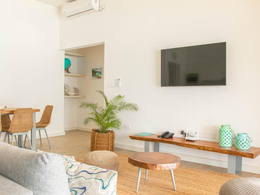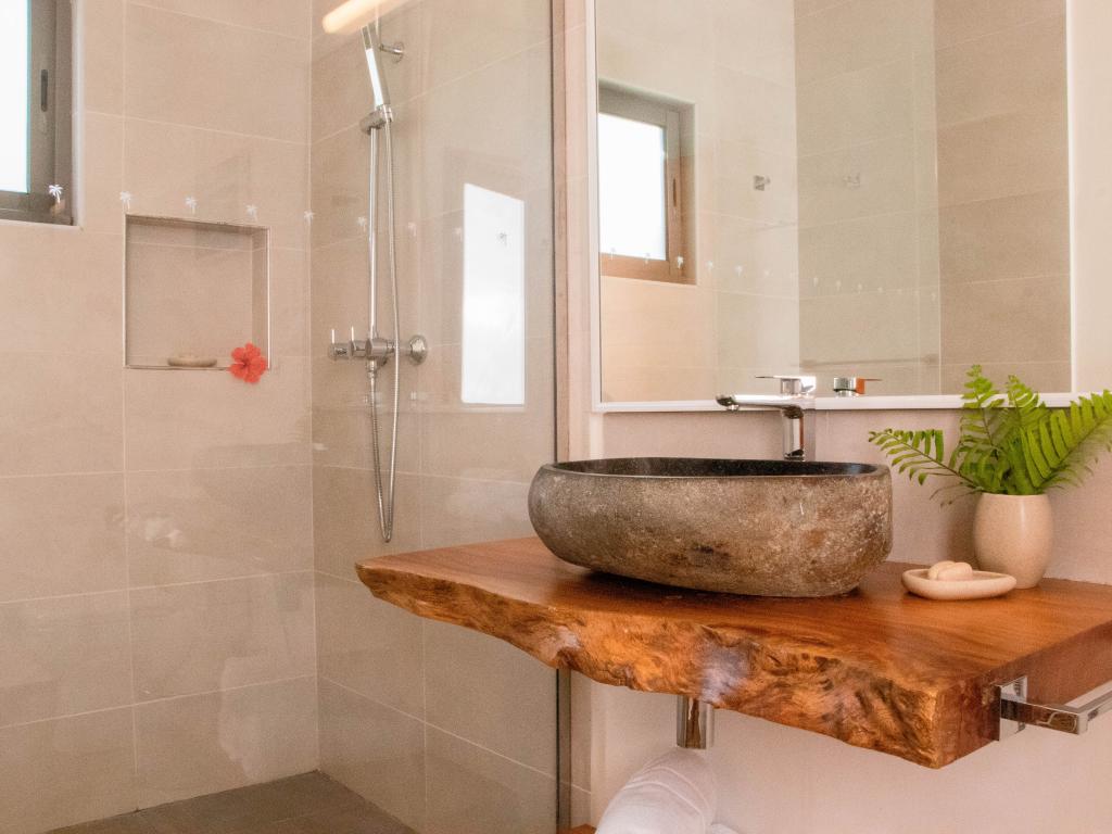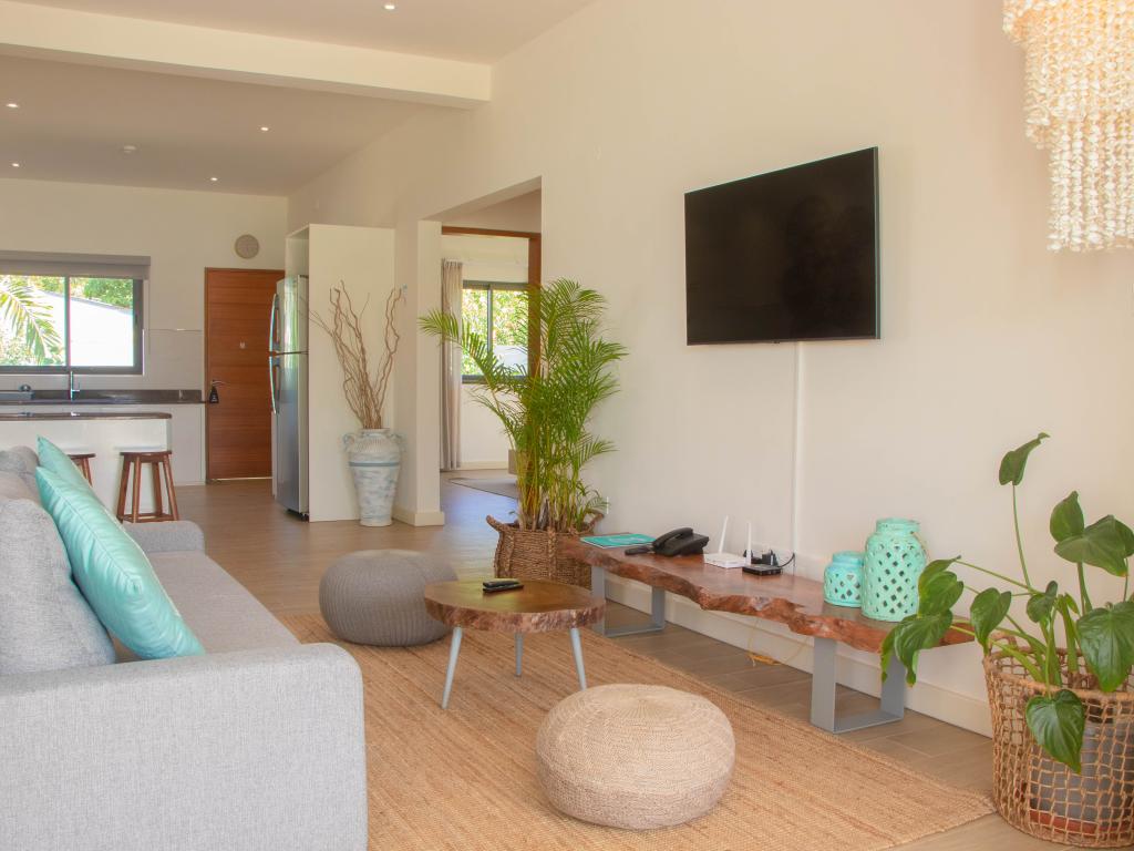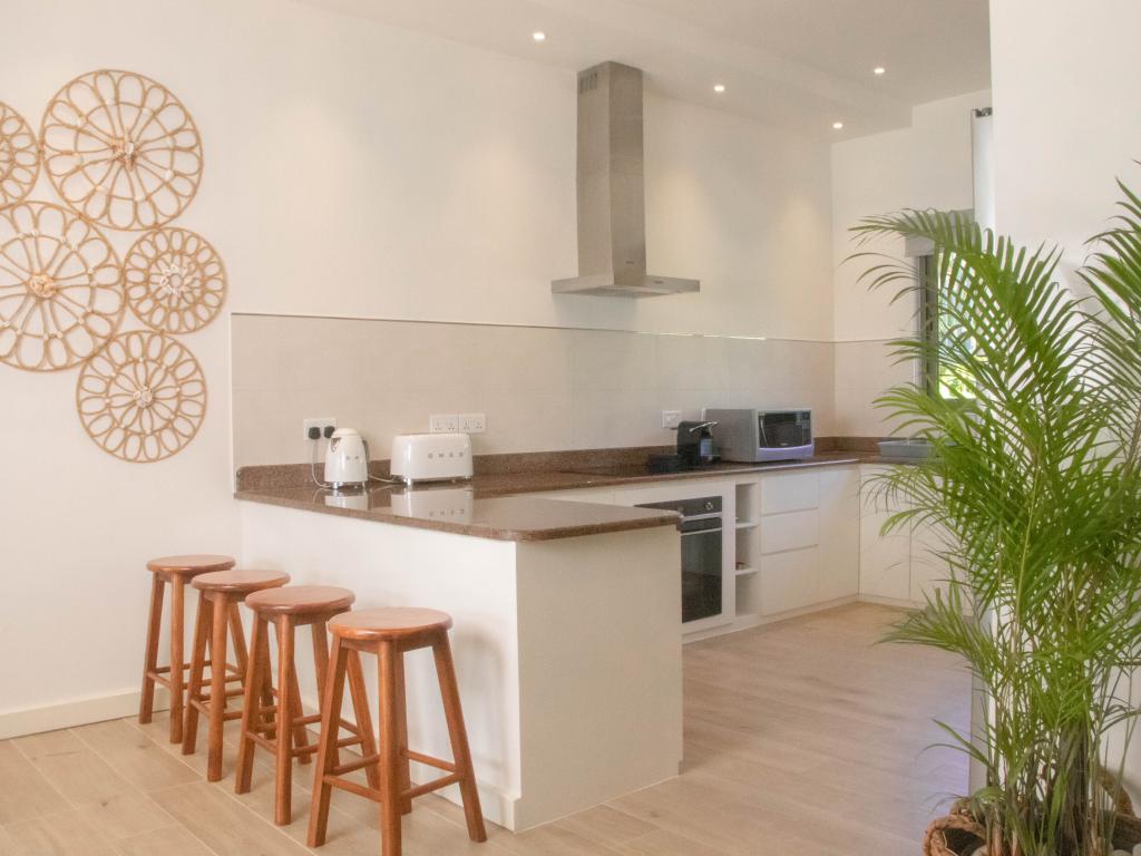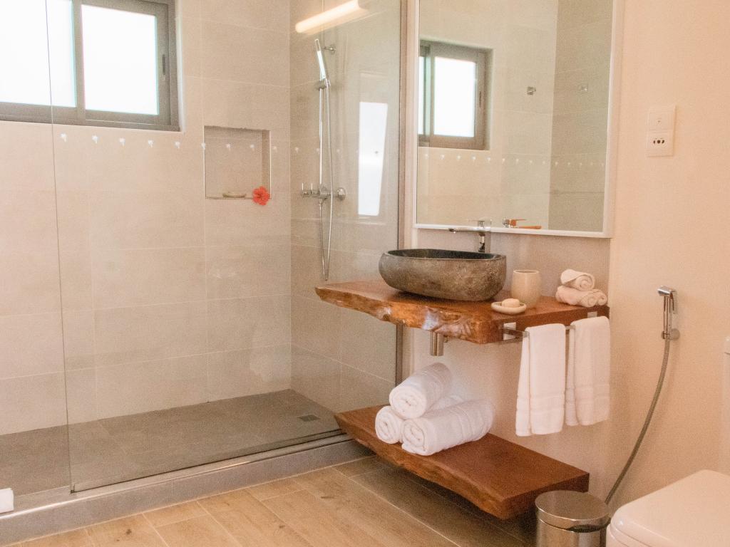 An absolute highlight and the most beautiful of the three accommodations. Very modern and luxuriously furnished, with a beautiful terrace overlooking the pool and sea. The pool is large enough for swimming, and there are plenty of sun loungers. The owners are very friendly and helpful; we felt completely at home. The only drawback is the beach—not suitable for swimming. This didn't bother us, as we had a rental car and there are beautiful beaches just a few minutes away. A rental car is highly recommended given the location of the accommodation. Nearby is the Pineapple Cabana restaurant, recently opened by the owners. We had good meals there several times; the ambiance is also very nice. They also offer breakfast, but we didn't try it.