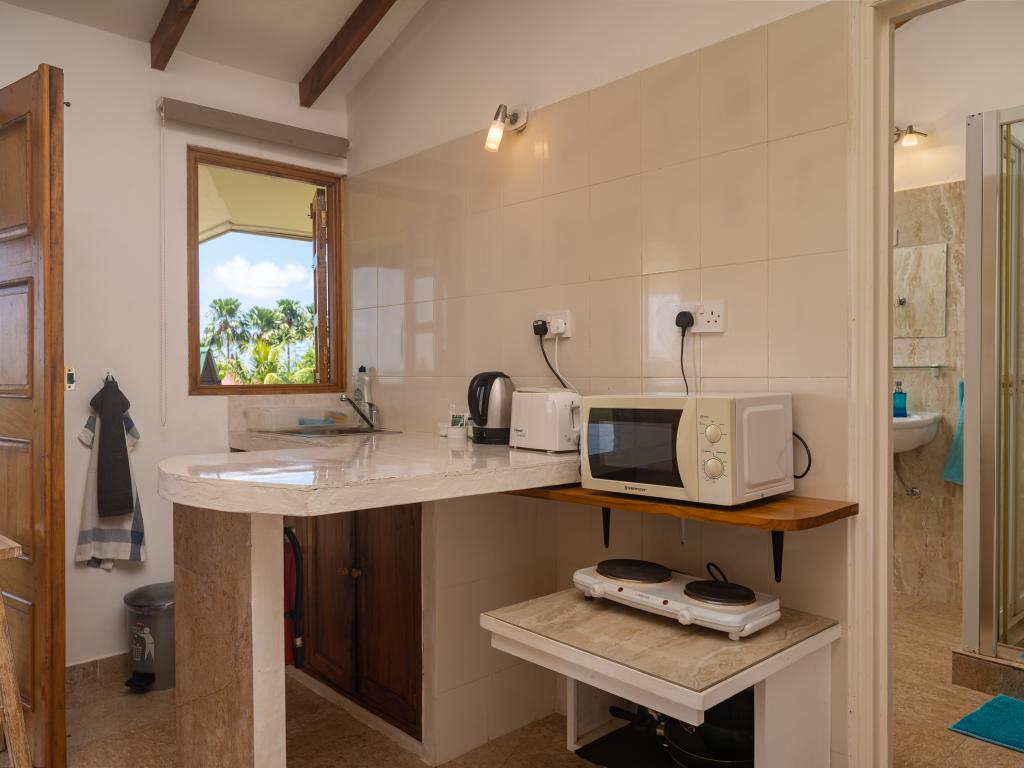 Translation (DE): GoogleTranslateAt Maison Marikel, we were personally welcomed by Marie with a fruit basket and a lovingly furnished apartment. The apartment is clean and well-kept, the small kitchenette has everything you need to cater for yourself. The balcony with a view of the sea and Marie's beautiful garden is the highlight. You can sit there for hours and watch birds and fruit bats. Marie was an excellent host who took care of all our needs and supported us in every situation. We felt very comfortable with her.