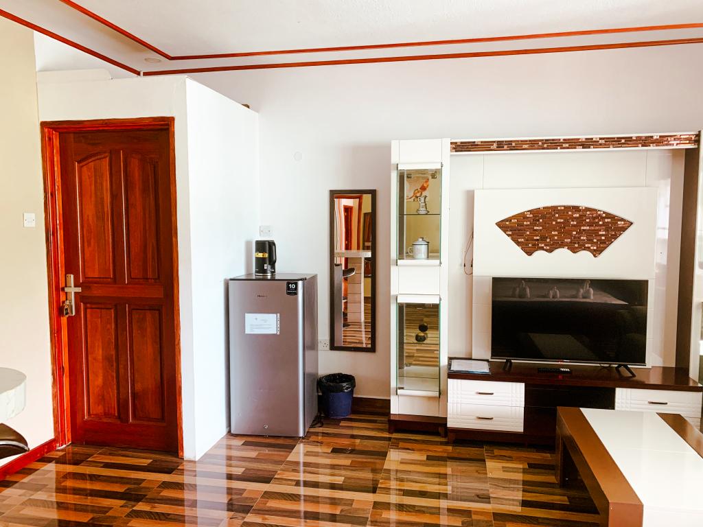 Translation (DE): GoogleTranslateYou need to know what you're getting into here. The staff were always very helpful and the rooms are clean. - The breakfast buffet is limited and doesn't always offer the same selection (but there's always fresh fruit). - Dinner is very varied and delicious (local cuisine with lots of fish). - Drinks (sparkling mineral water, soft drinks) aren't always available. The Seychelles isn't a developing country, and drinks are available everywhere else on the island, just not at the hotel. And this went on for several days. - Bicycles can only be paid for in cash. There's no ATM near the hotel.