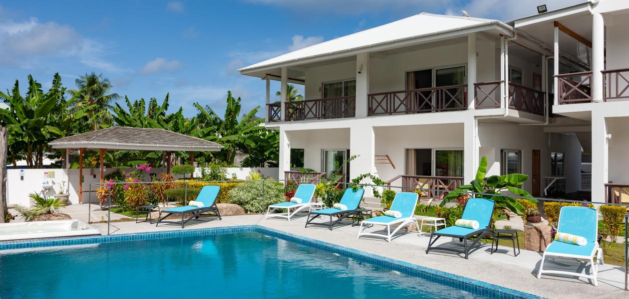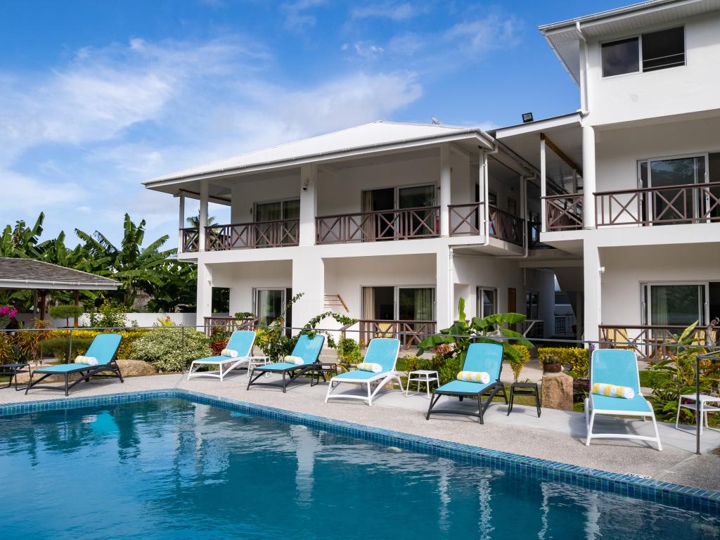 Mazu is a high-quality accommodation offering modern apartments and the ideal conditions for a self-catering holiday. The lush garden has a large pool,while the bar and sun-loungers are ideal for relaxing and enjoying a cocktail or two. Finally, the Veuve nature reserve and Anse Source d’Argent beach are close by as well.