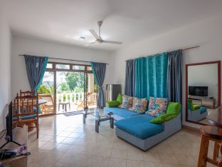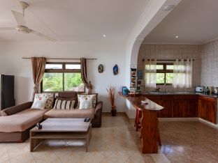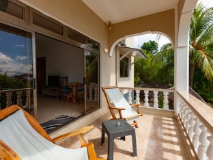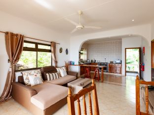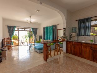 Translation (DE): GoogleTranslateVery nice, spacious and clean apartment. Fantastic view of the sea from the TilZil apartment. Sunrise can be seen directly from the bed. Good and quiet air conditioning. Free water dispenser. Well-equipped kitchen, huge shower. Large balcony. Washing machine can be used at any time. Very helpful hostess, who even drove all the way across the island to get us a bus ticket. The bus stop is almost on the doorstep and a few steps further is a small supermarket that has everything you need. Small beach directly opposite. The next larger beach is a 10-minute walk away and has good snorkeling conditions. Bus travel is possible but very time-consuming. A car is really advisable. The nearest, but very good, takeaway is about 6 km away by car (Anse Volbert).